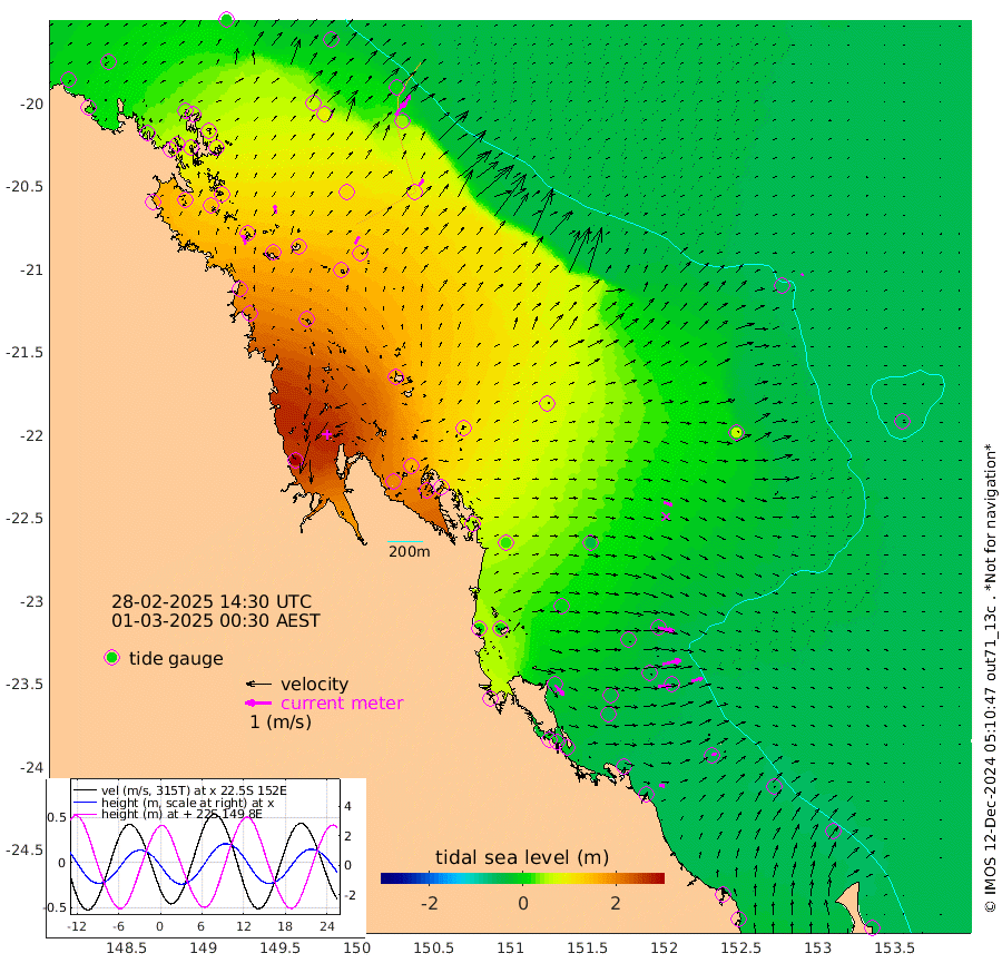 36cm/s -15T +10cm/s rms + 2cm/s 5T. Brampton I 18m 32cm/s -3T +9cm/s rms + 6cm/s 66T. Wigton I 38m 32cm/s 30T +7cm/s rms + 8cm/s 141T. Tern I 47m 53cm/s 24T +7cm/s rms + 12cm/s 54T. N Bugatti Rf 64m 61cm/s 37T +3cm/s rms + 13cm/s 178T. W Bugatti Rf 70m 30cm/s 35T +3cm/s rms + 3cm/s -130T. Creal Rf 69m 62cm/s 103T +7cm/s rms + 4cm/s 2T. North Rf 62m 51cm/s 139T +9cm/s rms + 2cm/s -56T. Cape Capricorn 26m 20cm/s 73T +5cm/s rms + 3cm/s 166T. L Musgrave I 42m 22cm/s 103T +9cm/s rms + 1cm/s -142T. Round Hill Hd 26m 7cm/s 59T +41cm/s rms + 48cm/s 116T. GBRELR 305m 34cm/s 107T +7cm/s rms + 6cm/s 123T. GBRCCH 92m 74cm/s 78T +8cm/s rms + 3cm/s -33T. GBRHIN 45m 49cm/s 90T +4cm/s rms + 2cm/s 41T. GBRHIS 46m 46cm/s 75T +16cm/s rms + 4cm/s -22T. GBROTE 59m 68cm Bell Cay 13cm Holbourne I 145cm Tern I 38cm Bugatti Rf 87cm Creal Rf 4cm White Tip I -33cm North Rf -30cm Rundle I -50cm L Musgrave I -49cm Saumarez Reef -3cm Kennedy Reef -24cm Unnamed Reef No. 2 9cm Abbot Point 24cm Bowen 59cm Tideway Reef 44cm Hayman Island 91cm Square Reef 42cm Double Bay 65cm Molle Island 84cm Cid Harbour 51cm Hook Island 75cm Border Island 86cm Haslewood Island 80cm Shute Harbour 127cm Thomas Island 119cm Credlin Reef 142cm East Repulse Island 149cm Blacksmith Island 164cm Laguna Quays 140cm Carlisle Island (Off) 179cm St. Bees Island 157cm Scawfell Island 157cm Penrith Island 192cm Mackay Outer Harbour 205cm Hay Point 192cm Prudhoe Island 164cm Middle Island (Percy Isles) 61cm Gannet Cay -49cm Elusive Reef 342cm Mcewin Islet 152cm Mumford Island 196cm Osborn Island 211cm Marquis Island 175cm Reef Point 106cm High Peak Island 55cm Port Clinton 28cm Peaked Island -45cm Karamea Bank -1cm Johnson Patch - NW 10cm Rosslyn Bay 1cm Middle Island (Keppel Isles) 32cm Port Alma -40cm Heron Island -55cm One Tree Islet -39cm Polmaise Reef -22cm Tryon Island -47cm Rock Cod Shoal -16cm Gatcombe Head 2cm Gladstone -15cm South Trees (Storm Surge) -55cm Clews Point -48cm Round Hill Head -55cm Lady Elliot Island -54cm Breaksea Spit -48cm Bundaberg (Burnett Heads) -46cm Elliot Heads -45cm Waddy Point (Fraser Island)