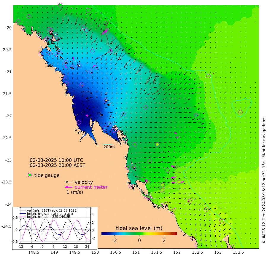 43cm/s 162T +10cm/s rms + 2cm/s 5T. Brampton I 18m 42cm/s 174T +9cm/s rms + 6cm/s 66T. Wigton I 38m 32cm/s -154T +7cm/s rms + 8cm/s 141T. Tern I 47m 62cm/s -157T +7cm/s rms + 12cm/s 54T. N Bugatti Rf 64m 66cm/s -145T +3cm/s rms + 13cm/s 178T. W Bugatti Rf 70m 30cm/s -154T +3cm/s rms + 3cm/s -130T. Creal Rf 69m 63cm/s -75T +7cm/s rms + 4cm/s 2T. North Rf 62m 54cm/s -38T +9cm/s rms + 2cm/s -56T. Cape Capricorn 26m 18cm/s -102T +5cm/s rms + 3cm/s 166T. L Musgrave I 42m 22cm/s -78T +9cm/s rms + 1cm/s -142T. Round Hill Hd 26m 8cm/s -140T +41cm/s rms + 48cm/s 116T. GBRELR 305m 35cm/s -72T +7cm/s rms + 6cm/s 123T. GBRCCH 92m 77cm/s -101T +8cm/s rms + 3cm/s -33T. GBRHIN 45m 48cm/s -92T +4cm/s rms + 2cm/s 41T. GBRHIS 46m 46cm/s -114T +16cm/s rms + 4cm/s -22T. GBROTE 59m -65cm Bell Cay -33cm Holbourne I -142cm Tern I -49cm Bugatti Rf -89cm Creal Rf -18cm White Tip I 27cm North Rf 31cm Rundle I 41cm L Musgrave I 45cm Saumarez Reef -9cm Kennedy Reef 5cm Unnamed Reef No. 2 -26cm Abbot Point -41cm Bowen -70cm Tideway Reef -57cm Hayman Island -96cm Square Reef -59cm Double Bay -99cm Molle Island -92cm Cid Harbour -67cm Hook Island -85cm Border Island -98cm Haslewood Island -91cm Shute Harbour -130cm Thomas Island -119cm Credlin Reef -149cm East Repulse Island -148cm Blacksmith Island -169cm Laguna Quays -146cm Carlisle Island (Off) -163cm St. Bees Island -150cm Scawfell Island -153cm Penrith Island -189cm Mackay Outer Harbour -199cm Hay Point -180cm Prudhoe Island -152cm Middle Island (Percy Isles) -58cm Gannet Cay 30cm Elusive Reef -330cm Mcewin Islet -130cm Mumford Island -177cm Osborn Island -188cm Marquis Island -158cm Reef Point -95cm High Peak Island -46cm Port Clinton -9cm Peaked Island 42cm Karamea Bank 6cm Johnson Patch - NW -1cm Rosslyn Bay 8cm Middle Island (Keppel Isles) -19cm Port Alma 35cm Heron Island 50cm One Tree Islet 41cm Polmaise Reef 21cm Tryon Island 42cm Rock Cod Shoal 18cm Gatcombe Head 6cm Gladstone 20cm South Trees (Storm Surge) 55cm Clews Point 44cm Round Hill Head 46cm Lady Elliot Island 44cm Breaksea Spit 45cm Bundaberg (Burnett Heads) 46cm Elliot Heads 35cm Waddy Point (Fraser Island)