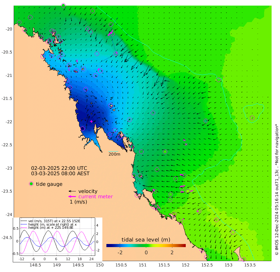 35cm/s 162T +10cm/s rms + 2cm/s 5T. Brampton I 18m 33cm/s 176T +9cm/s rms + 6cm/s 66T. Wigton I 38m 31cm/s -154T +7cm/s rms + 8cm/s 141T. Tern I 47m 55cm/s -154T +7cm/s rms + 12cm/s 54T. N Bugatti Rf 64m 57cm/s -147T +3cm/s rms + 13cm/s 178T. W Bugatti Rf 70m 28cm/s -149T +3cm/s rms + 3cm/s -130T. Creal Rf 69m 58cm/s -76T +7cm/s rms + 4cm/s 2T. North Rf 62m 46cm/s -42T +9cm/s rms + 2cm/s -56T. Cape Capricorn 26m 24cm/s -92T +5cm/s rms + 3cm/s 166T. L Musgrave I 42m 21cm/s -72T +9cm/s rms + 1cm/s -142T. Round Hill Hd 26m 6cm/s -129T +41cm/s rms + 48cm/s 116T. GBRELR 305m 29cm/s -73T +7cm/s rms + 6cm/s 123T. GBRCCH 92m 69cm/s -101T +8cm/s rms + 3cm/s -33T. GBRHIN 45m 45cm/s -93T +4cm/s rms + 2cm/s 41T. GBRHIS 46m 40cm/s -111T +16cm/s rms + 4cm/s -22T. GBROTE 59m -71cm Bell Cay -28cm Holbourne I -143cm Tern I -48cm Bugatti Rf -90cm Creal Rf -17cm White Tip I 18cm North Rf 16cm Rundle I 35cm L Musgrave I 35cm Saumarez Reef -9cm Kennedy Reef 4cm Unnamed Reef No. 2 -25cm Abbot Point -39cm Bowen -69cm Tideway Reef -54cm Hayman Island -93cm Square Reef -56cm Double Bay -79cm Molle Island -90cm Cid Harbour -62cm Hook Island -88cm Border Island -96cm Haslewood Island -89cm Shute Harbour -127cm Thomas Island -126cm Credlin Reef -150cm East Repulse Island -145cm Blacksmith Island -163cm Laguna Quays -150cm Carlisle Island (Off) -168cm St. Bees Island -150cm Scawfell Island -152cm Penrith Island -187cm Mackay Outer Harbour -198cm Hay Point -180cm Prudhoe Island -154cm Middle Island (Percy Isles) -66cm Gannet Cay 28cm Elusive Reef -332cm Mcewin Islet -139cm Mumford Island -191cm Osborn Island -205cm Marquis Island -172cm Reef Point -107cm High Peak Island -60cm Port Clinton -29cm Peaked Island 28cm Karamea Bank -3cm Johnson Patch - NW -20cm Rosslyn Bay -13cm Middle Island (Keppel Isles) -42cm Port Alma 26cm Heron Island 40cm One Tree Islet 27cm Polmaise Reef 12cm Tryon Island 25cm Rock Cod Shoal 5cm Gatcombe Head -14cm Gladstone 2cm South Trees (Storm Surge) 42cm Clews Point 32cm Round Hill Head 40cm Lady Elliot Island 42cm Breaksea Spit 33cm Bundaberg (Burnett Heads) 34cm Elliot Heads 33cm Waddy Point (Fraser Island)