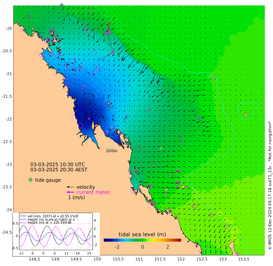 36cm/s 160T +10cm/s rms + 2cm/s 5T. Brampton I 18m 34cm/s 175T +9cm/s rms + 6cm/s 66T. Wigton I 38m 28cm/s -154T +7cm/s rms + 8cm/s 141T. Tern I 47m 51cm/s -156T +7cm/s rms + 12cm/s 54T. N Bugatti Rf 64m 53cm/s -144T +3cm/s rms + 13cm/s 178T. W Bugatti Rf 70m 25cm/s -153T +3cm/s rms + 3cm/s -130T. Creal Rf 69m 57cm/s -75T +7cm/s rms + 4cm/s 2T. North Rf 62m 47cm/s -39T +9cm/s rms + 2cm/s -56T. Cape Capricorn 26m 18cm/s -103T +5cm/s rms + 3cm/s 166T. L Musgrave I 42m 21cm/s -78T +9cm/s rms + 1cm/s -142T. Round Hill Hd 26m 7cm/s -136T +41cm/s rms + 48cm/s 116T. GBRELR 305m 30cm/s -70T +7cm/s rms + 6cm/s 123T. GBRCCH 92m 70cm/s -100T +8cm/s rms + 3cm/s -33T. GBRHIN 45m 44cm/s -92T +4cm/s rms + 2cm/s 41T. GBRHIS 46m 41cm/s -110T +16cm/s rms + 4cm/s -22T. GBROTE 59m -70cm Bell Cay -42cm Holbourne I -140cm Tern I -53cm Bugatti Rf -90cm Creal Rf -26cm White Tip I 16cm North Rf 15cm Rundle I 32cm L Musgrave I 39cm Saumarez Reef -21cm Kennedy Reef -7cm Unnamed Reef No. 2 -37cm Abbot Point -50cm Bowen -73cm Tideway Reef -64cm Hayman Island -95cm Square Reef -70cm Double Bay -104cm Molle Island -94cm Cid Harbour -73cm Hook Island -86cm Border Island -99cm Haslewood Island -94cm Shute Harbour -128cm Thomas Island -119cm Credlin Reef -150cm East Repulse Island -145cm Blacksmith Island -164cm Laguna Quays -147cm Carlisle Island (Off) -162cm St. Bees Island -147cm Scawfell Island -150cm Penrith Island -183cm Mackay Outer Harbour -192cm Hay Point -173cm Prudhoe Island -152cm Middle Island (Percy Isles) -63cm Gannet Cay 21cm Elusive Reef -313cm Mcewin Islet -132cm Mumford Island -176cm Osborn Island -189cm Marquis Island -161cm Reef Point -100cm High Peak Island -57cm Port Clinton -19cm Peaked Island 28cm Karamea Bank -5cm Johnson Patch - NW -16cm Rosslyn Bay -8cm Middle Island (Keppel Isles) -34cm Port Alma 23cm Heron Island 38cm One Tree Islet 29cm Polmaise Reef 10cm Tryon Island 26cm Rock Cod Shoal 4cm Gatcombe Head -8cm Gladstone 5cm South Trees (Storm Surge) 42cm Clews Point 33cm Round Hill Head 37cm Lady Elliot Island 35cm Breaksea Spit 32cm Bundaberg (Burnett Heads) 32cm Elliot Heads 30cm Waddy Point (Fraser Island)