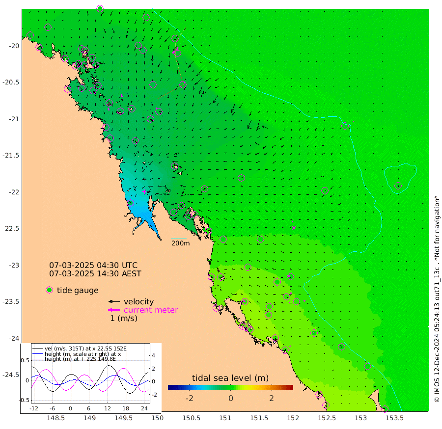 21cm/s 166T +10cm/s rms + 2cm/s 5T. Brampton I 18m 22cm/s 171T +9cm/s rms + 6cm/s 66T. Wigton I 38m 10cm/s -161T +7cm/s rms + 8cm/s 141T. Tern I 47m 28cm/s -157T +7cm/s rms + 12cm/s 54T. N Bugatti Rf 64m 26cm/s -144T +3cm/s rms + 13cm/s 178T. W Bugatti Rf 70m 11cm/s -157T +3cm/s rms + 3cm/s -130T. Creal Rf 69m 20cm/s -66T +7cm/s rms + 4cm/s 2T. North Rf 62m 21cm/s -37T +9cm/s rms + 2cm/s -56T. Cape Capricorn 26m 6cm/s -77T +5cm/s rms + 3cm/s 166T. L Musgrave I 42m 8cm/s -74T +9cm/s rms + 1cm/s -142T. Round Hill Hd 26m 2cm/s -144T +41cm/s rms + 48cm/s 116T. GBRELR 305m 9cm/s -76T +7cm/s rms + 6cm/s 123T. GBRCCH 92m 22cm/s -106T +8cm/s rms + 3cm/s -33T. GBRHIN 45m 12cm/s -93T +4cm/s rms + 2cm/s 41T. GBRHIS 46m 11cm/s -137T +16cm/s rms + 4cm/s -22T. GBROTE 59m -6cm Bell Cay -15cm Holbourne I -34cm Tern I -21cm Bugatti Rf -27cm Creal Rf -15cm White Tip I 16cm North Rf 27cm Rundle I 15cm L Musgrave I -3cm Saumarez Reef -7cm Kennedy Reef -9cm Unnamed Reef No. 2 -24cm Abbot Point -27cm Bowen -37cm Tideway Reef -28cm Hayman Island -50cm Square Reef -15cm Double Bay -33cm Molle Island -41cm Cid Harbour -24cm Hook Island -41cm Border Island -39cm Haslewood Island -36cm Shute Harbour -45cm Thomas Island -46cm Credlin Reef -52cm East Repulse Island -49cm Blacksmith Island -53cm Laguna Quays -45cm Carlisle Island (Off) -49cm St. Bees Island -48cm Scawfell Island -43cm Penrith Island -48cm Mackay Outer Harbour -47cm Hay Point -45cm Prudhoe Island -5cm Middle Island (Percy Isles) 6cm Gannet Cay 0cm Elusive Reef -48cm Mcewin Islet -16cm Mumford Island -26cm Osborn Island -23cm Marquis Island -21cm Reef Point -6cm High Peak Island 21cm Port Clinton 8cm Peaked Island 18cm Karamea Bank 25cm Johnson Patch - NW 24cm Rosslyn Bay 21cm Middle Island (Keppel Isles) 29cm Port Alma 20cm Heron Island 20cm One Tree Islet 25cm Polmaise Reef 11cm Tryon Island 22cm Rock Cod Shoal 28cm Gatcombe Head 31cm Gladstone 32cm South Trees (Storm Surge) 25cm Clews Point 23cm Round Hill Head 13cm Lady Elliot Island 14cm Breaksea Spit 29cm Bundaberg (Burnett Heads) 30cm Elliot Heads 4cm Waddy Point (Fraser Island)