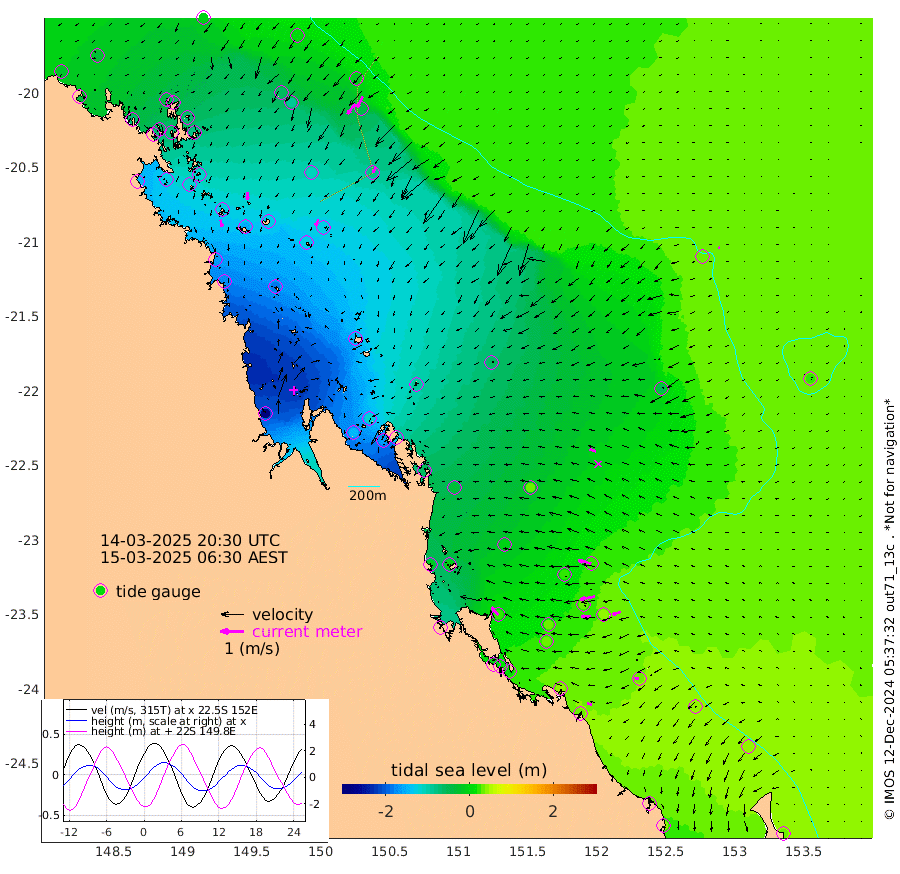 31cm/s 167T +10cm/s rms + 2cm/s 5T. Brampton I 18m 32cm/s 178T +9cm/s rms + 6cm/s 66T. Wigton I 38m 30cm/s -153T +7cm/s rms + 8cm/s 141T. Tern I 47m 52cm/s -153T +7cm/s rms + 12cm/s 54T. N Bugatti Rf 64m 54cm/s -144T +3cm/s rms + 13cm/s 178T. W Bugatti Rf 70m 27cm/s -149T +3cm/s rms + 3cm/s -130T. Creal Rf 69m 58cm/s -75T +7cm/s rms + 4cm/s 2T. North Rf 62m 45cm/s -41T +9cm/s rms + 2cm/s -56T. Cape Capricorn 26m 18cm/s -94T +5cm/s rms + 3cm/s 166T. L Musgrave I 42m 21cm/s -68T +9cm/s rms + 1cm/s -142T. Round Hill Hd 26m 6cm/s -118T +41cm/s rms + 48cm/s 116T. GBRELR 305m 29cm/s -71T +7cm/s rms + 6cm/s 123T. GBRCCH 92m 65cm/s -100T +8cm/s rms + 3cm/s -33T. GBRHIN 45m 41cm/s -93T +4cm/s rms + 2cm/s 41T. GBRHIS 46m 37cm/s -109T +16cm/s rms + 4cm/s -22T. GBROTE 59m -62cm Bell Cay -30cm Holbourne I -130cm Tern I -43cm Bugatti Rf -84cm Creal Rf -14cm White Tip I 22cm North Rf 21cm Rundle I 37cm L Musgrave I 28cm Saumarez Reef -5cm Kennedy Reef 6cm Unnamed Reef No. 2 -20cm Abbot Point -32cm Bowen -64cm Tideway Reef -44cm Hayman Island -88cm Square Reef -66cm Double Bay -63cm Molle Island -68cm Cid Harbour -64cm Hook Island -69cm Border Island -80cm Haslewood Island -78cm Shute Harbour -114cm Thomas Island -109cm Credlin Reef -126cm East Repulse Island -116cm Blacksmith Island -146cm Laguna Quays -130cm Carlisle Island (Off) -159cm St. Bees Island -128cm Scawfell Island -128cm Penrith Island -167cm Mackay Outer Harbour -178cm Hay Point -180cm Prudhoe Island -147cm Middle Island (Percy Isles) -54cm Gannet Cay 30cm Elusive Reef -291cm Mcewin Islet -118cm Mumford Island -146cm Osborn Island -164cm Marquis Island -131cm Reef Point -92cm High Peak Island -61cm Port Clinton -36cm Peaked Island 30cm Karamea Bank -3cm Johnson Patch - NW -12cm Rosslyn Bay -7cm Middle Island (Keppel Isles) -31cm Port Alma 30cm Heron Island 40cm One Tree Islet 29cm Polmaise Reef 24cm Tryon Island 33cm Rock Cod Shoal 12cm Gatcombe Head -5cm Gladstone 9cm South Trees (Storm Surge) 45cm Clews Point 36cm Round Hill Head 40cm Lady Elliot Island 45cm Breaksea Spit 36cm Bundaberg (Burnett Heads) 41cm Elliot Heads 35cm Waddy Point (Fraser Island)