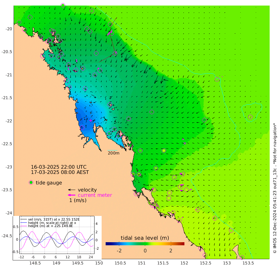 32cm/s 163T +10cm/s rms + 2cm/s 5T. Brampton I 18m 35cm/s 173T +9cm/s rms + 6cm/s 66T. Wigton I 38m 23cm/s -161T +7cm/s rms + 8cm/s 141T. Tern I 47m 46cm/s -159T +7cm/s rms + 12cm/s 54T. N Bugatti Rf 64m 52cm/s -148T +3cm/s rms + 13cm/s 178T. W Bugatti Rf 70m 27cm/s -164T +3cm/s rms + 3cm/s -130T. Creal Rf 69m 40cm/s -77T +7cm/s rms + 4cm/s 2T. North Rf 62m 34cm/s -41T +9cm/s rms + 2cm/s -56T. Cape Capricorn 26m 14cm/s -95T +5cm/s rms + 3cm/s 166T. L Musgrave I 42m 13cm/s -69T +9cm/s rms + 1cm/s -142T. Round Hill Hd 26m 5cm/s -150T +41cm/s rms + 48cm/s 116T. GBRELR 305m 26cm/s -76T +7cm/s rms + 6cm/s 123T. GBRCCH 92m 49cm/s -103T +8cm/s rms + 3cm/s -33T. GBRHIN 45m 30cm/s -95T +4cm/s rms + 2cm/s 41T. GBRHIS 46m 29cm/s -122T +16cm/s rms + 4cm/s -22T. GBROTE 59m -14cm Bell Cay 1cm Holbourne I -61cm Tern I -7cm Bugatti Rf -33cm Creal Rf 11cm White Tip I 41cm North Rf 48cm Rundle I 44cm L Musgrave I 46cm Saumarez Reef 19cm Kennedy Reef 27cm Unnamed Reef No. 2 13cm Abbot Point 4cm Bowen -19cm Tideway Reef -3cm Hayman Island -28cm Square Reef -29cm Double Bay -22cm Molle Island -17cm Cid Harbour -24cm Hook Island -24cm Border Island -28cm Haslewood Island -29cm Shute Harbour -55cm Thomas Island -44cm Credlin Reef -59cm East Repulse Island -53cm Blacksmith Island -80cm Laguna Quays -60cm Carlisle Island (Off) -78cm St. Bees Island -62cm Scawfell Island -57cm Penrith Island -92cm Mackay Outer Harbour -97cm Hay Point -98cm Prudhoe Island -74cm Middle Island (Percy Isles) -14cm Gannet Cay 35cm Elusive Reef -201cm Mcewin Islet -43cm Mumford Island -64cm Osborn Island -75cm Marquis Island -53cm Reef Point -29cm High Peak Island -9cm Port Clinton 19cm Peaked Island 49cm Karamea Bank 29cm Johnson Patch - NW 31cm Rosslyn Bay 38cm Middle Island (Keppel Isles) 22cm Port Alma 47cm Heron Island 52cm One Tree Islet 48cm Polmaise Reef 46cm Tryon Island 55cm Rock Cod Shoal 39cm Gatcombe Head 32cm Gladstone 41cm South Trees (Storm Surge) 57cm Clews Point 49cm Round Hill Head 46cm Lady Elliot Island 44cm Breaksea Spit 52cm Bundaberg (Burnett Heads) 59cm Elliot Heads 34cm Waddy Point (Fraser Island)