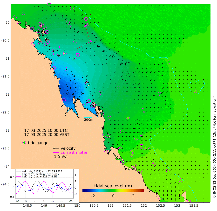32cm/s 162T +10cm/s rms + 2cm/s 5T. Brampton I 18m 31cm/s 175T +9cm/s rms + 6cm/s 66T. Wigton I 38m 21cm/s -155T +7cm/s rms + 8cm/s 141T. Tern I 47m 44cm/s -158T +7cm/s rms + 12cm/s 54T. N Bugatti Rf 64m 47cm/s -146T +3cm/s rms + 13cm/s 178T. W Bugatti Rf 70m 21cm/s -162T +3cm/s rms + 3cm/s -130T. Creal Rf 69m 47cm/s -77T +7cm/s rms + 4cm/s 2T. North Rf 62m 37cm/s -39T +9cm/s rms + 2cm/s -56T. Cape Capricorn 26m 16cm/s -97T +5cm/s rms + 3cm/s 166T. L Musgrave I 42m 15cm/s -79T +9cm/s rms + 1cm/s -142T. Round Hill Hd 26m 6cm/s -141T +41cm/s rms + 48cm/s 116T. GBRELR 305m 26cm/s -70T +7cm/s rms + 6cm/s 123T. GBRCCH 92m 56cm/s -102T +8cm/s rms + 3cm/s -33T. GBRHIN 45m 34cm/s -92T +4cm/s rms + 2cm/s 41T. GBRHIS 46m 31cm/s -113T +16cm/s rms + 4cm/s -22T. GBROTE 59m -38cm Bell Cay -29cm Holbourne I -92cm Tern I -31cm Bugatti Rf -58cm Creal Rf -11cm White Tip I 25cm North Rf 28cm Rundle I 32cm L Musgrave I 35cm Saumarez Reef -14cm Kennedy Reef 2cm Unnamed Reef No. 2 -16cm Abbot Point -25cm Bowen -47cm Tideway Reef -32cm Hayman Island -60cm Square Reef -46cm Double Bay -68cm Molle Island -50cm Cid Harbour -51cm Hook Island -52cm Border Island -57cm Haslewood Island -59cm Shute Harbour -85cm Thomas Island -71cm Credlin Reef -89cm East Repulse Island -84cm Blacksmith Island -110cm Laguna Quays -88cm Carlisle Island (Off) -88cm St. Bees Island -76cm Scawfell Island -90cm Penrith Island -123cm Mackay Outer Harbour -129cm Hay Point -125cm Prudhoe Island -110cm Middle Island (Percy Isles) -35cm Gannet Cay 19cm Elusive Reef -224cm Mcewin Islet -74cm Mumford Island -99cm Osborn Island -102cm Marquis Island -86cm Reef Point -56cm High Peak Island -34cm Port Clinton 0cm Peaked Island 33cm Karamea Bank 6cm Johnson Patch - NW 7cm Rosslyn Bay 15cm Middle Island (Keppel Isles) -5cm Port Alma 31cm Heron Island 36cm One Tree Islet 32cm Polmaise Reef 24cm Tryon Island 37cm Rock Cod Shoal 18cm Gatcombe Head 10cm Gladstone 20cm South Trees (Storm Surge) 42cm Clews Point 36cm Round Hill Head 35cm Lady Elliot Island 33cm Breaksea Spit 34cm Bundaberg (Burnett Heads) 42cm Elliot Heads 30cm Waddy Point (Fraser Island)