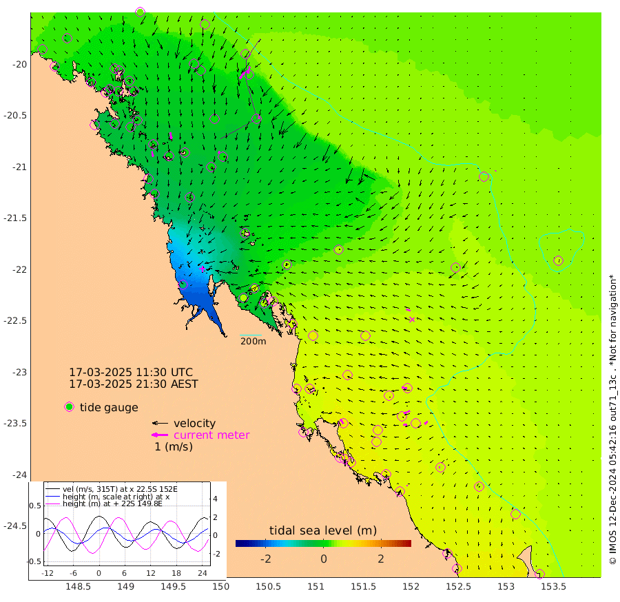 33cm/s 168T +10cm/s rms + 2cm/s 5T. Brampton I 18m 43cm/s 171T +9cm/s rms + 6cm/s 66T. Wigton I 38m 16cm/s -156T +7cm/s rms + 8cm/s 141T. Tern I 47m 46cm/s -164T +7cm/s rms + 12cm/s 54T. N Bugatti Rf 64m 54cm/s -148T +3cm/s rms + 13cm/s 178T. W Bugatti Rf 70m 24cm/s -178T +3cm/s rms + 3cm/s -130T. Creal Rf 69m 34cm/s -82T +7cm/s rms + 4cm/s 2T. North Rf 62m 32cm/s -31T +9cm/s rms + 2cm/s -56T. Cape Capricorn 26m 9cm/s -112T +5cm/s rms + 3cm/s 166T. L Musgrave I 42m 7cm/s -90T +9cm/s rms + 1cm/s -142T. Round Hill Hd 26m 5cm/s -145T +41cm/s rms + 48cm/s 116T. GBRELR 305m 29cm/s -70T +7cm/s rms + 6cm/s 123T. GBRCCH 92m 40cm/s -113T +8cm/s rms + 3cm/s -33T. GBRHIN 45m 22cm/s -96T +4cm/s rms + 2cm/s 41T. GBRHIS 46m 23cm/s -132T +16cm/s rms + 4cm/s -22T. GBROTE 59m 49cm Bell Cay 16cm Holbourne I 12cm Tern I 23cm Bugatti Rf 18cm Creal Rf 29cm White Tip I 76cm North Rf 97cm Rundle I 65cm L Musgrave I 60cm Saumarez Reef 28cm Kennedy Reef 33cm Unnamed Reef No. 2 21cm Abbot Point 17cm Bowen 7cm Tideway Reef 21cm Hayman Island 16cm Square Reef 3cm Double Bay -11cm Molle Island 16cm Cid Harbour 5cm Hook Island 7cm Border Island 4cm Haslewood Island 5cm Shute Harbour -5cm Thomas Island 15cm Credlin Reef -8cm East Repulse Island 5cm Blacksmith Island -20cm Laguna Quays -1cm Carlisle Island (Off) 17cm St. Bees Island 17cm Scawfell Island 17cm Penrith Island -11cm Mackay Outer Harbour -7cm Hay Point -2cm Prudhoe Island 29cm Middle Island (Percy Isles) 47cm Gannet Cay 38cm Elusive Reef -64cm Mcewin Islet 68cm Mumford Island 49cm Osborn Island 53cm Marquis Island 48cm Reef Point 51cm High Peak Island 73cm Port Clinton 99cm Peaked Island 80cm Karamea Bank 90cm Johnson Patch - NW 100cm Rosslyn Bay 105cm Middle Island (Keppel Isles) 105cm Port Alma 81cm Heron Island 89cm One Tree Islet 92cm Polmaise Reef 84cm Tryon Island 88cm Rock Cod Shoal 88cm Gatcombe Head 96cm Gladstone 97cm South Trees (Storm Surge) 91cm Clews Point 81cm Round Hill Head 65cm Lady Elliot Island 61cm Breaksea Spit 83cm Bundaberg (Burnett Heads) 94cm Elliot Heads 51cm Waddy Point (Fraser Island)