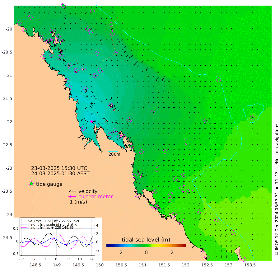 7cm/s -158T +10cm/s rms + 2cm/s 5T. Brampton I 18m 11cm/s -157T +9cm/s rms + 6cm/s 66T. Wigton I 38m 12cm/s -135T +7cm/s rms + 8cm/s 141T. Tern I 47m 15cm/s -128T +7cm/s rms + 12cm/s 54T. N Bugatti Rf 64m 5cm/s -95T +3cm/s rms + 13cm/s 178T. W Bugatti Rf 70m 8cm/s -111T +3cm/s rms + 3cm/s -130T. Creal Rf 69m 35cm/s -70T +7cm/s rms + 4cm/s 2T. North Rf 62m 25cm/s -39T +9cm/s rms + 2cm/s -56T. Cape Capricorn 26m 8cm/s -114T +5cm/s rms + 3cm/s 166T. L Musgrave I 42m 11cm/s -71T +9cm/s rms + 1cm/s -142T. Round Hill Hd 26m 5cm/s -71T +41cm/s rms + 48cm/s 116T. GBRELR 305m 16cm/s -55T +7cm/s rms + 6cm/s 123T. GBRCCH 92m 32cm/s -97T +8cm/s rms + 3cm/s -33T. GBRHIN 45m 21cm/s -91T +4cm/s rms + 2cm/s 41T. GBRHIS 46m 18cm/s -89T +16cm/s rms + 4cm/s -22T. GBROTE 59m -41cm Bell Cay -50cm Holbourne I -86cm Tern I -41cm Bugatti Rf -58cm Creal Rf -28cm White Tip I 11cm North Rf 6cm Rundle I 24cm L Musgrave I 9cm Saumarez Reef -38cm Kennedy Reef -20cm Unnamed Reef No. 2 -49cm Abbot Point -53cm Bowen -61cm Tideway Reef -59cm Hayman Island -81cm Square Reef -57cm Double Bay -66cm Molle Island -66cm Cid Harbour -56cm Hook Island -63cm Border Island -63cm Haslewood Island -68cm Shute Harbour -78cm Thomas Island -76cm Credlin Reef -81cm East Repulse Island -84cm Blacksmith Island -92cm Laguna Quays -81cm Carlisle Island (Off) -95cm St. Bees Island -88cm Scawfell Island -89cm Penrith Island -97cm Mackay Outer Harbour -101cm Hay Point -106cm Prudhoe Island -80cm Middle Island (Percy Isles) -29cm Gannet Cay 12cm Elusive Reef -120cm Mcewin Islet -94cm Mumford Island -93cm Osborn Island -90cm Marquis Island -79cm Reef Point -53cm High Peak Island -33cm Port Clinton -34cm Peaked Island 18cm Karamea Bank -1cm Johnson Patch - NW -12cm Rosslyn Bay -13cm Middle Island (Keppel Isles) -21cm Port Alma 19cm Heron Island 17cm One Tree Islet 13cm Polmaise Reef 14cm Tryon Island 21cm Rock Cod Shoal 5cm Gatcombe Head -1cm Gladstone 5cm South Trees (Storm Surge) 20cm Clews Point 24cm Round Hill Head 29cm Lady Elliot Island 33cm Breaksea Spit 21cm Bundaberg (Burnett Heads) 21cm Elliot Heads 30cm Waddy Point (Fraser Island)