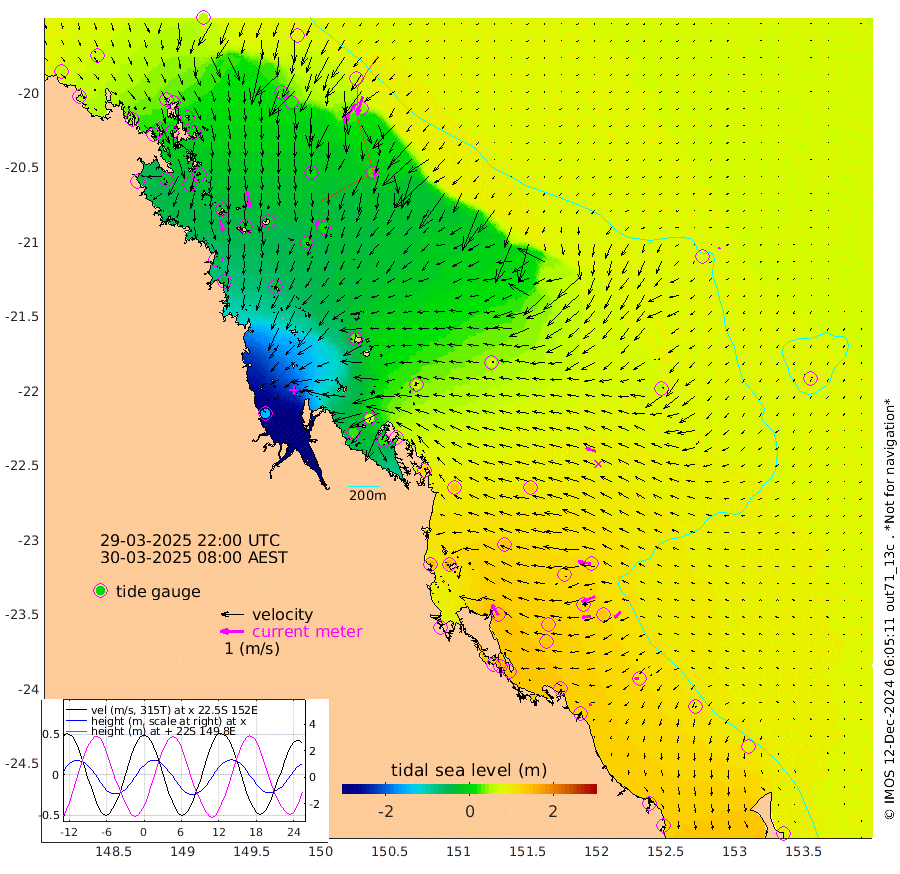53cm/s 168T +10cm/s rms + 2cm/s 5T. Brampton I 18m 64cm/s 171T +9cm/s rms + 6cm/s 66T. Wigton I 38m 29cm/s -159T +7cm/s rms + 8cm/s 141T. Tern I 47m 82cm/s -162T +7cm/s rms + 12cm/s 54T. N Bugatti Rf 64m 97cm/s -150T +3cm/s rms + 13cm/s 178T. W Bugatti Rf 70m 40cm/s -170T +3cm/s rms + 3cm/s -130T. Creal Rf 69m 55cm/s -81T +7cm/s rms + 4cm/s 2T. North Rf 62m 53cm/s -32T +9cm/s rms + 2cm/s -56T. Cape Capricorn 26m 18cm/s -100T +5cm/s rms + 3cm/s 166T. L Musgrave I 42m 12cm/s -70T +9cm/s rms + 1cm/s -142T. Round Hill Hd 26m 7cm/s -147T +41cm/s rms + 48cm/s 116T. GBRELR 305m 46cm/s -72T +7cm/s rms + 6cm/s 123T. GBRCCH 92m 62cm/s -112T +8cm/s rms + 3cm/s -33T. GBRHIN 45m 35cm/s -97T +4cm/s rms + 2cm/s 41T. GBRHIS 46m 37cm/s -132T +16cm/s rms + 4cm/s -22T. GBROTE 59m 67cm Bell Cay 57cm Holbourne I 10cm Tern I 41cm Bugatti Rf 22cm Creal Rf 57cm White Tip I 117cm North Rf 149cm Rundle I 100cm L Musgrave I 88cm Saumarez Reef 65cm Kennedy Reef 78cm Unnamed Reef No. 2 59cm Abbot Point 49cm Bowen 23cm Tideway Reef 45cm Hayman Island 21cm Square Reef 45cm Double Bay 20cm Molle Island 17cm Cid Harbour 32cm Hook Island 6cm Border Island 8cm Haslewood Island 17cm Shute Harbour -10cm Thomas Island 11cm Credlin Reef -14cm East Repulse Island -21cm Blacksmith Island -37cm Laguna Quays -5cm Carlisle Island (Off) -15cm St. Bees Island -13cm Scawfell Island 6cm Penrith Island -31cm Mackay Outer Harbour -29cm Hay Point -10cm Prudhoe Island 36cm Middle Island (Percy Isles) 65cm Gannet Cay 74cm Elusive Reef -142cm Mcewin Islet 66cm Mumford Island 23cm Osborn Island 23cm Marquis Island 32cm Reef Point 62cm High Peak Island 116cm Port Clinton 140cm Peaked Island 128cm Karamea Bank 132cm Johnson Patch - NW 146cm Rosslyn Bay 156cm Middle Island (Keppel Isles) 148cm Port Alma 122cm Heron Island 135cm One Tree Islet 135cm Polmaise Reef 116cm Tryon Island 139cm Rock Cod Shoal 133cm Gatcombe Head 137cm Gladstone 143cm South Trees (Storm Surge) 134cm Clews Point 119cm Round Hill Head 100cm Lady Elliot Island 92cm Breaksea Spit 126cm Bundaberg (Burnett Heads) 132cm Elliot Heads 72cm Waddy Point (Fraser Island)