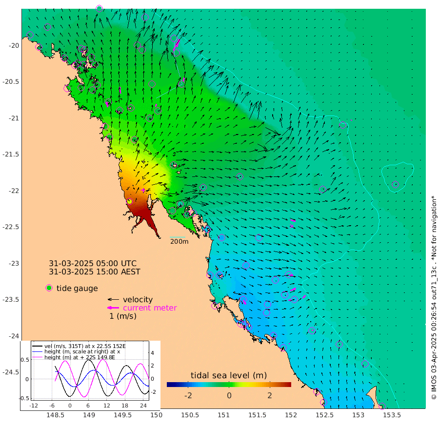 47cm/s -9T +10cm/s rms + 2cm/s 5T. Brampton I 18m 59cm/s -10T +9cm/s rms + 6cm/s 66T. Wigton I 38m 25cm/s 23T +7cm/s rms + 8cm/s 141T. Tern I 47m 70cm/s 16T +7cm/s rms + 12cm/s 54T. N Bugatti Rf 64m 85cm/s 30T +3cm/s rms + 13cm/s 178T. W Bugatti Rf 70m 34cm/s 7T +3cm/s rms + 3cm/s -130T. Creal Rf 69m 42cm/s 98T +7cm/s rms + 4cm/s 2T. North Rf 62m 43cm/s 150T +9cm/s rms + 2cm/s -56T. Cape Capricorn 26m 11cm/s 71T +5cm/s rms + 3cm/s 166T. L Musgrave I 42m 6cm/s 88T +9cm/s rms + 1cm/s -142T. Round Hill Hd 26m 6cm/s 30T +41cm/s rms + 48cm/s 116T. GBRELR 305m 42cm/s 106T +7cm/s rms + 6cm/s 123T. GBRCCH 92m 50cm/s 66T +8cm/s rms + 3cm/s -33T. GBRHIN 45m 26cm/s 78T +4cm/s rms + 2cm/s 41T. GBRHIS 46m 32cm/s 41T +16cm/s rms + 4cm/s -22T. GBROTE 59m -86cm Bell Cay -68cm Holbourne I -43cm Tern I -59cm Bugatti Rf -48cm Creal Rf -70cm White Tip I -121cm North Rf -152cm Rundle I -101cm L Musgrave I -92cm Saumarez Reef -81cm Kennedy Reef -86cm Unnamed Reef No. 2 -71cm Abbot Point -63cm Bowen -46cm Tideway Reef -61cm Hayman Island -49cm Square Reef -64cm Double Bay -36cm Molle Island -43cm Cid Harbour -52cm Hook Island -30cm Border Island -29cm Haslewood Island -40cm Shute Harbour -23cm Thomas Island -43cm Credlin Reef -18cm East Repulse Island -19cm Blacksmith Island 1cm Laguna Quays -26cm Carlisle Island (Off) -35cm St. Bees Island -22cm Scawfell Island -39cm Penrith Island -10cm Mackay Outer Harbour -14cm Hay Point -31cm Prudhoe Island -75cm Middle Island (Percy Isles) -81cm Gannet Cay -79cm Elusive Reef 75cm Mcewin Islet -100cm Mumford Island -64cm Osborn Island -67cm Marquis Island -71cm Reef Point -89cm High Peak Island -133cm Port Clinton -157cm Peaked Island -131cm Karamea Bank -145cm Johnson Patch - NW -158cm Rosslyn Bay -165cm Middle Island (Keppel Isles) -164cm Port Alma -126cm Heron Island -138cm One Tree Islet -140cm Polmaise Reef -128cm Tryon Island -140cm Rock Cod Shoal -138cm Gatcombe Head -147cm Gladstone -150cm South Trees (Storm Surge) -137cm Clews Point -121cm Round Hill Head -101cm Lady Elliot Island -97cm Breaksea Spit -129cm Bundaberg (Burnett Heads) -136cm Elliot Heads -74cm Waddy Point (Fraser Island)