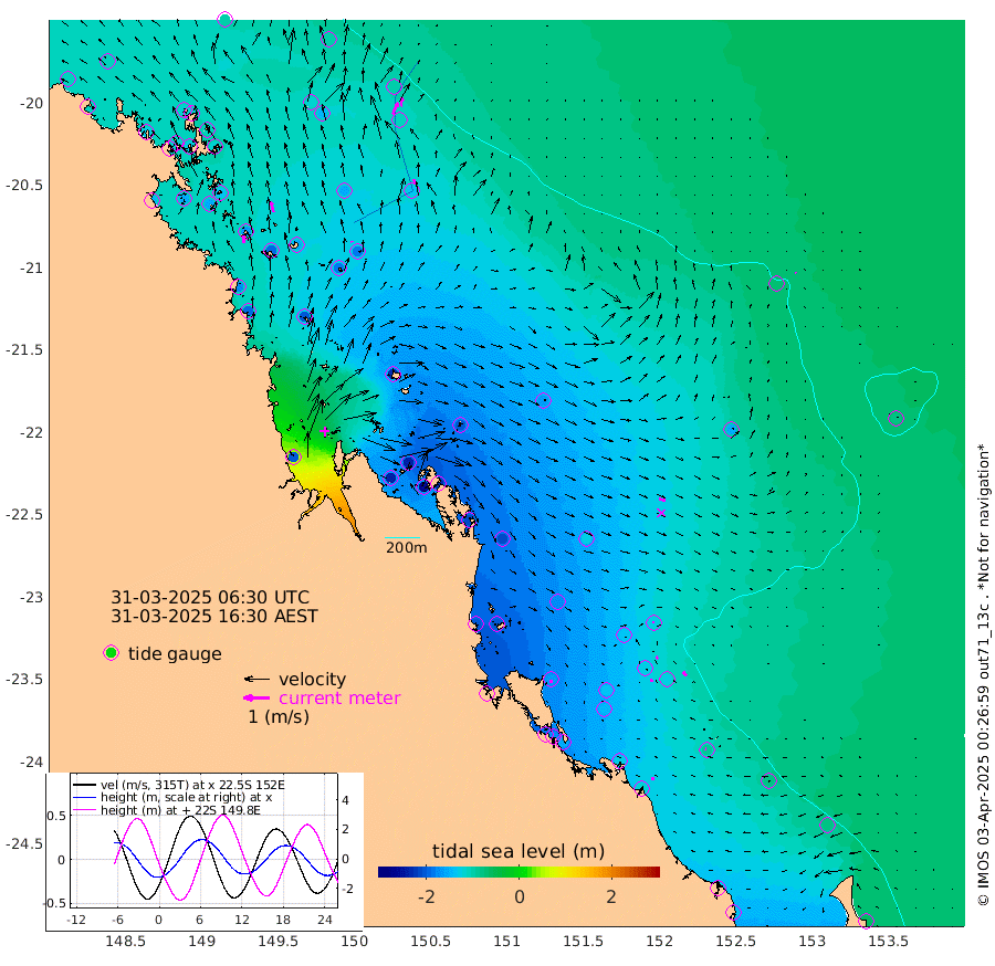 25cm/s -2T +10cm/s rms + 2cm/s 5T. Brampton I 18m 41cm/s -15T +9cm/s rms + 6cm/s 66T. Wigton I 38m 4cm/s -24T +7cm/s rms + 8cm/s 141T. Tern I 47m 36cm/s 5T +7cm/s rms + 12cm/s 54T. N Bugatti Rf 64m 51cm/s 24T +3cm/s rms + 13cm/s 178T. W Bugatti Rf 70m 21cm/s -20T +3cm/s rms + 3cm/s -130T. Creal Rf 69m 6cm/s -11T +7cm/s rms + 4cm/s 2T. North Rf 62m 12cm/s -174T +9cm/s rms + 2cm/s -56T. Cape Capricorn 26m 5cm/s -66T +5cm/s rms + 3cm/s 166T. L Musgrave I 42m 12cm/s -68T +9cm/s rms + 1cm/s -142T. Round Hill Hd 26m 3cm/s -25T +41cm/s rms + 48cm/s 116T. GBRELR 305m 23cm/s 104T +7cm/s rms + 6cm/s 123T. GBRCCH 92m 11cm/s -36T +8cm/s rms + 3cm/s -33T. GBRHIN 45m 12cm/s -70T +4cm/s rms + 2cm/s 41T. GBRHIS 46m 21cm/s -31T +16cm/s rms + 4cm/s -22T. GBROTE 59m -166cm Bell Cay -109cm Holbourne I -179cm Tern I -112cm Bugatti Rf -137cm Creal Rf -98cm White Tip I -126cm North Rf -165cm Rundle I -88cm L Musgrave I -77cm Saumarez Reef -103cm Kennedy Reef -97cm Unnamed Reef No. 2 -106cm Abbot Point -110cm Bowen -114cm Tideway Reef -120cm Hayman Island -142cm Square Reef -127cm Double Bay -120cm Molle Island -130cm Cid Harbour -118cm Hook Island -110cm Border Island -121cm Haslewood Island -127cm Shute Harbour -140cm Thomas Island -159cm Credlin Reef -153cm East Repulse Island -150cm Blacksmith Island -145cm Laguna Quays -162cm Carlisle Island (Off) -188cm St. Bees Island -159cm Scawfell Island -181cm Penrith Island -178cm Mackay Outer Harbour -193cm Hay Point -199cm Prudhoe Island -229cm Middle Island (Percy Isles) -154cm Gannet Cay -66cm Elusive Reef -199cm Mcewin Islet -242cm Mumford Island -240cm Osborn Island -256cm Marquis Island -232cm Reef Point -199cm High Peak Island -212cm Port Clinton -210cm Peaked Island -128cm Karamea Bank -176cm Johnson Patch - NW -203cm Rosslyn Bay -205cm Middle Island (Keppel Isles) -229cm Port Alma -126cm Heron Island -126cm One Tree Islet -140cm Polmaise Reef -138cm Tryon Island -141cm Rock Cod Shoal -159cm Gatcombe Head -184cm Gladstone -174cm South Trees (Storm Surge) -122cm Clews Point -113cm Round Hill Head -83cm Lady Elliot Island -76cm Breaksea Spit -123cm Bundaberg (Burnett Heads) -131cm Elliot Heads -57cm Waddy Point (Fraser Island)