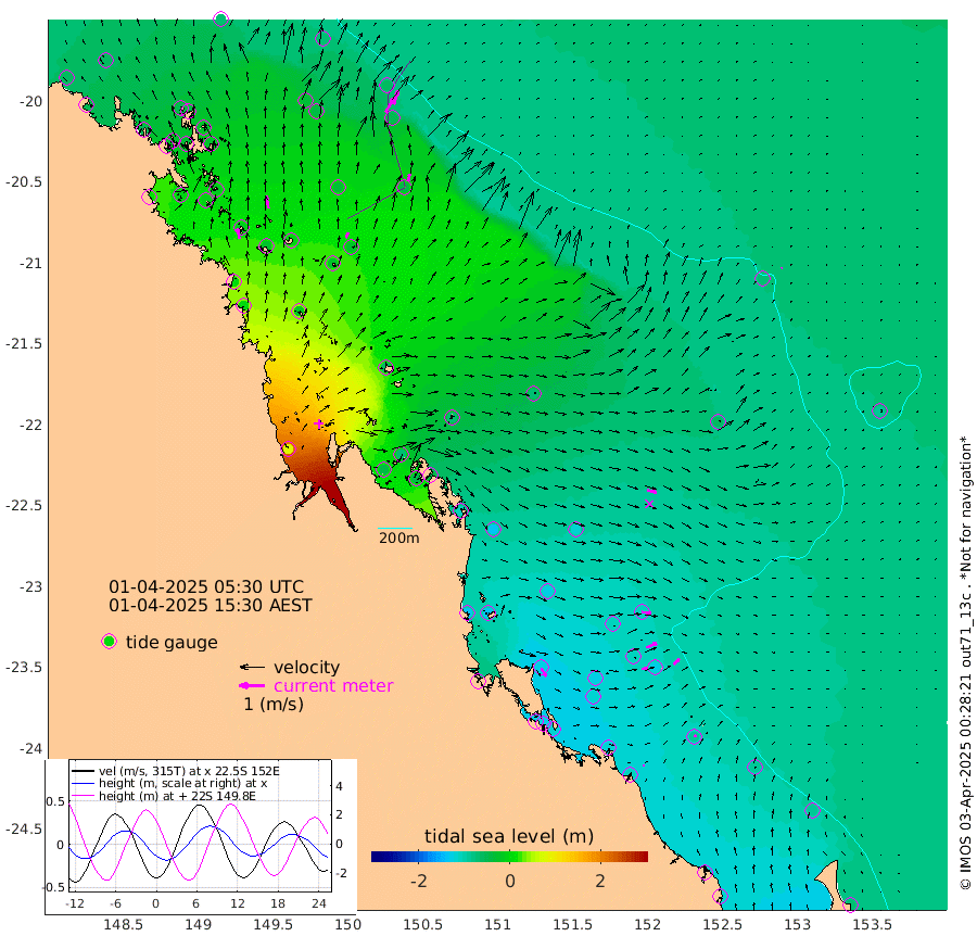 40cm/s -10T +10cm/s rms + 2cm/s 5T. Brampton I 18m 50cm/s -10T +9cm/s rms + 6cm/s 66T. Wigton I 38m 23cm/s 24T +7cm/s rms + 8cm/s 141T. Tern I 47m 58cm/s 16T +7cm/s rms + 12cm/s 54T. N Bugatti Rf 64m 71cm/s 31T +3cm/s rms + 13cm/s 178T. W Bugatti Rf 70m 30cm/s 9T +3cm/s rms + 3cm/s -130T. Creal Rf 69m 37cm/s 98T +7cm/s rms + 4cm/s 2T. North Rf 62m 38cm/s 148T +9cm/s rms + 2cm/s -56T. Cape Capricorn 26m 10cm/s 63T +5cm/s rms + 3cm/s 166T. L Musgrave I 42m 6cm/s 80T +9cm/s rms + 1cm/s -142T. Round Hill Hd 26m 5cm/s 35T +41cm/s rms + 48cm/s 116T. GBRELR 305m 37cm/s 105T +7cm/s rms + 6cm/s 123T. GBRCCH 92m 45cm/s 67T +8cm/s rms + 3cm/s -33T. GBRHIN 45m 25cm/s 79T +4cm/s rms + 2cm/s 41T. GBRHIS 46m 30cm/s 46T +16cm/s rms + 4cm/s -22T. GBROTE 59m -69cm Bell Cay -57cm Holbourne I -28cm Tern I -50cm Bugatti Rf -38cm Creal Rf -61cm White Tip I -106cm North Rf -130cm Rundle I -91cm L Musgrave I -88cm Saumarez Reef -71cm Kennedy Reef -75cm Unnamed Reef No. 2 -58cm Abbot Point -51cm Bowen -37cm Tideway Reef -48cm Hayman Island -40cm Square Reef -48cm Double Bay -26cm Molle Island -32cm Cid Harbour -42cm Hook Island -24cm Border Island -19cm Haslewood Island -29cm Shute Harbour -13cm Thomas Island -30cm Credlin Reef -4cm East Repulse Island -9cm Blacksmith Island 10cm Laguna Quays -12cm Carlisle Island (Off) -19cm St. Bees Island -7cm Scawfell Island -23cm Penrith Island 3cm Mackay Outer Harbour 1cm Hay Point -17cm Prudhoe Island -56cm Middle Island (Percy Isles) -65cm Gannet Cay -73cm Elusive Reef 84cm Mcewin Islet -74cm Mumford Island -39cm Osborn Island -40cm Marquis Island -46cm Reef Point -68cm High Peak Island -110cm Port Clinton -133cm Peaked Island -114cm Karamea Bank -127cm Johnson Patch - NW -132cm Rosslyn Bay -138cm Middle Island (Keppel Isles) -136cm Port Alma -111cm Heron Island -124cm One Tree Islet -124cm Polmaise Reef -112cm Tryon Island -121cm Rock Cod Shoal -118cm Gatcombe Head -125cm Gladstone -128cm South Trees (Storm Surge) -121cm Clews Point -108cm Round Hill Head -92cm Lady Elliot Island -90cm Breaksea Spit -115cm Bundaberg (Burnett Heads) -121cm Elliot Heads -68cm Waddy Point (Fraser Island)