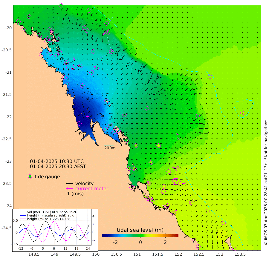 37cm/s 166T +10cm/s rms + 2cm/s 5T. Brampton I 18m 42cm/s 175T +9cm/s rms + 6cm/s 66T. Wigton I 38m 27cm/s -151T +7cm/s rms + 8cm/s 141T. Tern I 47m 58cm/s -159T +7cm/s rms + 12cm/s 54T. N Bugatti Rf 64m 63cm/s -146T +3cm/s rms + 13cm/s 178T. W Bugatti Rf 70m 28cm/s -158T +3cm/s rms + 3cm/s -130T. Creal Rf 69m 61cm/s -77T +7cm/s rms + 4cm/s 2T. North Rf 62m 52cm/s -36T +9cm/s rms + 2cm/s -56T. Cape Capricorn 26m 21cm/s -107T +5cm/s rms + 3cm/s 166T. L Musgrave I 42m 19cm/s -79T +9cm/s rms + 1cm/s -142T. Round Hill Hd 26m 7cm/s -122T +41cm/s rms + 48cm/s 116T. GBRELR 305m 38cm/s -68T +7cm/s rms + 6cm/s 123T. GBRCCH 92m 70cm/s -103T +8cm/s rms + 3cm/s -33T. GBRHIN 45m 44cm/s -92T +4cm/s rms + 2cm/s 41T. GBRHIS 46m 40cm/s -112T +16cm/s rms + 4cm/s -22T. GBROTE 59m -30cm Bell Cay -22cm Holbourne I -100cm Tern I -27cm Bugatti Rf -58cm Creal Rf -3cm White Tip I 51cm North Rf 58cm Rundle I 59cm L Musgrave I 58cm Saumarez Reef -1cm Kennedy Reef 13cm Unnamed Reef No. 2 -18cm Abbot Point -30cm Bowen -51cm Tideway Reef -39cm Hayman Island -65cm Square Reef -47cm Double Bay -79cm Molle Island -69cm Cid Harbour -48cm Hook Island -65cm Border Island -77cm Haslewood Island -70cm Shute Harbour -99cm Thomas Island -85cm Credlin Reef -119cm East Repulse Island -115cm Blacksmith Island -133cm Laguna Quays -114cm Carlisle Island (Off) -124cm St. Bees Island -114cm Scawfell Island -110cm Penrith Island -143cm Mackay Outer Harbour -149cm Hay Point -127cm Prudhoe Island -98cm Middle Island (Percy Isles) -26cm Gannet Cay 40cm Elusive Reef -265cm Mcewin Islet -75cm Mumford Island -120cm Osborn Island -129cm Marquis Island -109cm Reef Point -55cm High Peak Island -5cm Port Clinton 31cm Peaked Island 62cm Karamea Bank 43cm Johnson Patch - NW 34cm Rosslyn Bay 42cm Middle Island (Keppel Isles) 20cm Port Alma 58cm Heron Island 76cm One Tree Islet 67cm Polmaise Reef 50cm Tryon Island 63cm Rock Cod Shoal 45cm Gatcombe Head 37cm Gladstone 48cm South Trees (Storm Surge) 77cm Clews Point 66cm Round Hill Head 64cm Lady Elliot Island 62cm Breaksea Spit 64cm Bundaberg (Burnett Heads) 65cm Elliot Heads 54cm Waddy Point (Fraser Island)