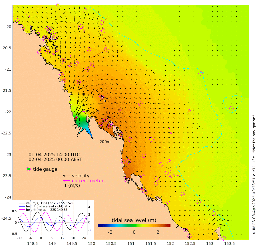 12cm/s -139T +10cm/s rms + 2cm/s 5T. Brampton I 18m 23cm/s 166T +9cm/s rms + 6cm/s 66T. Wigton I 38m 6cm/s 12T +7cm/s rms + 8cm/s 141T. Tern I 47m 14cm/s 160T +7cm/s rms + 12cm/s 54T. N Bugatti Rf 64m 24cm/s -155T +3cm/s rms + 13cm/s 178T. W Bugatti Rf 70m 10cm/s 133T +3cm/s rms + 3cm/s -130T. Creal Rf 69m 13cm/s 130T +7cm/s rms + 4cm/s 2T. North Rf 62m 9cm/s 49T +9cm/s rms + 2cm/s -56T. Cape Capricorn 26m 15cm/s 114T +5cm/s rms + 3cm/s 166T. L Musgrave I 42m 15cm/s 115T +9cm/s rms + 1cm/s -142T. Round Hill Hd 26m 1cm/s -1T +41cm/s rms + 48cm/s 116T. GBRELR 305m 18cm/s -66T +7cm/s rms + 6cm/s 123T. GBRCCH 92m 20cm/s 111T +8cm/s rms + 3cm/s -33T. GBRHIN 45m 18cm/s 95T +4cm/s rms + 2cm/s 41T. GBRHIS 46m 16cm/s 115T +16cm/s rms + 4cm/s -22T. GBROTE 59m 162cm Bell Cay 98cm Holbourne I 186cm Tern I 110cm Bugatti Rf 140cm Creal Rf 91cm White Tip I 114cm North Rf 145cm Rundle I 79cm L Musgrave I 63cm Saumarez Reef 90cm Kennedy Reef 86cm Unnamed Reef No. 2 93cm Abbot Point 99cm Bowen 113cm Tideway Reef 111cm Hayman Island 139cm Square Reef 121cm Double Bay 117cm Molle Island 126cm Cid Harbour 118cm Hook Island 116cm Border Island 121cm Haslewood Island 127cm Shute Harbour 148cm Thomas Island 166cm Credlin Reef 165cm East Repulse Island 156cm Blacksmith Island 161cm Laguna Quays 173cm Carlisle Island (Off) 195cm St. Bees Island 164cm Scawfell Island 186cm Penrith Island 197cm Mackay Outer Harbour 212cm Hay Point 214cm Prudhoe Island 235cm Middle Island (Percy Isles) 153cm Gannet Cay 63cm Elusive Reef 263cm Mcewin Islet 234cm Mumford Island 249cm Osborn Island 267cm Marquis Island 237cm Reef Point 197cm High Peak Island 203cm Port Clinton 189cm Peaked Island 115cm Karamea Bank 160cm Johnson Patch - NW 185cm Rosslyn Bay 184cm Middle Island (Keppel Isles) 211cm Port Alma 112cm Heron Island 113cm One Tree Islet 124cm Polmaise Reef 128cm Tryon Island 127cm Rock Cod Shoal 141cm Gatcombe Head 169cm Gladstone 157cm South Trees (Storm Surge) 106cm Clews Point 101cm Round Hill Head 75cm Lady Elliot Island 72cm Breaksea Spit 106cm Bundaberg (Burnett Heads) 109cm Elliot Heads 57cm Waddy Point (Fraser Island)