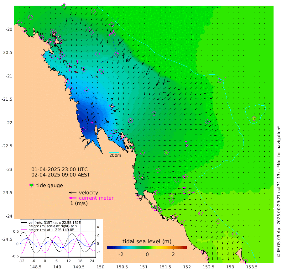 35cm/s 156T +10cm/s rms + 2cm/s 5T. Brampton I 18m 34cm/s 170T +9cm/s rms + 6cm/s 66T. Wigton I 38m 24cm/s -163T +7cm/s rms + 8cm/s 141T. Tern I 47m 46cm/s -157T +7cm/s rms + 12cm/s 54T. N Bugatti Rf 64m 48cm/s -147T +3cm/s rms + 13cm/s 178T. W Bugatti Rf 70m 25cm/s -164T +3cm/s rms + 3cm/s -130T. Creal Rf 69m 39cm/s -75T +7cm/s rms + 4cm/s 2T. North Rf 62m 33cm/s -42T +9cm/s rms + 2cm/s -56T. Cape Capricorn 26m 19cm/s -87T +5cm/s rms + 3cm/s 166T. L Musgrave I 42m 14cm/s -76T +9cm/s rms + 1cm/s -142T. Round Hill Hd 26m 5cm/s -160T +41cm/s rms + 48cm/s 116T. GBRELR 305m 20cm/s -83T +7cm/s rms + 6cm/s 123T. GBRCCH 92m 49cm/s -102T +8cm/s rms + 3cm/s -33T. GBRHIN 45m 32cm/s -94T +4cm/s rms + 2cm/s 41T. GBRHIS 46m 30cm/s -123T +16cm/s rms + 4cm/s -22T. GBROTE 59m -39cm Bell Cay -18cm Holbourne I -92cm Tern I -30cm Bugatti Rf -56cm Creal Rf -11cm White Tip I 21cm North Rf 26cm Rundle I 29cm L Musgrave I 38cm Saumarez Reef -2cm Kennedy Reef 2cm Unnamed Reef No. 2 -17cm Abbot Point -27cm Bowen -47cm Tideway Reef -37cm Hayman Island -58cm Square Reef -43cm Double Bay -62cm Molle Island -58cm Cid Harbour -45cm Hook Island -60cm Border Island -65cm Haslewood Island -61cm Shute Harbour -87cm Thomas Island -83cm Credlin Reef -109cm East Repulse Island -94cm Blacksmith Island -115cm Laguna Quays -103cm Carlisle Island (Off) -108cm St. Bees Island -100cm Scawfell Island -99cm Penrith Island -128cm Mackay Outer Harbour -134cm Hay Point -118cm Prudhoe Island -90cm Middle Island (Percy Isles) -36cm Gannet Cay 16cm Elusive Reef -237cm Mcewin Islet -76cm Mumford Island -119cm Osborn Island -127cm Marquis Island -106cm Reef Point -59cm High Peak Island -25cm Port Clinton 4cm Peaked Island 27cm Karamea Bank 16cm Johnson Patch - NW 5cm Rosslyn Bay 10cm Middle Island (Keppel Isles) -4cm Port Alma 28cm Heron Island 37cm One Tree Islet 34cm Polmaise Reef 17cm Tryon Island 26cm Rock Cod Shoal 19cm Gatcombe Head 11cm Gladstone 20cm South Trees (Storm Surge) 40cm Clews Point 32cm Round Hill Head 32cm Lady Elliot Island 29cm Breaksea Spit 38cm Bundaberg (Burnett Heads) 43cm Elliot Heads 20cm Waddy Point (Fraser Island)