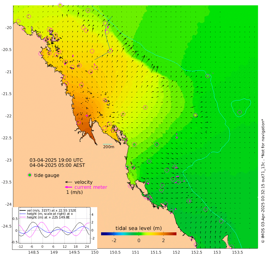 26cm/s -24T +10cm/s rms + 2cm/s 5T. Brampton I 18m 29cm/s -6T +9cm/s rms + 6cm/s 66T. Wigton I 38m 16cm/s 20T +7cm/s rms + 8cm/s 141T. Tern I 47m 37cm/s 28T +7cm/s rms + 12cm/s 54T. N Bugatti Rf 64m 27cm/s 36T +3cm/s rms + 13cm/s 178T. W Bugatti Rf 70m 14cm/s 19T +3cm/s rms + 3cm/s -130T. Creal Rf 69m 43cm/s 111T +7cm/s rms + 4cm/s 2T. North Rf 62m 34cm/s 140T +9cm/s rms + 2cm/s -56T. Cape Capricorn 26m 21cm/s 92T +5cm/s rms + 3cm/s 166T. L Musgrave I 42m 18cm/s 108T +9cm/s rms + 1cm/s -142T. Round Hill Hd 26m 4cm/s 49T +41cm/s rms + 48cm/s 116T. GBRELR 305m 15cm/s 119T +7cm/s rms + 6cm/s 123T. GBRCCH 92m 44cm/s 76T +8cm/s rms + 3cm/s -33T. GBRHIN 45m 27cm/s 89T +4cm/s rms + 2cm/s 41T. GBRHIS 46m 20cm/s 71T +16cm/s rms + 4cm/s -22T. GBROTE 59m 56cm Bell Cay 76cm Holbourne I 112cm Tern I 69cm Bugatti Rf 82cm Creal Rf 58cm White Tip I 2cm North Rf -2cm Rundle I -9cm L Musgrave I -2cm Saumarez Reef 61cm Kennedy Reef 54cm Unnamed Reef No. 2 82cm Abbot Point 89cm Bowen 98cm Tideway Reef 90cm Hayman Island 110cm Square Reef 94cm Double Bay 123cm Molle Island 105cm Cid Harbour 93cm Hook Island 104cm Border Island 105cm Haslewood Island 107cm Shute Harbour 117cm Thomas Island 118cm Credlin Reef 141cm East Repulse Island 124cm Blacksmith Island 139cm Laguna Quays 134cm Carlisle Island (Off) 131cm St. Bees Island 118cm Scawfell Island 124cm Penrith Island 140cm Mackay Outer Harbour 142cm Hay Point 127cm Prudhoe Island 92cm Middle Island (Percy Isles) 45cm Gannet Cay 22cm Elusive Reef 189cm Mcewin Islet 90cm Mumford Island 118cm Osborn Island 118cm Marquis Island 110cm Reef Point 71cm High Peak Island 37cm Port Clinton 22cm Peaked Island -1cm Karamea Bank 2cm Johnson Patch - NW 16cm Rosslyn Bay 16cm Middle Island (Keppel Isles) 21cm Port Alma -6cm Heron Island -11cm One Tree Islet -12cm Polmaise Reef 6cm Tryon Island 1cm Rock Cod Shoal 0cm Gatcombe Head 4cm Gladstone -2cm South Trees (Storm Surge) -18cm Clews Point -15cm Round Hill Head -12cm Lady Elliot Island -10cm Breaksea Spit -15cm Bundaberg (Burnett Heads) -19cm Elliot Heads -9cm Waddy Point (Fraser Island)