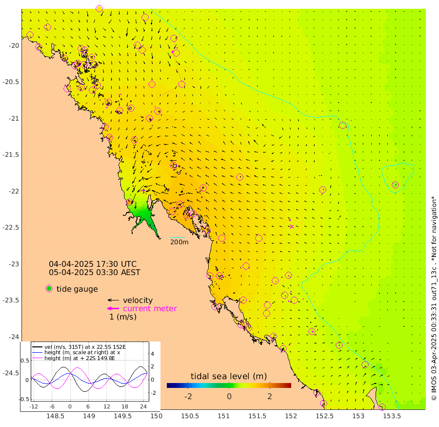 11cm/s -108T +10cm/s rms + 2cm/s 5T. Brampton I 18m 8cm/s 176T +9cm/s rms + 6cm/s 66T. Wigton I 38m 5cm/s -49T +7cm/s rms + 8cm/s 141T. Tern I 47m 9cm/s 164T +7cm/s rms + 12cm/s 54T. N Bugatti Rf 64m 21cm/s -151T +3cm/s rms + 13cm/s 178T. W Bugatti Rf 70m 3cm/s -161T +3cm/s rms + 3cm/s -130T. Creal Rf 69m 9cm/s 159T +7cm/s rms + 4cm/s 2T. North Rf 62m 7cm/s 35T +9cm/s rms + 2cm/s -56T. Cape Capricorn 26m 15cm/s 111T +5cm/s rms + 3cm/s 166T. L Musgrave I 42m 12cm/s 110T +9cm/s rms + 1cm/s -142T. Round Hill Hd 26m 3cm/s -37T +41cm/s rms + 48cm/s 116T. GBRELR 305m 17cm/s -66T +7cm/s rms + 6cm/s 123T. GBRCCH 92m 9cm/s 111T +8cm/s rms + 3cm/s -33T. GBRHIN 45m 8cm/s 101T +4cm/s rms + 2cm/s 41T. GBRHIS 46m 4cm/s 127T +16cm/s rms + 4cm/s -22T. GBROTE 59m 110cm Bell Cay 97cm Holbourne I 126cm Tern I 90cm Bugatti Rf 99cm Creal Rf 84cm White Tip I 86cm North Rf 103cm Rundle I 63cm L Musgrave I 43cm Saumarez Reef 87cm Kennedy Reef 88cm Unnamed Reef No. 2 92cm Abbot Point 95cm Bowen 97cm Tideway Reef 99cm Hayman Island 105cm Square Reef 117cm Double Bay 119cm Molle Island 95cm Cid Harbour 107cm Hook Island 94cm Border Island 95cm Haslewood Island 105cm Shute Harbour 108cm Thomas Island 118cm Credlin Reef 124cm East Repulse Island 104cm Blacksmith Island 117cm Laguna Quays 128cm Carlisle Island (Off) 122cm St. Bees Island 109cm Scawfell Island 129cm Penrith Island 134cm Mackay Outer Harbour 141cm Hay Point 140cm Prudhoe Island 153cm Middle Island (Percy Isles) 106cm Gannet Cay 67cm Elusive Reef 171cm Mcewin Islet 148cm Mumford Island 156cm Osborn Island 163cm Marquis Island 148cm Reef Point 128cm High Peak Island 139cm Port Clinton 119cm Peaked Island 86cm Karamea Bank 108cm Johnson Patch - NW 125cm Rosslyn Bay 124cm Middle Island (Keppel Isles) 136cm Port Alma 82cm Heron Island 88cm One Tree Islet 86cm Polmaise Reef 89cm Tryon Island 95cm Rock Cod Shoal 98cm Gatcombe Head 110cm Gladstone 105cm South Trees (Storm Surge) 78cm Clews Point 73cm Round Hill Head 59cm Lady Elliot Island 62cm Breaksea Spit 75cm Bundaberg (Burnett Heads) 71cm Elliot Heads 49cm Waddy Point (Fraser Island)
