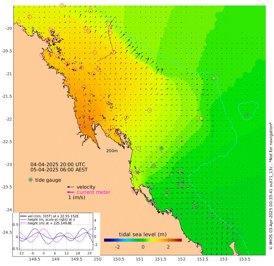 19cm/s -25T +10cm/s rms + 2cm/s 5T. Brampton I 18m 21cm/s -1T +9cm/s rms + 6cm/s 66T. Wigton I 38m 15cm/s 24T +7cm/s rms + 8cm/s 141T. Tern I 47m 29cm/s 35T +7cm/s rms + 12cm/s 54T. N Bugatti Rf 64m 15cm/s 46T +3cm/s rms + 13cm/s 178T. W Bugatti Rf 70m 10cm/s 38T +3cm/s rms + 3cm/s -130T. Creal Rf 69m 41cm/s 114T +7cm/s rms + 4cm/s 2T. North Rf 62m 32cm/s 139T +9cm/s rms + 2cm/s -56T. Cape Capricorn 26m 18cm/s 94T +5cm/s rms + 3cm/s 166T. L Musgrave I 42m 19cm/s 109T +9cm/s rms + 1cm/s -142T. Round Hill Hd 26m 3cm/s 71T +41cm/s rms + 48cm/s 116T. GBRELR 305m 10cm/s 128T +7cm/s rms + 6cm/s 123T. GBRCCH 92m 40cm/s 78T +8cm/s rms + 3cm/s -33T. GBRHIN 45m 25cm/s 91T +4cm/s rms + 2cm/s 41T. GBRHIS 46m 17cm/s 80T +16cm/s rms + 4cm/s -22T. GBROTE 59m 76cm Bell Cay 94cm Holbourne I 132cm Tern I 85cm Bugatti Rf 99cm Creal Rf 73cm White Tip I 21cm North Rf 22cm Rundle I 4cm L Musgrave I 16cm Saumarez Reef 76cm Kennedy Reef 71cm Unnamed Reef No. 2 102cm Abbot Point 108cm Bowen 116cm Tideway Reef 109cm Hayman Island 133cm Square Reef 112cm Double Bay 137cm Molle Island 122cm Cid Harbour 109cm Hook Island 119cm Border Island 121cm Haslewood Island 123cm Shute Harbour 132cm Thomas Island 138cm Credlin Reef 157cm East Repulse Island 138cm Blacksmith Island 152cm Laguna Quays 152cm Carlisle Island (Off) 150cm St. Bees Island 135cm Scawfell Island 143cm Penrith Island 155cm Mackay Outer Harbour 158cm Hay Point 150cm Prudhoe Island 112cm Middle Island (Percy Isles) 60cm Gannet Cay 33cm Elusive Reef 187cm Mcewin Islet 117cm Mumford Island 138cm Osborn Island 139cm Marquis Island 129cm Reef Point 93cm High Peak Island 63cm Port Clinton 56cm Peaked Island 18cm Karamea Bank 24cm Johnson Patch - NW 43cm Rosslyn Bay 45cm Middle Island (Keppel Isles) 50cm Port Alma 13cm Heron Island 9cm One Tree Islet 8cm Polmaise Reef 24cm Tryon Island 21cm Rock Cod Shoal 21cm Gatcombe Head 27cm Gladstone 21cm South Trees (Storm Surge) 0cm Clews Point 1cm Round Hill Head 1cm Lady Elliot Island -1cm Breaksea Spit 2cm Bundaberg (Burnett Heads) -1cm Elliot Heads -1cm Waddy Point (Fraser Island)