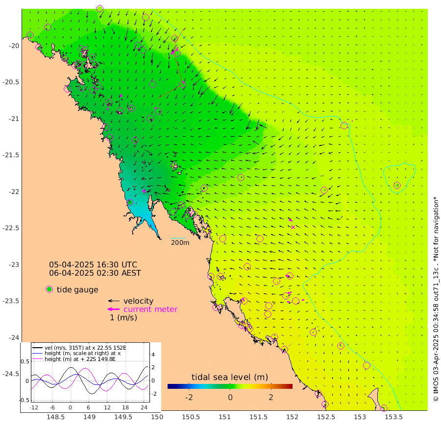 19cm/s -165T +10cm/s rms + 2cm/s 5T. Brampton I 18m 26cm/s -179T +9cm/s rms + 6cm/s 66T. Wigton I 38m 16cm/s -130T +7cm/s rms + 8cm/s 141T. Tern I 47m 32cm/s -157T +7cm/s rms + 12cm/s 54T. N Bugatti Rf 64m 38cm/s -143T +3cm/s rms + 13cm/s 178T. W Bugatti Rf 70m 15cm/s -141T +3cm/s rms + 3cm/s -130T. Creal Rf 69m 34cm/s -84T +7cm/s rms + 4cm/s 2T. North Rf 62m 32cm/s -29T +9cm/s rms + 2cm/s -56T. Cape Capricorn 26m 6cm/s -176T +5cm/s rms + 3cm/s 166T. L Musgrave I 42m 4cm/s -83T +9cm/s rms + 1cm/s -142T. Round Hill Hd 26m 6cm/s -70T +41cm/s rms + 48cm/s 116T. GBRELR 305m 29cm/s -64T +7cm/s rms + 6cm/s 123T. GBRCCH 92m 32cm/s -107T +8cm/s rms + 3cm/s -33T. GBRHIN 45m 19cm/s -93T +4cm/s rms + 2cm/s 41T. GBRHIS 46m 18cm/s -105T +16cm/s rms + 4cm/s -22T. GBROTE 59m 43cm Bell Cay 31cm Holbourne I 5cm Tern I 27cm Bugatti Rf 15cm Creal Rf 37cm White Tip I 78cm North Rf 91cm Rundle I 72cm L Musgrave I 44cm Saumarez Reef 38cm Kennedy Reef 46cm Unnamed Reef No. 2 22cm Abbot Point 18cm Bowen 8cm Tideway Reef 17cm Hayman Island 1cm Square Reef 31cm Double Bay 18cm Molle Island -3cm Cid Harbour 24cm Hook Island 2cm Border Island -5cm Haslewood Island 5cm Shute Harbour -7cm Thomas Island 1cm Credlin Reef -15cm East Repulse Island -18cm Blacksmith Island -18cm Laguna Quays -6cm Carlisle Island (Off) -17cm St. Bees Island -13cm Scawfell Island 2cm Penrith Island -10cm Mackay Outer Harbour -9cm Hay Point -2cm Prudhoe Island 42cm Middle Island (Percy Isles) 51cm Gannet Cay 58cm Elusive Reef -26cm Mcewin Islet 37cm Mumford Island 19cm Osborn Island 20cm Marquis Island 19cm Reef Point 39cm High Peak Island 80cm Port Clinton 71cm Peaked Island 81cm Karamea Bank 92cm Johnson Patch - NW 88cm Rosslyn Bay 86cm Middle Island (Keppel Isles) 88cm Port Alma 82cm Heron Island 97cm One Tree Islet 89cm Polmaise Reef 79cm Tryon Island 86cm Rock Cod Shoal 85cm Gatcombe Head 87cm Gladstone 90cm South Trees (Storm Surge) 89cm Clews Point 82cm Round Hill Head 72cm Lady Elliot Island 79cm Breaksea Spit 83cm Bundaberg (Burnett Heads) 80cm Elliot Heads 64cm Waddy Point (Fraser Island)