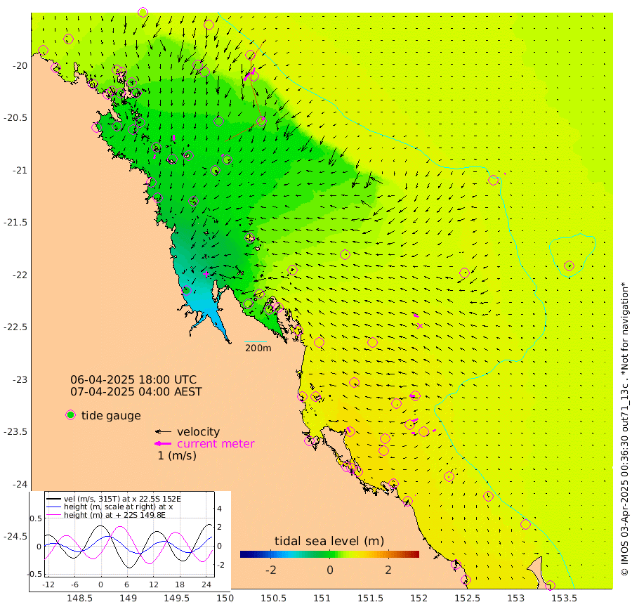 25cm/s -171T +10cm/s rms + 2cm/s 5T. Brampton I 18m 31cm/s 177T +9cm/s rms + 6cm/s 66T. Wigton I 38m 18cm/s -136T +7cm/s rms + 8cm/s 141T. Tern I 47m 43cm/s -161T +7cm/s rms + 12cm/s 54T. N Bugatti Rf 64m 55cm/s -146T +3cm/s rms + 13cm/s 178T. W Bugatti Rf 70m 19cm/s -151T +3cm/s rms + 3cm/s -130T. Creal Rf 69m 36cm/s -87T +7cm/s rms + 4cm/s 2T. North Rf 62m 34cm/s -28T +9cm/s rms + 2cm/s -56T. Cape Capricorn 26m 6cm/s -173T +5cm/s rms + 3cm/s 166T. L Musgrave I 42m 3cm/s -78T +9cm/s rms + 1cm/s -142T. Round Hill Hd 26m 5cm/s -82T +41cm/s rms + 48cm/s 116T. GBRELR 305m 33cm/s -67T +7cm/s rms + 6cm/s 123T. GBRCCH 92m 35cm/s -110T +8cm/s rms + 3cm/s -33T. GBRHIN 45m 19cm/s -95T +4cm/s rms + 2cm/s 41T. GBRHIS 46m 20cm/s -113T +16cm/s rms + 4cm/s -22T. GBROTE 59m 62cm Bell Cay 62cm Holbourne I 28cm Tern I 48cm Bugatti Rf 34cm Creal Rf 60cm White Tip I 94cm North Rf 112cm Rundle I 82cm L Musgrave I 55cm Saumarez Reef 65cm Kennedy Reef 73cm Unnamed Reef No. 2 55cm Abbot Point 50cm Bowen 35cm Tideway Reef 49cm Hayman Island 30cm Square Reef 64cm Double Bay 51cm Molle Island 22cm Cid Harbour 51cm Hook Island 26cm Border Island 19cm Haslewood Island 33cm Shute Harbour 15cm Thomas Island 26cm Credlin Reef 11cm East Repulse Island 3cm Blacksmith Island 3cm Laguna Quays 19cm Carlisle Island (Off) 4cm St. Bees Island 9cm Scawfell Island 28cm Penrith Island 10cm Mackay Outer Harbour 12cm Hay Point 22cm Prudhoe Island 61cm Middle Island (Percy Isles) 67cm Gannet Cay 73cm Elusive Reef -23cm Mcewin Islet 67cm Mumford Island 42cm Osborn Island 41cm Marquis Island 42cm Reef Point 60cm High Peak Island 102cm Port Clinton 97cm Peaked Island 97cm Karamea Bank 108cm Johnson Patch - NW 112cm Rosslyn Bay 112cm Middle Island (Keppel Isles) 112cm Port Alma 96cm Heron Island 113cm One Tree Islet 104cm Polmaise Reef 93cm Tryon Island 104cm Rock Cod Shoal 103cm Gatcombe Head 104cm Gladstone 108cm South Trees (Storm Surge) 104cm Clews Point 92cm Round Hill Head 80cm Lady Elliot Island 85cm Breaksea Spit 95cm Bundaberg (Burnett Heads) 92cm Elliot Heads 68cm Waddy Point (Fraser Island)
