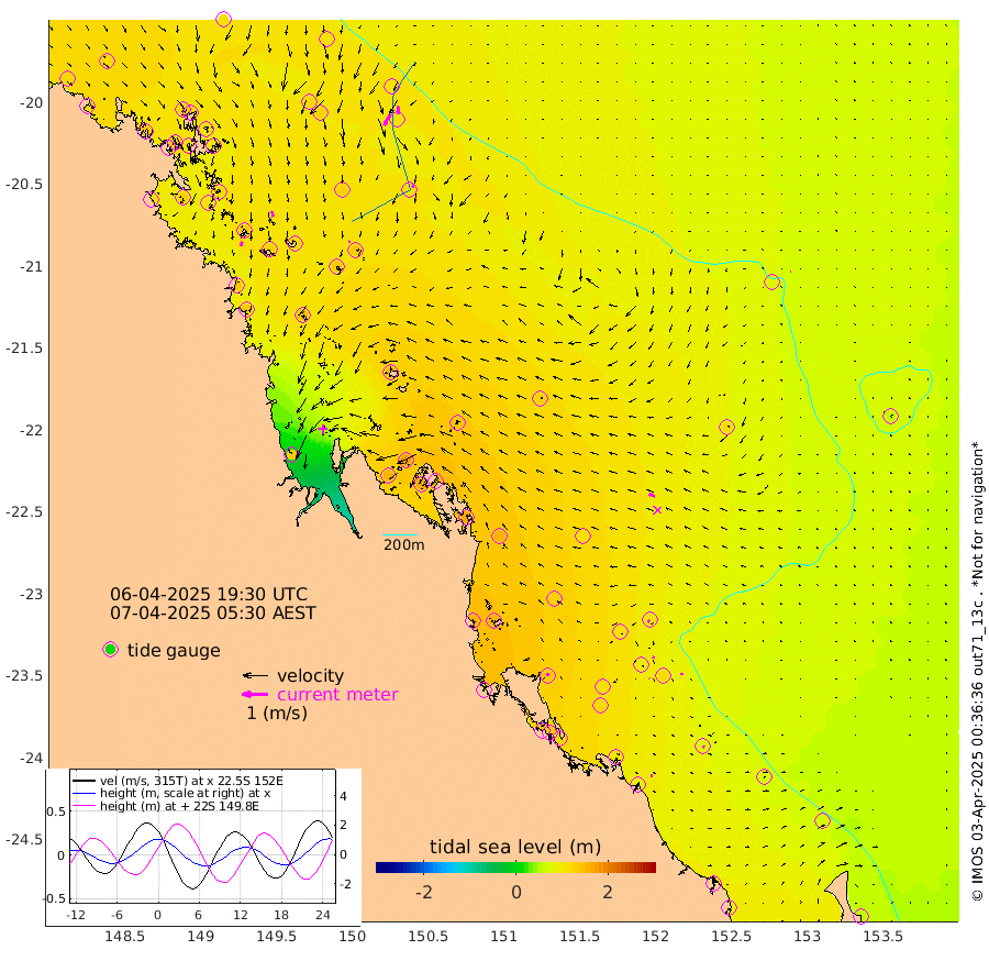 17cm/s -162T +10cm/s rms + 2cm/s 5T. Brampton I 18m 22cm/s 169T +9cm/s rms + 6cm/s 66T. Wigton I 38m 5cm/s -125T +7cm/s rms + 8cm/s 141T. Tern I 47m 30cm/s -175T +7cm/s rms + 12cm/s 54T. N Bugatti Rf 64m 49cm/s -152T +3cm/s rms + 13cm/s 178T. W Bugatti Rf 70m 14cm/s -176T +3cm/s rms + 3cm/s -130T. Creal Rf 69m 11cm/s -142T +7cm/s rms + 4cm/s 2T. North Rf 62m 13cm/s -1T +9cm/s rms + 2cm/s -56T. Cape Capricorn 26m 9cm/s 124T +5cm/s rms + 3cm/s 166T. L Musgrave I 42m 9cm/s 110T +9cm/s rms + 1cm/s -142T. Round Hill Hd 26m 2cm/s -96T +41cm/s rms + 48cm/s 116T. GBRELR 305m 24cm/s -71T +7cm/s rms + 6cm/s 123T. GBRCCH 92m 9cm/s -164T +8cm/s rms + 3cm/s -33T. GBRHIN 45m 2cm/s 145T +4cm/s rms + 2cm/s 41T. GBRHIS 46m 8cm/s -168T +16cm/s rms + 4cm/s -22T. GBROTE 59m 125cm Bell Cay 122cm Holbourne I 135cm Tern I 105cm Bugatti Rf 109cm Creal Rf 103cm White Tip I 107cm North Rf 132cm Rundle I 79cm L Musgrave I 66cm Saumarez Reef 108cm Kennedy Reef 112cm Unnamed Reef No. 2 119cm Abbot Point 119cm Bowen 114cm Tideway Reef 122cm Hayman Island 126cm Square Reef 139cm Double Bay 134cm Molle Island 108cm Cid Harbour 122cm Hook Island 105cm Border Island 105cm Haslewood Island 119cm Shute Harbour 113cm Thomas Island 129cm Credlin Reef 126cm East Repulse Island 106cm Blacksmith Island 116cm Laguna Quays 132cm Carlisle Island (Off) 126cm St. Bees Island 114cm Scawfell Island 139cm Penrith Island 132cm Mackay Outer Harbour 139cm Hay Point 149cm Prudhoe Island 159cm Middle Island (Percy Isles) 115cm Gannet Cay 81cm Elusive Reef 124cm Mcewin Islet 171cm Mumford Island 158cm Osborn Island 162cm Marquis Island 151cm Reef Point 140cm High Peak Island 160cm Port Clinton 155cm Peaked Island 109cm Karamea Bank 130cm Johnson Patch - NW 152cm Rosslyn Bay 156cm Middle Island (Keppel Isles) 162cm Port Alma 102cm Heron Island 114cm One Tree Islet 111cm Polmaise Reef 106cm Tryon Island 118cm Rock Cod Shoal 121cm Gatcombe Head 132cm Gladstone 128cm South Trees (Storm Surge) 102cm Clews Point 91cm Round Hill Head 74cm Lady Elliot Island 73cm Breaksea Spit 95cm Bundaberg (Burnett Heads) 92cm Elliot Heads 58cm Waddy Point (Fraser Island)
