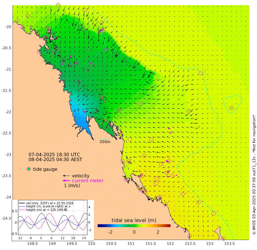 31cm/s -179T +10cm/s rms + 2cm/s 5T. Brampton I 18m 38cm/s 177T +9cm/s rms + 6cm/s 66T. Wigton I 38m 24cm/s -142T +7cm/s rms + 8cm/s 141T. Tern I 47m 54cm/s -159T +7cm/s rms + 12cm/s 54T. N Bugatti Rf 64m 65cm/s -146T +3cm/s rms + 13cm/s 178T. W Bugatti Rf 70m 24cm/s -152T +3cm/s rms + 3cm/s -130T. Creal Rf 69m 47cm/s -83T +7cm/s rms + 4cm/s 2T. North Rf 62m 42cm/s -31T +9cm/s rms + 2cm/s -56T. Cape Capricorn 26m 8cm/s -131T +5cm/s rms + 3cm/s 166T. L Musgrave I 42m 8cm/s -73T +9cm/s rms + 1cm/s -142T. Round Hill Hd 26m 6cm/s -92T +41cm/s rms + 48cm/s 116T. GBRELR 305m 36cm/s -68T +7cm/s rms + 6cm/s 123T. GBRCCH 92m 46cm/s -108T +8cm/s rms + 3cm/s -33T. GBRHIN 45m 27cm/s -94T +4cm/s rms + 2cm/s 41T. GBRHIS 46m 26cm/s -112T +16cm/s rms + 4cm/s -22T. GBROTE 59m 42cm Bell Cay 48cm Holbourne I -5cm Tern I 32cm Bugatti Rf 11cm Creal Rf 50cm White Tip I 90cm North Rf 107cm Rundle I 82cm L Musgrave I 56cm Saumarez Reef 56cm Kennedy Reef 65cm Unnamed Reef No. 2 43cm Abbot Point 36cm Bowen 15cm Tideway Reef 32cm Hayman Island 6cm Square Reef 42cm Double Bay 28cm Molle Island 1cm Cid Harbour 29cm Hook Island 4cm Border Island -5cm Haslewood Island 9cm Shute Harbour -16cm Thomas Island -5cm Credlin Reef -25cm East Repulse Island -28cm Blacksmith Island -34cm Laguna Quays -17cm Carlisle Island (Off) -36cm St. Bees Island -23cm Scawfell Island -5cm Penrith Island -32cm Mackay Outer Harbour -32cm Hay Point -21cm Prudhoe Island 24cm Middle Island (Percy Isles) 49cm Gannet Cay 70cm Elusive Reef -92cm Mcewin Islet 37cm Mumford Island 4cm Osborn Island -2cm Marquis Island 6cm Reef Point 33cm High Peak Island 81cm Port Clinton 83cm Peaked Island 94cm Karamea Bank 99cm Johnson Patch - NW 100cm Rosslyn Bay 101cm Middle Island (Keppel Isles) 96cm Port Alma 94cm Heron Island 113cm One Tree Islet 103cm Polmaise Reef 88cm Tryon Island 100cm Rock Cod Shoal 97cm Gatcombe Head 94cm Gladstone 101cm South Trees (Storm Surge) 105cm Clews Point 92cm Round Hill Head 81cm Lady Elliot Island 86cm Breaksea Spit 94cm Bundaberg (Burnett Heads) 93cm Elliot Heads 68cm Waddy Point (Fraser Island)