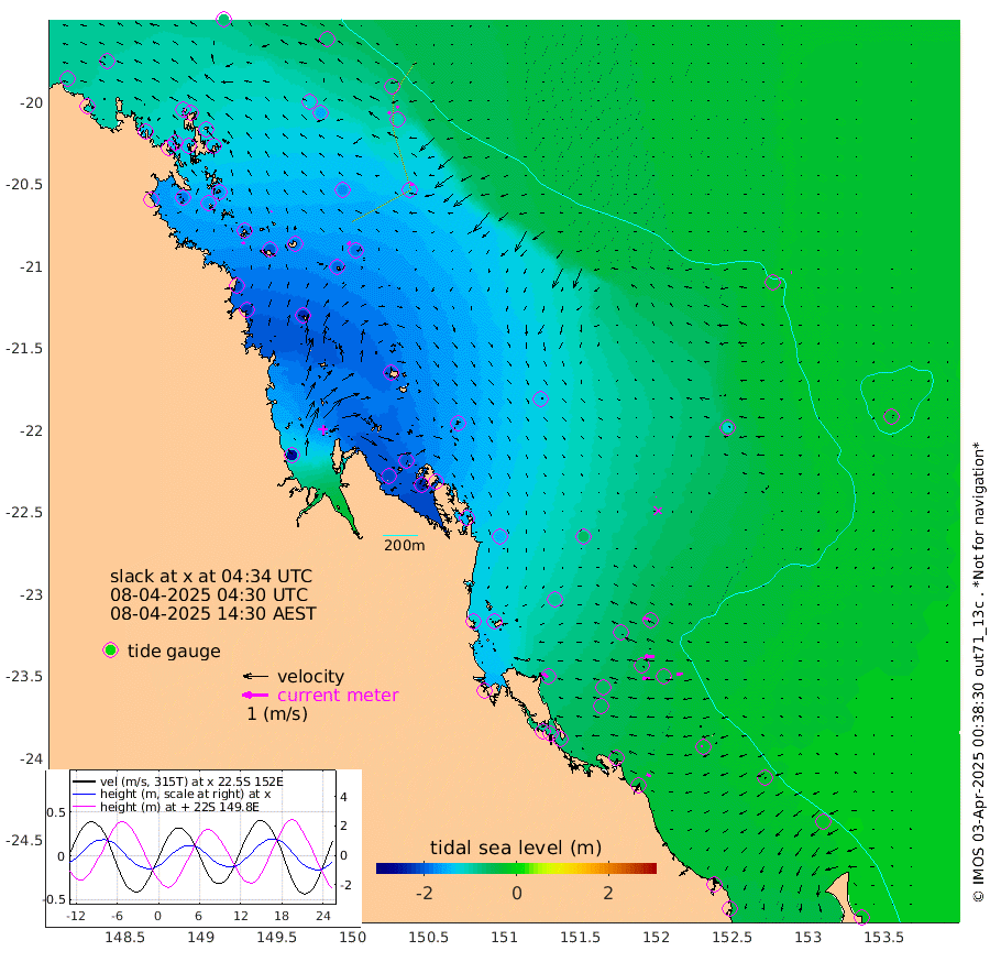 10cm/s 144T +10cm/s rms + 2cm/s 5T. Brampton I 18m 4cm/s -111T +9cm/s rms + 6cm/s 66T. Wigton I 38m 16cm/s -146T +7cm/s rms + 8cm/s 141T. Tern I 47m 10cm/s -110T +7cm/s rms + 12cm/s 54T. N Bugatti Rf 64m 10cm/s -41T +3cm/s rms + 13cm/s 178T. W Bugatti Rf 70m 13cm/s -105T +3cm/s rms + 3cm/s -130T. Creal Rf 69m 29cm/s -66T +7cm/s rms + 4cm/s 2T. North Rf 62m 24cm/s -54T +9cm/s rms + 2cm/s -56T. Cape Capricorn 26m 7cm/s -82T +5cm/s rms + 3cm/s 166T. L Musgrave I 42m 18cm/s -72T +9cm/s rms + 1cm/s -142T. Round Hill Hd 26m 3cm/s -105T +41cm/s rms + 48cm/s 116T. GBRELR 305m 1cm/s 155T +7cm/s rms + 6cm/s 123T. GBRCCH 92m 39cm/s -87T +8cm/s rms + 3cm/s -33T. GBRHIN 45m 27cm/s -89T +4cm/s rms + 2cm/s 41T. GBRHIS 46m 23cm/s -97T +16cm/s rms + 4cm/s -22T. GBROTE 59m -132cm Bell Cay -99cm Holbourne I -187cm Tern I -104cm Bugatti Rf -137cm Creal Rf -83cm White Tip I -62cm North Rf -80cm Rundle I -31cm L Musgrave I -35cm Saumarez Reef -73cm Kennedy Reef -74cm Unnamed Reef No. 2 -101cm Abbot Point -110cm Bowen -127cm Tideway Reef -120cm Hayman Island -158cm Square Reef -135cm Double Bay -137cm Molle Island -137cm Cid Harbour -120cm Hook Island -122cm Border Island -136cm Haslewood Island -140cm Shute Harbour -165cm Thomas Island -173cm Credlin Reef -183cm East Repulse Island -167cm Blacksmith Island -184cm Laguna Quays -184cm Carlisle Island (Off) -203cm St. Bees Island -179cm Scawfell Island -193cm Penrith Island -209cm Mackay Outer Harbour -222cm Hay Point -229cm Prudhoe Island -203cm Middle Island (Percy Isles) -113cm Gannet Cay -33cm Elusive Reef -255cm Mcewin Islet -206cm Mumford Island -215cm Osborn Island -227cm Marquis Island -205cm Reef Point -164cm High Peak Island -145cm Port Clinton -141cm Peaked Island -60cm Karamea Bank -93cm Johnson Patch - NW -117cm Rosslyn Bay -121cm Middle Island (Keppel Isles) -134cm Port Alma -54cm Heron Island -51cm One Tree Islet -60cm Polmaise Reef -67cm Tryon Island -65cm Rock Cod Shoal -78cm Gatcombe Head -93cm Gladstone -82cm South Trees (Storm Surge) -42cm Clews Point -39cm Round Hill Head -27cm Lady Elliot Island -20cm Breaksea Spit -39cm Bundaberg (Burnett Heads) -40cm Elliot Heads -20cm Waddy Point (Fraser Island)