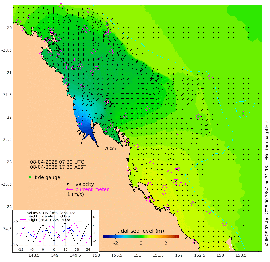 38cm/s 172T +10cm/s rms + 2cm/s 5T. Brampton I 18m 43cm/s 170T +9cm/s rms + 6cm/s 66T. Wigton I 38m 20cm/s -157T +7cm/s rms + 8cm/s 141T. Tern I 47m 63cm/s -164T +7cm/s rms + 12cm/s 54T. N Bugatti Rf 64m 74cm/s -149T +3cm/s rms + 13cm/s 178T. W Bugatti Rf 70m 26cm/s -163T +3cm/s rms + 3cm/s -130T. Creal Rf 69m 39cm/s -76T +7cm/s rms + 4cm/s 2T. North Rf 62m 41cm/s -31T +9cm/s rms + 2cm/s -56T. Cape Capricorn 26m 8cm/s -95T +5cm/s rms + 3cm/s 166T. L Musgrave I 42m 12cm/s -69T +9cm/s rms + 1cm/s -142T. Round Hill Hd 26m 5cm/s -143T +41cm/s rms + 48cm/s 116T. GBRELR 305m 27cm/s -70T +7cm/s rms + 6cm/s 123T. GBRCCH 92m 45cm/s -112T +8cm/s rms + 3cm/s -33T. GBRHIN 45m 23cm/s -93T +4cm/s rms + 2cm/s 41T. GBRHIS 46m 21cm/s -136T +16cm/s rms + 4cm/s -22T. GBROTE 59m 22cm Bell Cay 20cm Holbourne I -17cm Tern I 4cm Bugatti Rf -11cm Creal Rf 16cm White Tip I 55cm North Rf 77cm Rundle I 45cm L Musgrave I 26cm Saumarez Reef 38cm Kennedy Reef 33cm Unnamed Reef No. 2 19cm Abbot Point 12cm Bowen -8cm Tideway Reef 11cm Hayman Island -20cm Square Reef 10cm Double Bay -15cm Molle Island -17cm Cid Harbour 2cm Hook Island -18cm Border Island -26cm Haslewood Island -12cm Shute Harbour -31cm Thomas Island -22cm Credlin Reef -38cm East Repulse Island -41cm Blacksmith Island -51cm Laguna Quays -35cm Carlisle Island (Off) -45cm St. Bees Island -42cm Scawfell Island -25cm Penrith Island -46cm Mackay Outer Harbour -44cm Hay Point -34cm Prudhoe Island 5cm Middle Island (Percy Isles) 27cm Gannet Cay 31cm Elusive Reef -99cm Mcewin Islet 27cm Mumford Island 0cm Osborn Island -8cm Marquis Island 2cm Reef Point 18cm High Peak Island 58cm Port Clinton 66cm Peaked Island 63cm Karamea Bank 63cm Johnson Patch - NW 76cm Rosslyn Bay 78cm Middle Island (Keppel Isles) 77cm Port Alma 55cm Heron Island 70cm One Tree Islet 71cm Polmaise Reef 54cm Tryon Island 68cm Rock Cod Shoal 67cm Gatcombe Head 70cm Gladstone 74cm South Trees (Storm Surge) 74cm Clews Point 58cm Round Hill Head 42cm Lady Elliot Island 43cm Breaksea Spit 63cm Bundaberg (Burnett Heads) 62cm Elliot Heads 28cm Waddy Point (Fraser Island)