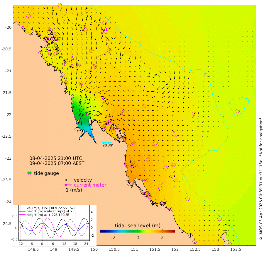 24cm/s -180T +10cm/s rms + 2cm/s 5T. Brampton I 18m 35cm/s 166T +9cm/s rms + 6cm/s 66T. Wigton I 38m 7cm/s -159T +7cm/s rms + 8cm/s 141T. Tern I 47m 42cm/s -172T +7cm/s rms + 12cm/s 54T. N Bugatti Rf 64m 64cm/s -153T +3cm/s rms + 13cm/s 178T. W Bugatti Rf 70m 21cm/s 174T +3cm/s rms + 3cm/s -130T. Creal Rf 69m 13cm/s -126T +7cm/s rms + 4cm/s 2T. North Rf 62m 17cm/s -6T +9cm/s rms + 2cm/s -56T. Cape Capricorn 26m 4cm/s 161T +5cm/s rms + 3cm/s 166T. L Musgrave I 42m 8cm/s 110T +9cm/s rms + 1cm/s -142T. Round Hill Hd 26m 2cm/s -149T +41cm/s rms + 48cm/s 116T. GBRELR 305m 26cm/s -73T +7cm/s rms + 6cm/s 123T. GBRCCH 92m 12cm/s -164T +8cm/s rms + 3cm/s -33T. GBRHIN 45m 3cm/s 135T +4cm/s rms + 2cm/s 41T. GBRHIS 46m 10cm/s 177T +16cm/s rms + 4cm/s -22T. GBROTE 59m 143cm Bell Cay 127cm Holbourne I 150cm Tern I 111cm Bugatti Rf 121cm Creal Rf 107cm White Tip I 121cm North Rf 153cm Rundle I 87cm L Musgrave I 79cm Saumarez Reef 112cm Kennedy Reef 114cm Unnamed Reef No. 2 124cm Abbot Point 123cm Bowen 118cm Tideway Reef 128cm Hayman Island 140cm Square Reef 142cm Double Bay 131cm Molle Island 116cm Cid Harbour 124cm Hook Island 108cm Border Island 110cm Haslewood Island 124cm Shute Harbour 121cm Thomas Island 139cm Credlin Reef 126cm East Repulse Island 114cm Blacksmith Island 121cm Laguna Quays 137cm Carlisle Island (Off) 138cm St. Bees Island 126cm Scawfell Island 153cm Penrith Island 142cm Mackay Outer Harbour 151cm Hay Point 170cm Prudhoe Island 184cm Middle Island (Percy Isles) 130cm Gannet Cay 79cm Elusive Reef 120cm Mcewin Islet 205cm Mumford Island 180cm Osborn Island 184cm Marquis Island 171cm Reef Point 161cm High Peak Island 185cm Port Clinton 189cm Peaked Island 122cm Karamea Bank 154cm Johnson Patch - NW 178cm Rosslyn Bay 184cm Middle Island (Keppel Isles) 192cm Port Alma 116cm Heron Island 131cm One Tree Islet 131cm Polmaise Reef 119cm Tryon Island 131cm Rock Cod Shoal 141cm Gatcombe Head 155cm Gladstone 150cm South Trees (Storm Surge) 118cm Clews Point 104cm Round Hill Head 82cm Lady Elliot Island 76cm Breaksea Spit 110cm Bundaberg (Burnett Heads) 111cm Elliot Heads 60cm Waddy Point (Fraser Island)