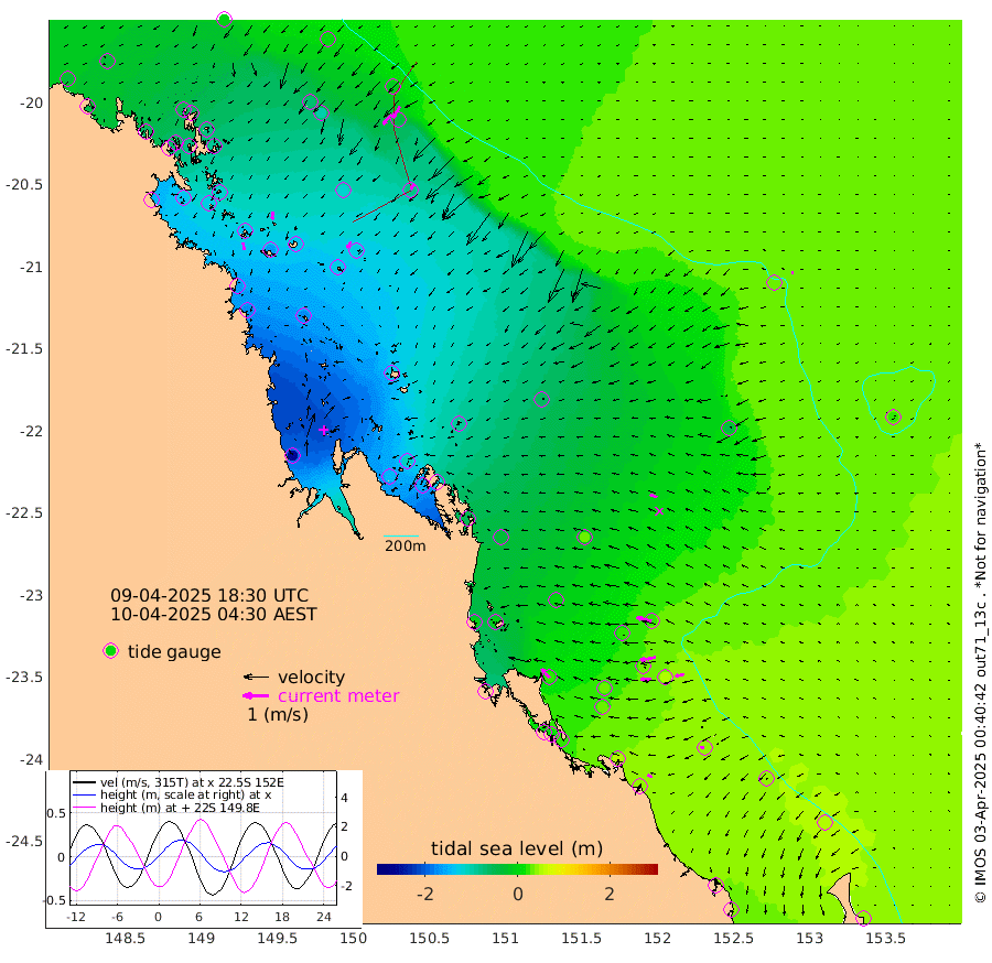 29cm/s 171T +10cm/s rms + 2cm/s 5T. Brampton I 18m 31cm/s -178T +9cm/s rms + 6cm/s 66T. Wigton I 38m 29cm/s -147T +7cm/s rms + 8cm/s 141T. Tern I 47m 51cm/s -150T +7cm/s rms + 12cm/s 54T. N Bugatti Rf 64m 49cm/s -141T +3cm/s rms + 13cm/s 178T. W Bugatti Rf 70m 25cm/s -141T +3cm/s rms + 3cm/s -130T. Creal Rf 69m 59cm/s -76T +7cm/s rms + 4cm/s 2T. North Rf 62m 46cm/s -40T +9cm/s rms + 2cm/s -56T. Cape Capricorn 26m 14cm/s -99T +5cm/s rms + 3cm/s 166T. L Musgrave I 42m 19cm/s -70T +9cm/s rms + 1cm/s -142T. Round Hill Hd 26m 7cm/s -99T +41cm/s rms + 48cm/s 116T. GBRELR 305m 29cm/s -68T +7cm/s rms + 6cm/s 123T. GBRCCH 92m 62cm/s -100T +8cm/s rms + 3cm/s -33T. GBRHIN 45m 40cm/s -92T +4cm/s rms + 2cm/s 41T. GBRHIS 46m 35cm/s -104T +16cm/s rms + 4cm/s -22T. GBROTE 59m -59cm Bell Cay -32cm Holbourne I -131cm Tern I -43cm Bugatti Rf -83cm Creal Rf -14cm White Tip I 27cm North Rf 26cm Rundle I 42cm L Musgrave I 22cm Saumarez Reef -7cm Kennedy Reef 3cm Unnamed Reef No. 2 -29cm Abbot Point -40cm Bowen -70cm Tideway Reef -50cm Hayman Island -95cm Square Reef -60cm Double Bay -62cm Molle Island -80cm Cid Harbour -63cm Hook Island -75cm Border Island -88cm Haslewood Island -83cm Shute Harbour -118cm Thomas Island -116cm Credlin Reef -137cm East Repulse Island -124cm Blacksmith Island -147cm Laguna Quays -135cm Carlisle Island (Off) -164cm St. Bees Island -131cm Scawfell Island -127cm Penrith Island -165cm Mackay Outer Harbour -174cm Hay Point -174cm Prudhoe Island -128cm Middle Island (Percy Isles) -43cm Gannet Cay 32cm Elusive Reef -262cm Mcewin Islet -111cm Mumford Island -142cm Osborn Island -158cm Marquis Island -130cm Reef Point -86cm High Peak Island -47cm Port Clinton -35cm Peaked Island 31cm Karamea Bank 9cm Johnson Patch - NW -6cm Rosslyn Bay -5cm Middle Island (Keppel Isles) -23cm Port Alma 35cm Heron Island 49cm One Tree Islet 37cm Polmaise Reef 26cm Tryon Island 34cm Rock Cod Shoal 20cm Gatcombe Head 3cm Gladstone 17cm South Trees (Storm Surge) 51cm Clews Point 42cm Round Hill Head 44cm Lady Elliot Island 53cm Breaksea Spit 42cm Bundaberg (Burnett Heads) 44cm Elliot Heads 41cm Waddy Point (Fraser Island)