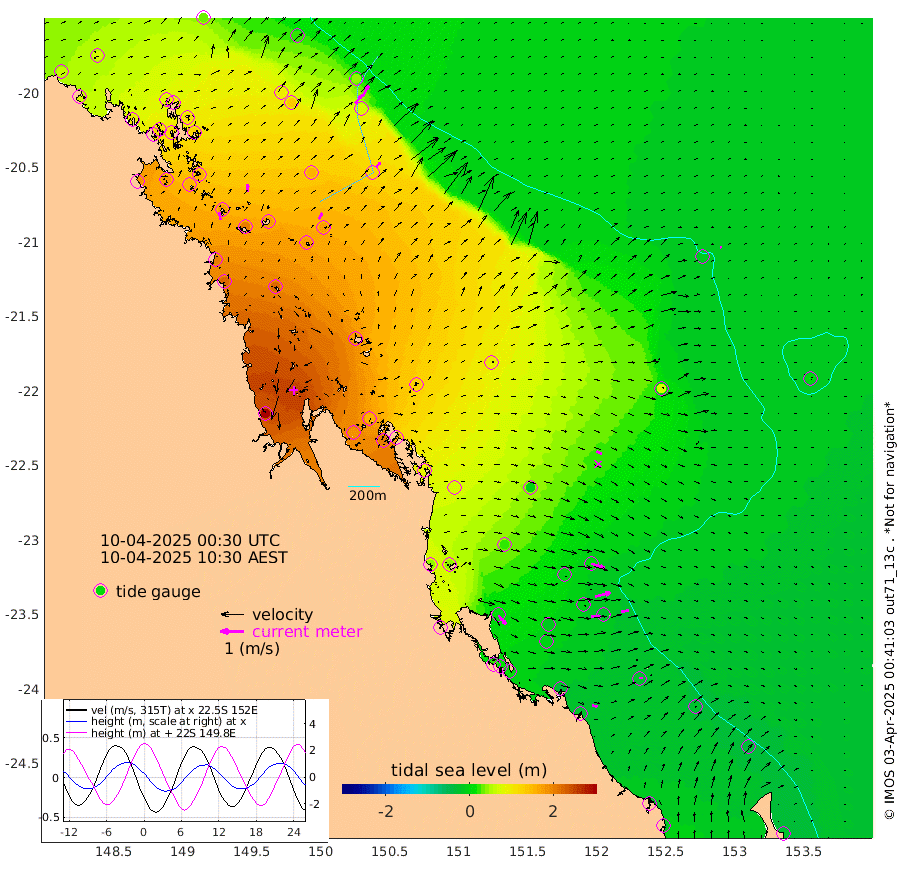 30cm/s -10T +10cm/s rms + 2cm/s 5T. Brampton I 18m 30cm/s 2T +9cm/s rms + 6cm/s 66T. Wigton I 38m 30cm/s 32T +7cm/s rms + 8cm/s 141T. Tern I 47m 53cm/s 28T +7cm/s rms + 12cm/s 54T. N Bugatti Rf 64m 47cm/s 39T +3cm/s rms + 13cm/s 178T. W Bugatti Rf 70m 25cm/s 42T +3cm/s rms + 3cm/s -130T. Creal Rf 69m 61cm/s 108T +7cm/s rms + 4cm/s 2T. North Rf 62m 50cm/s 140T +9cm/s rms + 2cm/s -56T. Cape Capricorn 26m 14cm/s 86T +5cm/s rms + 3cm/s 166T. L Musgrave I 42m 24cm/s 109T +9cm/s rms + 1cm/s -142T. Round Hill Hd 26m 7cm/s 72T +41cm/s rms + 48cm/s 116T. GBRELR 305m 26cm/s 113T +7cm/s rms + 6cm/s 123T. GBRCCH 92m 67cm/s 77T +8cm/s rms + 3cm/s -33T. GBRHIN 45m 42cm/s 90T +4cm/s rms + 2cm/s 41T. GBRHIS 46m 34cm/s 79T +16cm/s rms + 4cm/s -22T. GBROTE 59m 93cm Bell Cay 67cm Holbourne I 169cm Tern I 74cm Bugatti Rf 116cm Creal Rf 44cm White Tip I 1cm North Rf 6cm Rundle I -20cm L Musgrave I 0cm Saumarez Reef 30cm Kennedy Reef 25cm Unnamed Reef No. 2 62cm Abbot Point 74cm Bowen 103cm Tideway Reef 83cm Hayman Island 137cm Square Reef 101cm Double Bay 108cm Molle Island 113cm Cid Harbour 96cm Hook Island 108cm Border Island 124cm Haslewood Island 118cm Shute Harbour 152cm Thomas Island 153cm Credlin Reef 171cm East Repulse Island 158cm Blacksmith Island 185cm Laguna Quays 174cm Carlisle Island (Off) 199cm St. Bees Island 170cm Scawfell Island 171cm Penrith Island 206cm Mackay Outer Harbour 216cm Hay Point 220cm Prudhoe Island 174cm Middle Island (Percy Isles) 74cm Gannet Cay -11cm Elusive Reef 301cm Mcewin Islet 155cm Mumford Island 180cm Osborn Island 199cm Marquis Island 167cm Reef Point 123cm High Peak Island 85cm Port Clinton 70cm Peaked Island -7cm Karamea Bank 25cm Johnson Patch - NW 40cm Rosslyn Bay 40cm Middle Island (Keppel Isles) 59cm Port Alma -8cm Heron Island -20cm One Tree Islet -10cm Polmaise Reef -2cm Tryon Island -7cm Rock Cod Shoal 10cm Gatcombe Head 27cm Gladstone 13cm South Trees (Storm Surge) -29cm Clews Point -20cm Round Hill Head -23cm Lady Elliot Island -34cm Breaksea Spit -18cm Bundaberg (Burnett Heads) -19cm Elliot Heads -24cm Waddy Point (Fraser Island)