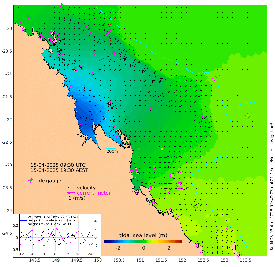30cm/s 168T +10cm/s rms + 2cm/s 5T. Brampton I 18m 32cm/s 175T +9cm/s rms + 6cm/s 66T. Wigton I 38m 21cm/s -153T +7cm/s rms + 8cm/s 141T. Tern I 47m 47cm/s -158T +7cm/s rms + 12cm/s 54T. N Bugatti Rf 64m 52cm/s -146T +3cm/s rms + 13cm/s 178T. W Bugatti Rf 70m 22cm/s -163T +3cm/s rms + 3cm/s -130T. Creal Rf 69m 53cm/s -76T +7cm/s rms + 4cm/s 2T. North Rf 62m 41cm/s -38T +9cm/s rms + 2cm/s -56T. Cape Capricorn 26m 20cm/s -98T +5cm/s rms + 3cm/s 166T. L Musgrave I 42m 17cm/s -78T +9cm/s rms + 1cm/s -142T. Round Hill Hd 26m 6cm/s -123T +41cm/s rms + 48cm/s 116T. GBRELR 305m 31cm/s -67T +7cm/s rms + 6cm/s 123T. GBRCCH 92m 58cm/s -102T +8cm/s rms + 3cm/s -33T. GBRHIN 45m 35cm/s -92T +4cm/s rms + 2cm/s 41T. GBRHIS 46m 31cm/s -112T +16cm/s rms + 4cm/s -22T. GBROTE 59m -28cm Bell Cay -24cm Holbourne I -84cm Tern I -24cm Bugatti Rf -51cm Creal Rf -4cm White Tip I 38cm North Rf 43cm Rundle I 45cm L Musgrave I 41cm Saumarez Reef -9cm Kennedy Reef 10cm Unnamed Reef No. 2 -11cm Abbot Point -20cm Bowen -41cm Tideway Reef -25cm Hayman Island -56cm Square Reef -38cm Double Bay -62cm Molle Island -45cm Cid Harbour -45cm Hook Island -49cm Border Island -52cm Haslewood Island -53cm Shute Harbour -78cm Thomas Island -64cm Credlin Reef -81cm East Repulse Island -80cm Blacksmith Island -105cm Laguna Quays -82cm Carlisle Island (Off) -83cm St. Bees Island -75cm Scawfell Island -84cm Penrith Island -115cm Mackay Outer Harbour -120cm Hay Point -116cm Prudhoe Island -98cm Middle Island (Percy Isles) -26cm Gannet Cay 29cm Elusive Reef -216cm Mcewin Islet -66cm Mumford Island -90cm Osborn Island -92cm Marquis Island -75cm Reef Point -46cm High Peak Island -20cm Port Clinton 13cm Peaked Island 47cm Karamea Bank 20cm Johnson Patch - NW 22cm Rosslyn Bay 30cm Middle Island (Keppel Isles) 10cm Port Alma 44cm Heron Island 50cm One Tree Islet 45cm Polmaise Reef 39cm Tryon Island 53cm Rock Cod Shoal 31cm Gatcombe Head 23cm Gladstone 33cm South Trees (Storm Surge) 54cm Clews Point 48cm Round Hill Head 47cm Lady Elliot Island 46cm Breaksea Spit 45cm Bundaberg (Burnett Heads) 52cm Elliot Heads 41cm Waddy Point (Fraser Island)