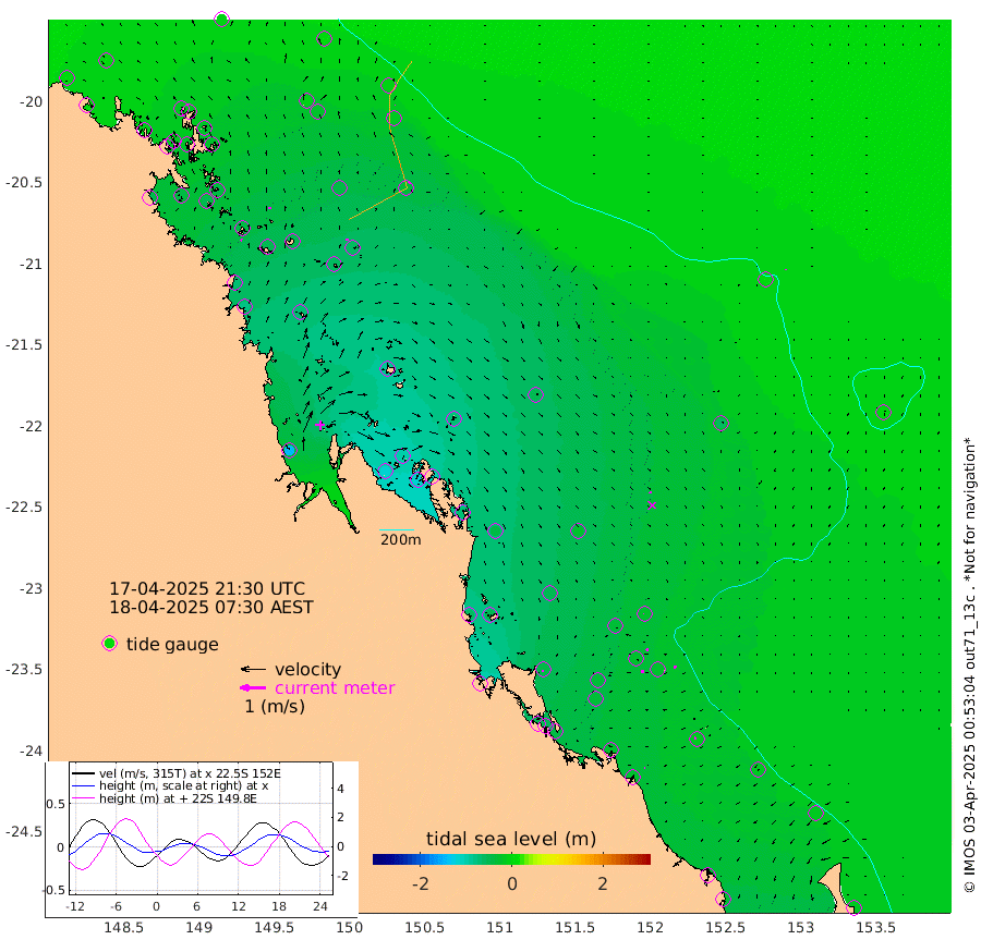 7cm/s 109T +10cm/s rms + 2cm/s 5T. Brampton I 18m 6cm/s 3T +9cm/s rms + 6cm/s 66T. Wigton I 38m 7cm/s -168T +7cm/s rms + 8cm/s 141T. Tern I 47m 1cm/s -26T +7cm/s rms + 12cm/s 54T. N Bugatti Rf 64m 2cm/s -176T +3cm/s rms + 13cm/s 178T. W Bugatti Rf 70m 5cm/s -143T +3cm/s rms + 3cm/s -130T. Creal Rf 69m 1cm/s -164T +7cm/s rms + 4cm/s 2T. North Rf 62m 5cm/s -150T +9cm/s rms + 2cm/s -56T. Cape Capricorn 26m 7cm/s -76T +5cm/s rms + 3cm/s 166T. L Musgrave I 42m 2cm/s -115T +9cm/s rms + 1cm/s -142T. Round Hill Hd 26m 3cm/s 145T +41cm/s rms + 48cm/s 116T. GBRELR 305m 7cm/s 162T +7cm/s rms + 6cm/s 123T. GBRCCH 92m 10cm/s -78T +8cm/s rms + 3cm/s -33T. GBRHIN 45m 9cm/s -98T +4cm/s rms + 2cm/s 41T. GBRHIS 46m 11cm/s -112T +16cm/s rms + 4cm/s -22T. GBROTE 59m -52cm Bell Cay 0cm Holbourne I -61cm Tern I -16cm Bugatti Rf -35cm Creal Rf -4cm White Tip I -27cm North Rf -39cm Rundle I -16cm L Musgrave I 9cm Saumarez Reef -1cm Kennedy Reef 5cm Unnamed Reef No. 2 7cm Abbot Point 1cm Bowen -9cm Tideway Reef -12cm Hayman Island -19cm Square Reef -2cm Double Bay -16cm Molle Island -25cm Cid Harbour -9cm Hook Island -22cm Border Island -21cm Haslewood Island -21cm Shute Harbour -39cm Thomas Island -41cm Credlin Reef -43cm East Repulse Island -50cm Blacksmith Island -49cm Laguna Quays -45cm Carlisle Island (Off) -47cm St. Bees Island -54cm Scawfell Island -64cm Penrith Island -72cm Mackay Outer Harbour -81cm Hay Point -70cm Prudhoe Island -93cm Middle Island (Percy Isles) -57cm Gannet Cay 2cm Elusive Reef -145cm Mcewin Islet -94cm Mumford Island -116cm Osborn Island -120cm Marquis Island -104cm Reef Point -70cm High Peak Island -66cm Port Clinton -46cm Peaked Island -23cm Karamea Bank -49cm Johnson Patch - NW -58cm Rosslyn Bay -51cm Middle Island (Keppel Isles) -71cm Port Alma -26cm Heron Island -27cm One Tree Islet -34cm Polmaise Reef -37cm Tryon Island -28cm Rock Cod Shoal -43cm Gatcombe Head -55cm Gladstone -48cm South Trees (Storm Surge) -28cm Clews Point -27cm Round Hill Head -12cm Lady Elliot Island -16cm Breaksea Spit -24cm Bundaberg (Burnett Heads) -26cm Elliot Heads -14cm Waddy Point (Fraser Island)