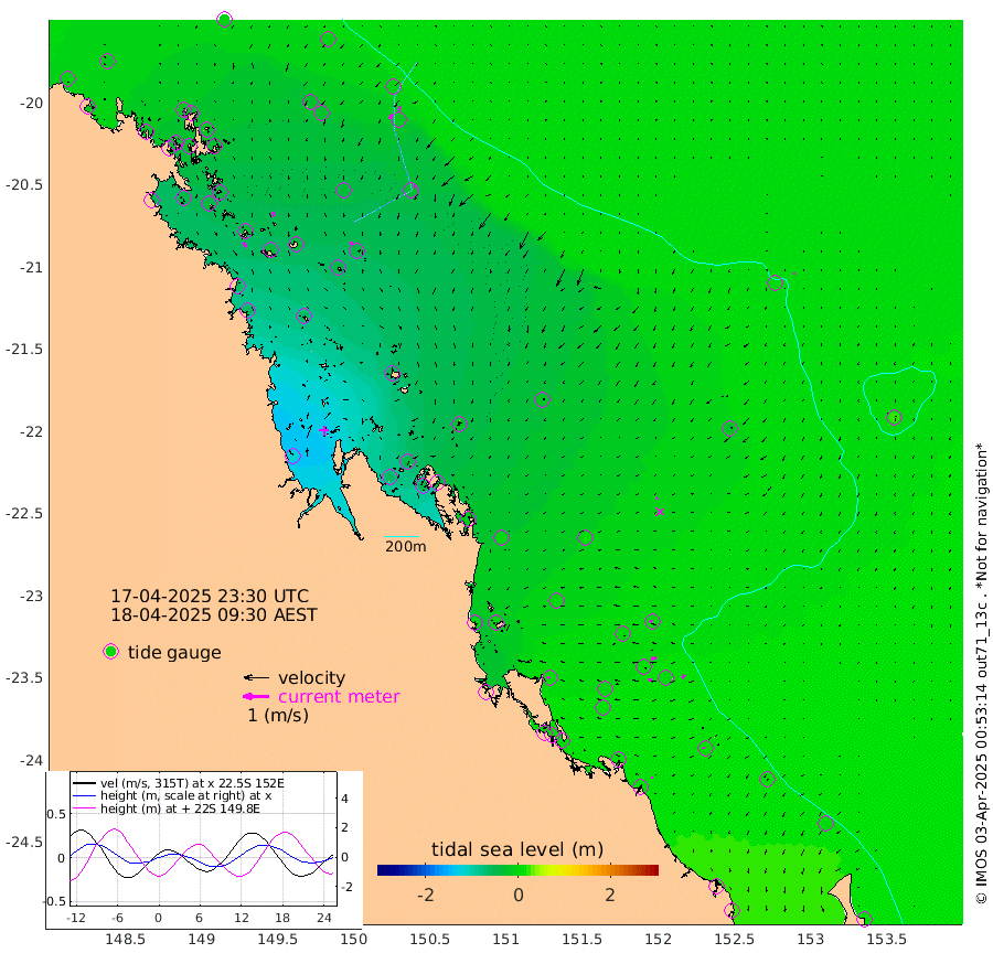 20cm/s 148T +10cm/s rms + 2cm/s 5T. Brampton I 18m 18cm/s 165T +9cm/s rms + 6cm/s 66T. Wigton I 38m 12cm/s -174T +7cm/s rms + 8cm/s 141T. Tern I 47m 16cm/s -161T +7cm/s rms + 12cm/s 54T. N Bugatti Rf 64m 18cm/s -152T +3cm/s rms + 13cm/s 178T. W Bugatti Rf 70m 14cm/s -177T +3cm/s rms + 3cm/s -130T. Creal Rf 69m 11cm/s -74T +7cm/s rms + 4cm/s 2T. North Rf 62m 12cm/s -53T +9cm/s rms + 2cm/s -56T. Cape Capricorn 26m 9cm/s -81T +5cm/s rms + 3cm/s 166T. L Musgrave I 42m 5cm/s -81T +9cm/s rms + 1cm/s -142T. Round Hill Hd 26m 4cm/s 163T +41cm/s rms + 48cm/s 116T. GBRELR 305m 7cm/s -115T +7cm/s rms + 6cm/s 123T. GBRCCH 92m 20cm/s -98T +8cm/s rms + 3cm/s -33T. GBRHIN 45m 13cm/s -99T +4cm/s rms + 2cm/s 41T. GBRHIS 46m 16cm/s -138T +16cm/s rms + 4cm/s -22T. GBROTE 59m -19cm Bell Cay -10cm Holbourne I -43cm Tern I -15cm Bugatti Rf -25cm Creal Rf -7cm White Tip I 6cm North Rf 10cm Rundle I 10cm L Musgrave I 25cm Saumarez Reef -6cm Kennedy Reef 0cm Unnamed Reef No. 2 -5cm Abbot Point -10cm Bowen -21cm Tideway Reef -18cm Hayman Island -24cm Square Reef -22cm Double Bay -33cm Molle Island -20cm Cid Harbour -20cm Hook Island -25cm Border Island -20cm Haslewood Island -26cm Shute Harbour -39cm Thomas Island -32cm Credlin Reef -39cm East Repulse Island -39cm Blacksmith Island -50cm Laguna Quays -36cm Carlisle Island (Off) -31cm St. Bees Island -37cm Scawfell Island -46cm Penrith Island -59cm Mackay Outer Harbour -63cm Hay Point -59cm Prudhoe Island -53cm Middle Island (Percy Isles) -21cm Gannet Cay 3cm Elusive Reef -119cm Mcewin Islet -45cm Mumford Island -58cm Osborn Island -52cm Marquis Island -47cm Reef Point -27cm High Peak Island -16cm Port Clinton 2cm Peaked Island 12cm Karamea Bank 0cm Johnson Patch - NW 1cm Rosslyn Bay 6cm Middle Island (Keppel Isles) -1cm Port Alma 11cm Heron Island 5cm One Tree Islet 8cm Polmaise Reef 3cm Tryon Island 14cm Rock Cod Shoal 6cm Gatcombe Head 5cm Gladstone 9cm South Trees (Storm Surge) 11cm Clews Point 12cm Round Hill Head 13cm Lady Elliot Island 4cm Breaksea Spit 18cm Bundaberg (Burnett Heads) 24cm Elliot Heads 2cm Waddy Point (Fraser Island)