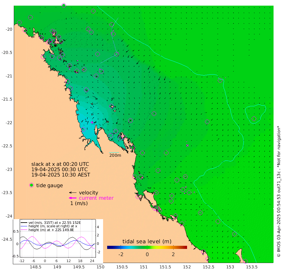 16cm/s 142T +10cm/s rms + 2cm/s 5T. Brampton I 18m 12cm/s 164T +9cm/s rms + 6cm/s 66T. Wigton I 38m 9cm/s -176T +7cm/s rms + 8cm/s 141T. Tern I 47m 7cm/s -151T +7cm/s rms + 12cm/s 54T. N Bugatti Rf 64m 6cm/s -147T +3cm/s rms + 13cm/s 178T. W Bugatti Rf 70m 9cm/s -178T +3cm/s rms + 3cm/s -130T. Creal Rf 69m 7cm/s -62T +7cm/s rms + 4cm/s 2T. North Rf 62m 8cm/s -63T +9cm/s rms + 2cm/s -56T. Cape Capricorn 26m 8cm/s -75T +5cm/s rms + 3cm/s 166T. L Musgrave I 42m 5cm/s -82T +9cm/s rms + 1cm/s -142T. Round Hill Hd 26m 4cm/s 160T +41cm/s rms + 48cm/s 116T. GBRELR 305m 4cm/s -164T +7cm/s rms + 6cm/s 123T. GBRCCH 92m 14cm/s -95T +8cm/s rms + 3cm/s -33T. GBRHIN 45m 10cm/s -98T +4cm/s rms + 2cm/s 41T. GBRHIS 46m 12cm/s -141T +16cm/s rms + 4cm/s -22T. GBROTE 59m -29cm Bell Cay -26cm Holbourne I -52cm Tern I -28cm Bugatti Rf -35cm Creal Rf -22cm White Tip I -7cm North Rf -6cm Rundle I -1cm L Musgrave I 11cm Saumarez Reef -23cm Kennedy Reef -18cm Unnamed Reef No. 2 -25cm Abbot Point -28cm Bowen -36cm Tideway Reef -35cm Hayman Island -41cm Square Reef -35cm Double Bay -50cm Molle Island -35cm Cid Harbour -33cm Hook Island -38cm Border Island -32cm Haslewood Island -40cm Shute Harbour -49cm Thomas Island -45cm Credlin Reef -49cm East Repulse Island -47cm Blacksmith Island -57cm Laguna Quays -46cm Carlisle Island (Off) -37cm St. Bees Island -44cm Scawfell Island -57cm Penrith Island -64cm Mackay Outer Harbour -67cm Hay Point -65cm Prudhoe Island -58cm Middle Island (Percy Isles) -29cm Gannet Cay -10cm Elusive Reef -103cm Mcewin Islet -58cm Mumford Island -66cm Osborn Island -58cm Marquis Island -55cm Reef Point -36cm High Peak Island -28cm Port Clinton -16cm Peaked Island -3cm Karamea Bank -13cm Johnson Patch - NW -15cm Rosslyn Bay -13cm Middle Island (Keppel Isles) -16cm Port Alma -2cm Heron Island -10cm One Tree Islet -6cm Polmaise Reef -11cm Tryon Island -2cm Rock Cod Shoal -7cm Gatcombe Head -7cm Gladstone -5cm South Trees (Storm Surge) -4cm Clews Point 0cm Round Hill Head 2cm Lady Elliot Island -5cm Breaksea Spit 6cm Bundaberg (Burnett Heads) 12cm Elliot Heads -7cm Waddy Point (Fraser Island)