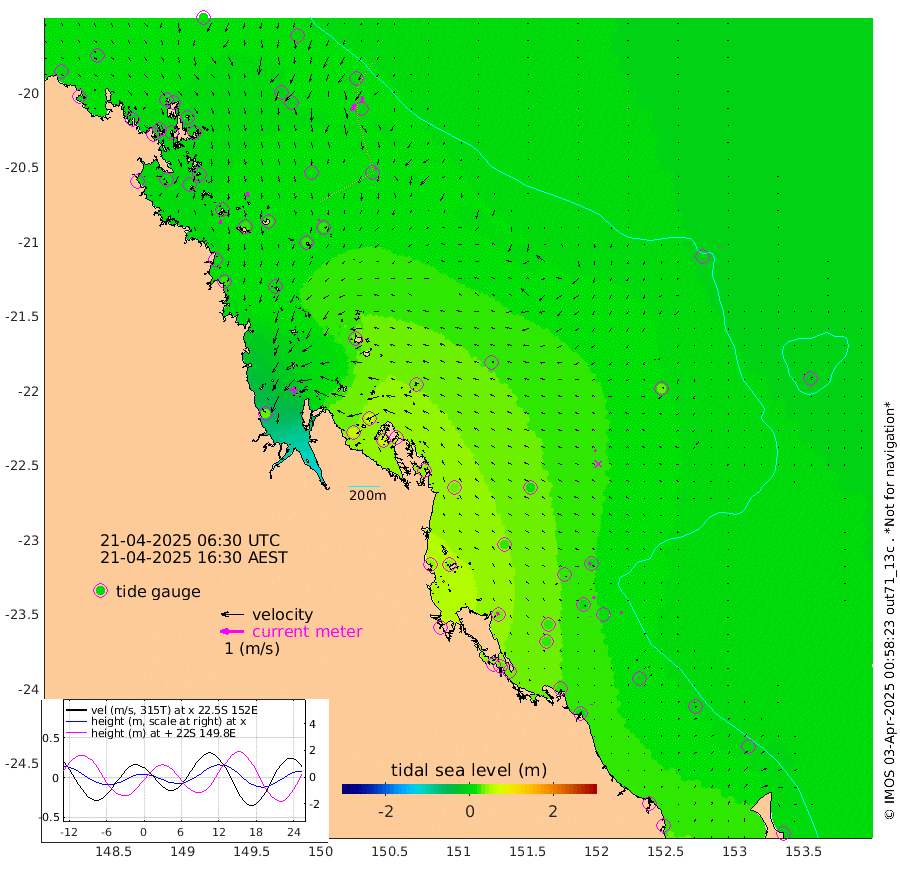 16cm/s 177T +10cm/s rms + 2cm/s 5T. Brampton I 18m 19cm/s 168T +9cm/s rms + 6cm/s 66T. Wigton I 38m 4cm/s -171T +7cm/s rms + 8cm/s 141T. Tern I 47m 28cm/s -168T +7cm/s rms + 12cm/s 54T. N Bugatti Rf 64m 32cm/s -151T +3cm/s rms + 13cm/s 178T. W Bugatti Rf 70m 10cm/s -176T +3cm/s rms + 3cm/s -130T. Creal Rf 69m 10cm/s -74T +7cm/s rms + 4cm/s 2T. North Rf 62m 13cm/s -23T +9cm/s rms + 2cm/s -56T. Cape Capricorn 26m 4cm/s -8T +5cm/s rms + 3cm/s 166T. L Musgrave I 42m 4cm/s -35T +9cm/s rms + 1cm/s -142T. Round Hill Hd 26m 2cm/s -172T +41cm/s rms + 48cm/s 116T. GBRELR 305m 7cm/s -60T +7cm/s rms + 6cm/s 123T. GBRCCH 92m 11cm/s -135T +8cm/s rms + 3cm/s -33T. GBRHIN 45m 1cm/s -92T +4cm/s rms + 2cm/s 41T. GBRHIS 46m 7cm/s 141T +16cm/s rms + 4cm/s -22T. GBROTE 59m 27cm Bell Cay 5cm Holbourne I 22cm Tern I 3cm Bugatti Rf 7cm Creal Rf 1cm White Tip I 18cm North Rf 34cm Rundle I 7cm L Musgrave I -14cm Saumarez Reef 13cm Kennedy Reef 4cm Unnamed Reef No. 2 6cm Abbot Point 7cm Bowen -1cm Tideway Reef 16cm Hayman Island -2cm Square Reef 4cm Double Bay 4cm Molle Island 10cm Cid Harbour 4cm Hook Island 3cm Border Island 4cm Haslewood Island 7cm Shute Harbour 6cm Thomas Island 11cm Credlin Reef 15cm East Repulse Island 15cm Blacksmith Island 8cm Laguna Quays 15cm Carlisle Island (Off) 19cm St. Bees Island 23cm Scawfell Island 27cm Penrith Island 19cm Mackay Outer Harbour 24cm Hay Point 14cm Prudhoe Island 35cm Middle Island (Percy Isles) 31cm Gannet Cay -5cm Elusive Reef 36cm Mcewin Islet 59cm Mumford Island 65cm Osborn Island 66cm Marquis Island 59cm Reef Point 36cm High Peak Island 40cm Port Clinton 33cm Peaked Island 17cm Karamea Bank 27cm Johnson Patch - NW 44cm Rosslyn Bay 42cm Middle Island (Keppel Isles) 52cm Port Alma 16cm Heron Island 17cm One Tree Islet 24cm Polmaise Reef 21cm Tryon Island 24cm Rock Cod Shoal 33cm Gatcombe Head 39cm Gladstone 37cm South Trees (Storm Surge) 24cm Clews Point 17cm Round Hill Head 2cm Lady Elliot Island 4cm Breaksea Spit 19cm Bundaberg (Burnett Heads) 22cm Elliot Heads -2cm Waddy Point (Fraser Island)