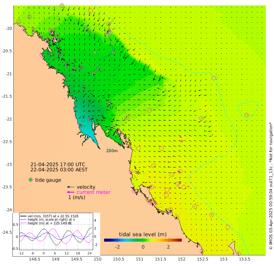 21cm/s -170T +10cm/s rms + 2cm/s 5T. Brampton I 18m 28cm/s 180T +9cm/s rms + 6cm/s 66T. Wigton I 38m 15cm/s -140T +7cm/s rms + 8cm/s 141T. Tern I 47m 34cm/s -158T +7cm/s rms + 12cm/s 54T. N Bugatti Rf 64m 39cm/s -145T +3cm/s rms + 13cm/s 178T. W Bugatti Rf 70m 17cm/s -154T +3cm/s rms + 3cm/s -130T. Creal Rf 69m 32cm/s -83T +7cm/s rms + 4cm/s 2T. North Rf 62m 30cm/s -32T +9cm/s rms + 2cm/s -56T. Cape Capricorn 26m 6cm/s 158T +5cm/s rms + 3cm/s 166T. L Musgrave I 42m 4cm/s -75T +9cm/s rms + 1cm/s -142T. Round Hill Hd 26m 5cm/s -84T +41cm/s rms + 48cm/s 116T. GBRELR 305m 27cm/s -66T +7cm/s rms + 6cm/s 123T. GBRCCH 92m 30cm/s -108T +8cm/s rms + 3cm/s -33T. GBRHIN 45m 17cm/s -95T +4cm/s rms + 2cm/s 41T. GBRHIS 46m 17cm/s -113T +16cm/s rms + 4cm/s -22T. GBROTE 59m 48cm Bell Cay 36cm Holbourne I 16cm Tern I 35cm Bugatti Rf 21cm Creal Rf 45cm White Tip I 80cm North Rf 94cm Rundle I 72cm L Musgrave I 48cm Saumarez Reef 45cm Kennedy Reef 56cm Unnamed Reef No. 2 39cm Abbot Point 36cm Bowen 22cm Tideway Reef 35cm Hayman Island 14cm Square Reef 32cm Double Bay 39cm Molle Island 24cm Cid Harbour 28cm Hook Island 21cm Border Island 20cm Haslewood Island 22cm Shute Harbour 7cm Thomas Island 21cm Credlin Reef 15cm East Repulse Island 8cm Blacksmith Island -3cm Laguna Quays 18cm Carlisle Island (Off) -3cm St. Bees Island 6cm Scawfell Island 22cm Penrith Island 2cm Mackay Outer Harbour 3cm Hay Point -5cm Prudhoe Island 34cm Middle Island (Percy Isles) 55cm Gannet Cay 63cm Elusive Reef -23cm Mcewin Islet 41cm Mumford Island 42cm Osborn Island 43cm Marquis Island 47cm Reef Point 50cm High Peak Island 73cm Port Clinton 67cm Peaked Island 86cm Karamea Bank 85cm Johnson Patch - NW 94cm Rosslyn Bay 94cm Middle Island (Keppel Isles) 95cm Port Alma 85cm Heron Island 89cm One Tree Islet 86cm Polmaise Reef 87cm Tryon Island 98cm Rock Cod Shoal 89cm Gatcombe Head 91cm Gladstone 94cm South Trees (Storm Surge) 87cm Clews Point 83cm Round Hill Head 71cm Lady Elliot Island 75cm Breaksea Spit 85cm Bundaberg (Burnett Heads) 87cm Elliot Heads 61cm Waddy Point (Fraser Island)