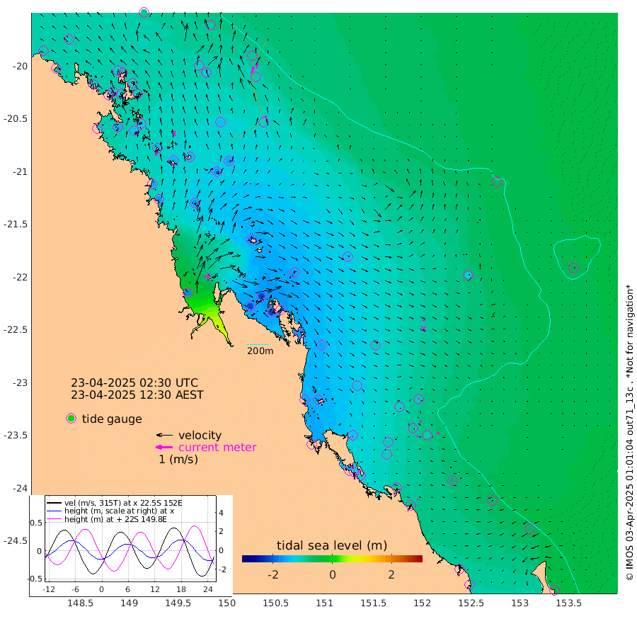 16cm/s 13T +10cm/s rms + 2cm/s 5T. Brampton I 18m 27cm/s -11T +9cm/s rms + 6cm/s 66T. Wigton I 38m 1cm/s -87T +7cm/s rms + 8cm/s 141T. Tern I 47m 34cm/s 5T +7cm/s rms + 12cm/s 54T. N Bugatti Rf 64m 44cm/s 23T +3cm/s rms + 13cm/s 178T. W Bugatti Rf 70m 15cm/s -16T +3cm/s rms + 3cm/s -130T. Creal Rf 69m 6cm/s 14T +7cm/s rms + 4cm/s 2T. North Rf 62m 10cm/s -166T +9cm/s rms + 2cm/s -56T. Cape Capricorn 26m 6cm/s -62T +5cm/s rms + 3cm/s 166T. L Musgrave I 42m 8cm/s -80T +9cm/s rms + 1cm/s -142T. Round Hill Hd 26m 0cm/s 16T +41cm/s rms + 48cm/s 116T. GBRELR 305m 18cm/s 115T +7cm/s rms + 6cm/s 123T. GBRCCH 92m 10cm/s -44T +8cm/s rms + 3cm/s -33T. GBRHIN 45m 10cm/s -81T +4cm/s rms + 2cm/s 41T. GBRHIS 46m 12cm/s -62T +16cm/s rms + 4cm/s -22T. GBROTE 59m -134cm Bell Cay -94cm Holbourne I -153cm Tern I -97cm Bugatti Rf -115cm Creal Rf -87cm White Tip I -96cm North Rf -125cm Rundle I -64cm L Musgrave I -47cm Saumarez Reef -90cm Kennedy Reef -85cm Unnamed Reef No. 2 -100cm Abbot Point -103cm Bowen -103cm Tideway Reef -116cm Hayman Island -127cm Square Reef -106cm Double Bay -122cm Molle Island -120cm Cid Harbour -102cm Hook Island -103cm Border Island -109cm Haslewood Island -116cm Shute Harbour -125cm Thomas Island -140cm Credlin Reef -141cm East Repulse Island -133cm Blacksmith Island -132cm Laguna Quays -142cm Carlisle Island (Off) -148cm St. Bees Island -142cm Scawfell Island -165cm Penrith Island -157cm Mackay Outer Harbour -168cm Hay Point -166cm Prudhoe Island -178cm Middle Island (Percy Isles) -124cm Gannet Cay -54cm Elusive Reef -170cm Mcewin Islet -209cm Mumford Island -213cm Osborn Island -215cm Marquis Island -199cm Reef Point -159cm High Peak Island -160cm Port Clinton -158cm Peaked Island -96cm Karamea Bank -127cm Johnson Patch - NW -155cm Rosslyn Bay -157cm Middle Island (Keppel Isles) -171cm Port Alma -92cm Heron Island -96cm One Tree Islet -103cm Polmaise Reef -108cm Tryon Island -106cm Rock Cod Shoal -119cm Gatcombe Head -134cm Gladstone -127cm South Trees (Storm Surge) -93cm Clews Point -81cm Round Hill Head -58cm Lady Elliot Island -56cm Breaksea Spit -83cm Bundaberg (Burnett Heads) -87cm Elliot Heads -46cm Waddy Point (Fraser Island)
