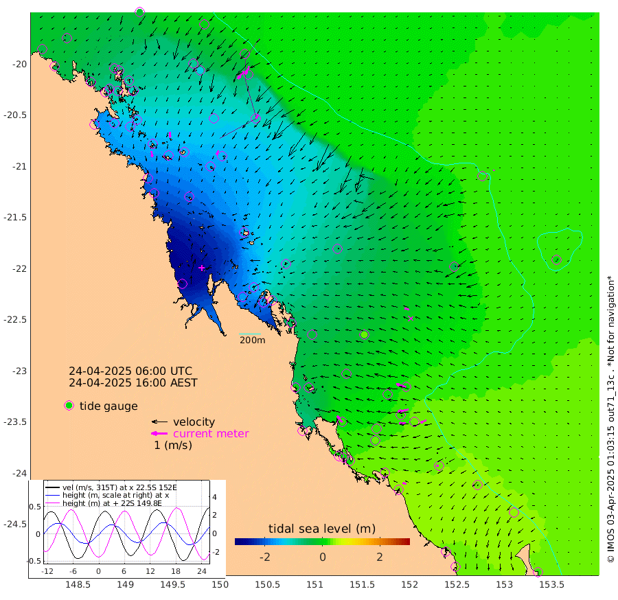 38cm/s 170T +10cm/s rms + 2cm/s 5T. Brampton I 18m 35cm/s 176T +9cm/s rms + 6cm/s 66T. Wigton I 38m 29cm/s -151T +7cm/s rms + 8cm/s 141T. Tern I 47m 56cm/s -156T +7cm/s rms + 12cm/s 54T. N Bugatti Rf 64m 61cm/s -142T +3cm/s rms + 13cm/s 178T. W Bugatti Rf 70m 27cm/s -148T +3cm/s rms + 3cm/s -130T. Creal Rf 69m 62cm/s -73T +7cm/s rms + 4cm/s 2T. North Rf 62m 52cm/s -39T +9cm/s rms + 2cm/s -56T. Cape Capricorn 26m 17cm/s -91T +5cm/s rms + 3cm/s 166T. L Musgrave I 42m 22cm/s -73T +9cm/s rms + 1cm/s -142T. Round Hill Hd 26m 7cm/s -122T +41cm/s rms + 48cm/s 116T. GBRELR 305m 31cm/s -70T +7cm/s rms + 6cm/s 123T. GBRCCH 92m 70cm/s -101T +8cm/s rms + 3cm/s -33T. GBRHIN 45m 42cm/s -92T +4cm/s rms + 2cm/s 41T. GBRHIS 46m 38cm/s -116T +16cm/s rms + 4cm/s -22T. GBROTE 59m -70cm Bell Cay -46cm Holbourne I -146cm Tern I -61cm Bugatti Rf -100cm Creal Rf -33cm White Tip I 18cm North Rf 22cm Rundle I 32cm L Musgrave I 15cm Saumarez Reef -22cm Kennedy Reef -9cm Unnamed Reef No. 2 -42cm Abbot Point -55cm Bowen -86cm Tideway Reef -65cm Hayman Island -123cm Square Reef -64cm Double Bay -102cm Molle Island -101cm Cid Harbour -75cm Hook Island -96cm Border Island -105cm Haslewood Island -100cm Shute Harbour -137cm Thomas Island -129cm Credlin Reef -144cm East Repulse Island -147cm Blacksmith Island -169cm Laguna Quays -143cm Carlisle Island (Off) -159cm St. Bees Island -149cm Scawfell Island -155cm Penrith Island -185cm Mackay Outer Harbour -193cm Hay Point -190cm Prudhoe Island -148cm Middle Island (Percy Isles) -54cm Gannet Cay 20cm Elusive Reef -276cm Mcewin Islet -136cm Mumford Island -163cm Osborn Island -167cm Marquis Island -143cm Reef Point -95cm High Peak Island -49cm Port Clinton -35cm Peaked Island 30cm Karamea Bank -5cm Johnson Patch - NW -8cm Rosslyn Bay -5cm Middle Island (Keppel Isles) -23cm Port Alma 25cm Heron Island 34cm One Tree Islet 28cm Polmaise Reef 12cm Tryon Island 34cm Rock Cod Shoal 12cm Gatcombe Head 2cm Gladstone 15cm South Trees (Storm Surge) 42cm Clews Point 34cm Round Hill Head 35cm Lady Elliot Island 39cm Breaksea Spit 37cm Bundaberg (Burnett Heads) 38cm Elliot Heads 26cm Waddy Point (Fraser Island)