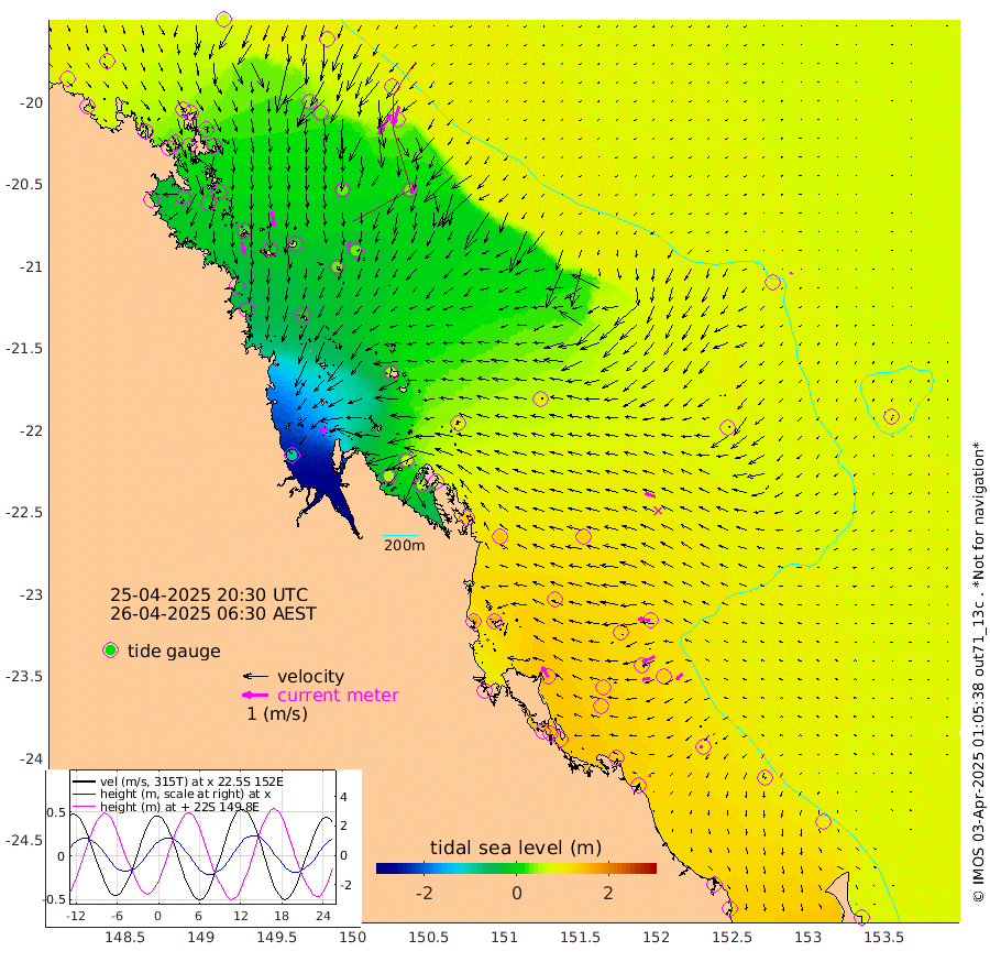 49cm/s 170T +10cm/s rms + 2cm/s 5T. Brampton I 18m 59cm/s 171T +9cm/s rms + 6cm/s 66T. Wigton I 38m 26cm/s -158T +7cm/s rms + 8cm/s 141T. Tern I 47m 76cm/s -163T +7cm/s rms + 12cm/s 54T. N Bugatti Rf 64m 90cm/s -150T +3cm/s rms + 13cm/s 178T. W Bugatti Rf 70m 37cm/s -170T +3cm/s rms + 3cm/s -130T. Creal Rf 69m 48cm/s -83T +7cm/s rms + 4cm/s 2T. North Rf 62m 47cm/s -31T +9cm/s rms + 2cm/s -56T. Cape Capricorn 26m 12cm/s -105T +5cm/s rms + 3cm/s 166T. L Musgrave I 42m 9cm/s -68T +9cm/s rms + 1cm/s -142T. Round Hill Hd 26m 6cm/s -148T +41cm/s rms + 48cm/s 116T. GBRELR 305m 42cm/s -72T +7cm/s rms + 6cm/s 123T. GBRCCH 92m 52cm/s -113T +8cm/s rms + 3cm/s -33T. GBRHIN 45m 29cm/s -98T +4cm/s rms + 2cm/s 41T. GBRHIS 46m 32cm/s -134T +16cm/s rms + 4cm/s -22T. GBROTE 59m 78cm Bell Cay 67cm Holbourne I 31cm Tern I 52cm Bugatti Rf 36cm Creal Rf 66cm White Tip I 116cm North Rf 148cm Rundle I 96cm L Musgrave I 81cm Saumarez Reef 73cm Kennedy Reef 85cm Unnamed Reef No. 2 72cm Abbot Point 63cm Bowen 38cm Tideway Reef 60cm Hayman Island 36cm Square Reef 61cm Double Bay 44cm Molle Island 35cm Cid Harbour 47cm Hook Island 25cm Border Island 27cm Haslewood Island 35cm Shute Harbour 10cm Thomas Island 32cm Credlin Reef 13cm East Repulse Island 2cm Blacksmith Island -11cm Laguna Quays 23cm Carlisle Island (Off) 8cm St. Bees Island 10cm Scawfell Island 32cm Penrith Island -3cm Mackay Outer Harbour 1cm Hay Point 12cm Prudhoe Island 56cm Middle Island (Percy Isles) 77cm Gannet Cay 75cm Elusive Reef -93cm Mcewin Islet 85cm Mumford Island 53cm Osborn Island 54cm Marquis Island 60cm Reef Point 79cm High Peak Island 124cm Port Clinton 140cm Peaked Island 126cm Karamea Bank 131cm Johnson Patch - NW 151cm Rosslyn Bay 158cm Middle Island (Keppel Isles) 155cm Port Alma 120cm Heron Island 130cm One Tree Islet 131cm Polmaise Reef 115cm Tryon Island 139cm Rock Cod Shoal 135cm Gatcombe Head 140cm Gladstone 144cm South Trees (Storm Surge) 129cm Clews Point 115cm Round Hill Head 94cm Lady Elliot Island 87cm Breaksea Spit 122cm Bundaberg (Burnett Heads) 128cm Elliot Heads 68cm Waddy Point (Fraser Island)