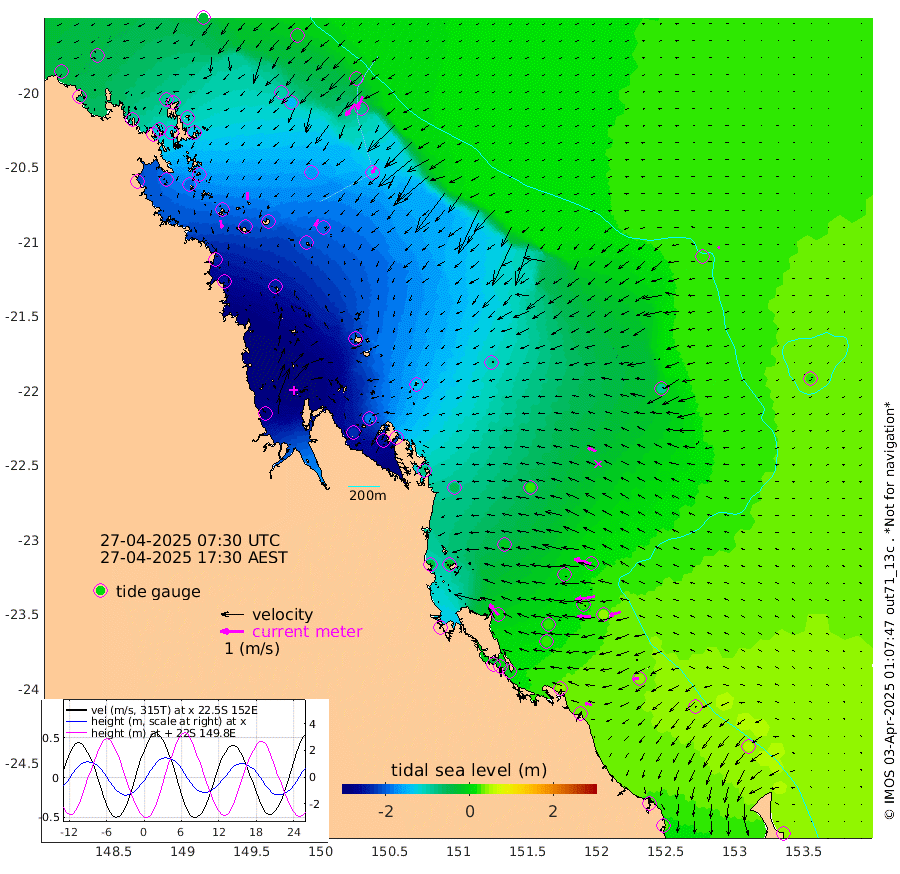 37cm/s 169T +10cm/s rms + 2cm/s 5T. Brampton I 18m 34cm/s 179T +9cm/s rms + 6cm/s 66T. Wigton I 38m 33cm/s -148T +7cm/s rms + 8cm/s 141T. Tern I 47m 60cm/s -156T +7cm/s rms + 12cm/s 54T. N Bugatti Rf 64m 65cm/s -142T +3cm/s rms + 13cm/s 178T. W Bugatti Rf 70m 30cm/s -145T +3cm/s rms + 3cm/s -130T. Creal Rf 69m 76cm/s -74T +7cm/s rms + 4cm/s 2T. North Rf 62m 61cm/s -39T +9cm/s rms + 2cm/s -56T. Cape Capricorn 26m 25cm/s -99T +5cm/s rms + 3cm/s 166T. L Musgrave I 42m 28cm/s -74T +9cm/s rms + 1cm/s -142T. Round Hill Hd 26m 8cm/s -110T +41cm/s rms + 48cm/s 116T. GBRELR 305m 38cm/s -67T +7cm/s rms + 6cm/s 123T. GBRCCH 92m 87cm/s -99T +8cm/s rms + 3cm/s -33T. GBRHIN 45m 56cm/s -91T +4cm/s rms + 2cm/s 41T. GBRHIS 46m 49cm/s -107T +16cm/s rms + 4cm/s -22T. GBROTE 59m -99cm Bell Cay -60cm Holbourne I -190cm Tern I -75cm Bugatti Rf -125cm Creal Rf -39cm White Tip I 15cm North Rf 11cm Rundle I 38cm L Musgrave I 28cm Saumarez Reef -31cm Kennedy Reef -13cm Unnamed Reef No. 2 -55cm Abbot Point -71cm Bowen -103cm Tideway Reef -85cm Hayman Island -141cm Square Reef -91cm Double Bay -128cm Molle Island -130cm Cid Harbour -96cm Hook Island -119cm Border Island -136cm Haslewood Island -127cm Shute Harbour -172cm Thomas Island -164cm Credlin Reef -194cm East Repulse Island -193cm Blacksmith Island -214cm Laguna Quays -193cm Carlisle Island (Off) -220cm St. Bees Island -201cm Scawfell Island -202cm Penrith Island -239cm Mackay Outer Harbour -252cm Hay Point -237cm Prudhoe Island -203cm Middle Island (Percy Isles) -85cm Gannet Cay 28cm Elusive Reef -378cm Mcewin Islet -187cm Mumford Island -232cm Osborn Island -248cm Marquis Island -211cm Reef Point -140cm High Peak Island -83cm Port Clinton -52cm Peaked Island 28cm Karamea Bank -18cm Johnson Patch - NW -34cm Rosslyn Bay -27cm Middle Island (Keppel Isles) -59cm Port Alma 22cm Heron Island 41cm One Tree Islet 25cm Polmaise Reef 7cm Tryon Island 27cm Rock Cod Shoal -3cm Gatcombe Head -22cm Gladstone -5cm South Trees (Storm Surge) 45cm Clews Point 35cm Round Hill Head 43cm Lady Elliot Island 48cm Breaksea Spit 33cm Bundaberg (Burnett Heads) 29cm Elliot Heads 39cm Waddy Point (Fraser Island)