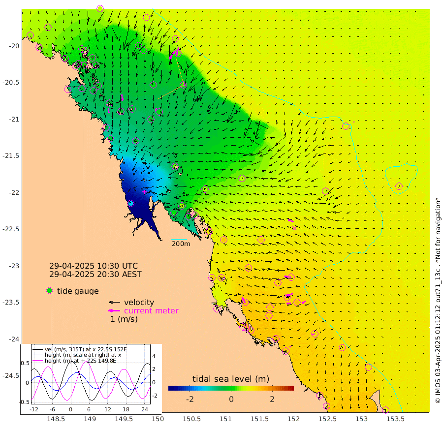 44cm/s 175T +10cm/s rms + 2cm/s 5T. Brampton I 18m 56cm/s 173T +9cm/s rms + 6cm/s 66T. Wigton I 38m 26cm/s -148T +7cm/s rms + 8cm/s 141T. Tern I 47m 71cm/s -164T +7cm/s rms + 12cm/s 54T. N Bugatti Rf 64m 86cm/s -148T +3cm/s rms + 13cm/s 178T. W Bugatti Rf 70m 33cm/s -166T +3cm/s rms + 3cm/s -130T. Creal Rf 69m 58cm/s -80T +7cm/s rms + 4cm/s 2T. North Rf 62m 55cm/s -31T +9cm/s rms + 2cm/s -56T. Cape Capricorn 26m 19cm/s -117T +5cm/s rms + 3cm/s 166T. L Musgrave I 42m 13cm/s -84T +9cm/s rms + 1cm/s -142T. Round Hill Hd 26m 7cm/s -115T +41cm/s rms + 48cm/s 116T. GBRELR 305m 50cm/s -68T +7cm/s rms + 6cm/s 123T. GBRCCH 92m 65cm/s -110T +8cm/s rms + 3cm/s -33T. GBRHIN 45m 38cm/s -95T +4cm/s rms + 2cm/s 41T. GBRHIS 46m 37cm/s -122T +16cm/s rms + 4cm/s -22T. GBROTE 59m 61cm Bell Cay 41cm Holbourne I 1cm Tern I 36cm Bugatti Rf 19cm Creal Rf 52cm White Tip I 120cm North Rf 145cm Rundle I 108cm L Musgrave I 93cm Saumarez Reef 56cm Kennedy Reef 69cm Unnamed Reef No. 2 41cm Abbot Point 31cm Bowen 14cm Tideway Reef 30cm Hayman Island 12cm Square Reef 27cm Double Bay -5cm Molle Island 3cm Cid Harbour 21cm Hook Island 0cm Border Island -9cm Haslewood Island 3cm Shute Harbour -18cm Thomas Island 4cm Credlin Reef -29cm East Repulse Island -30cm Blacksmith Island -47cm Laguna Quays -21cm Carlisle Island (Off) -22cm St. Bees Island -26cm Scawfell Island -10cm Penrith Island -39cm Mackay Outer Harbour -37cm Hay Point -15cm Prudhoe Island 29cm Middle Island (Percy Isles) 59cm Gannet Cay 80cm Elusive Reef -135cm Mcewin Islet 54cm Mumford Island 14cm Osborn Island 13cm Marquis Island 20cm Reef Point 51cm High Peak Island 109cm Port Clinton 137cm Peaked Island 130cm Karamea Bank 133cm Johnson Patch - NW 139cm Rosslyn Bay 147cm Middle Island (Keppel Isles) 138cm Port Alma 124cm Heron Island 144cm One Tree Islet 139cm Polmaise Reef 124cm Tryon Island 137cm Rock Cod Shoal 127cm Gatcombe Head 132cm Gladstone 138cm South Trees (Storm Surge) 141cm Clews Point 125cm Round Hill Head 109cm Lady Elliot Island 107cm Breaksea Spit 126cm Bundaberg (Burnett Heads) 129cm Elliot Heads 88cm Waddy Point (Fraser Island)