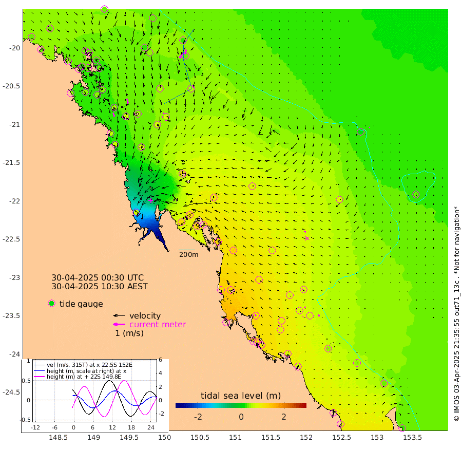 30cm/s 163T +10cm/s rms + 2cm/s 5T. Brampton I 18m 41cm/s 166T +9cm/s rms + 6cm/s 66T. Wigton I 38m 9cm/s 170T +7cm/s rms + 8cm/s 141T. Tern I 47m 39cm/s -166T +7cm/s rms + 12cm/s 54T. N Bugatti Rf 64m 46cm/s -154T +3cm/s rms + 13cm/s 178T. W Bugatti Rf 70m 19cm/s 166T +3cm/s rms + 3cm/s -130T. Creal Rf 69m 11cm/s -75T +7cm/s rms + 4cm/s 2T. North Rf 62m 18cm/s -21T +9cm/s rms + 2cm/s -56T. Cape Capricorn 26m 5cm/s -69T +5cm/s rms + 3cm/s 166T. L Musgrave I 42m 2cm/s 26T +9cm/s rms + 1cm/s -142T. Round Hill Hd 26m 4cm/s 164T +41cm/s rms + 48cm/s 116T. GBRELR 305m 15cm/s -76T +7cm/s rms + 6cm/s 123T. GBRCCH 92m 15cm/s -145T +8cm/s rms + 3cm/s -33T. GBRHIN 45m 2cm/s -152T +4cm/s rms + 2cm/s 41T. GBRHIS 46m 15cm/s 169T +16cm/s rms + 4cm/s -22T. GBROTE 59m 83cm Bell Cay 37cm Holbourne I 74cm Tern I 35cm Bugatti Rf 51cm Creal Rf 27cm White Tip I 67cm North Rf 98cm Rundle I 44cm L Musgrave I 35cm Saumarez Reef 33cm Kennedy Reef 30cm Unnamed Reef No. 2 29cm Abbot Point 29cm Bowen 26cm Tideway Reef 33cm Hayman Island 38cm Square Reef 43cm Double Bay 22cm Molle Island 35cm Cid Harbour 34cm Hook Island 23cm Border Island 33cm Haslewood Island 35cm Shute Harbour 41cm Thomas Island 50cm Credlin Reef 42cm East Repulse Island 43cm Blacksmith Island 39cm Laguna Quays 53cm Carlisle Island (Off) 66cm St. Bees Island 55cm Scawfell Island 66cm Penrith Island 62cm Mackay Outer Harbour 73cm Hay Point 84cm Prudhoe Island 118cm Middle Island (Percy Isles) 81cm Gannet Cay 15cm Elusive Reef 68cm Mcewin Islet 124cm Mumford Island 113cm Osborn Island 125cm Marquis Island 111cm Reef Point 102cm High Peak Island 124cm Port Clinton 122cm Peaked Island 70cm Karamea Bank 101cm Johnson Patch - NW 120cm Rosslyn Bay 122cm Middle Island (Keppel Isles) 139cm Port Alma 68cm Heron Island 68cm One Tree Islet 82cm Polmaise Reef 66cm Tryon Island 78cm Rock Cod Shoal 95cm Gatcombe Head 113cm Gladstone 107cm South Trees (Storm Surge) 71cm Clews Point 65cm Round Hill Head 41cm Lady Elliot Island 31cm Breaksea Spit 74cm Bundaberg (Burnett Heads) 81cm Elliot Heads 19cm Waddy Point (Fraser Island)