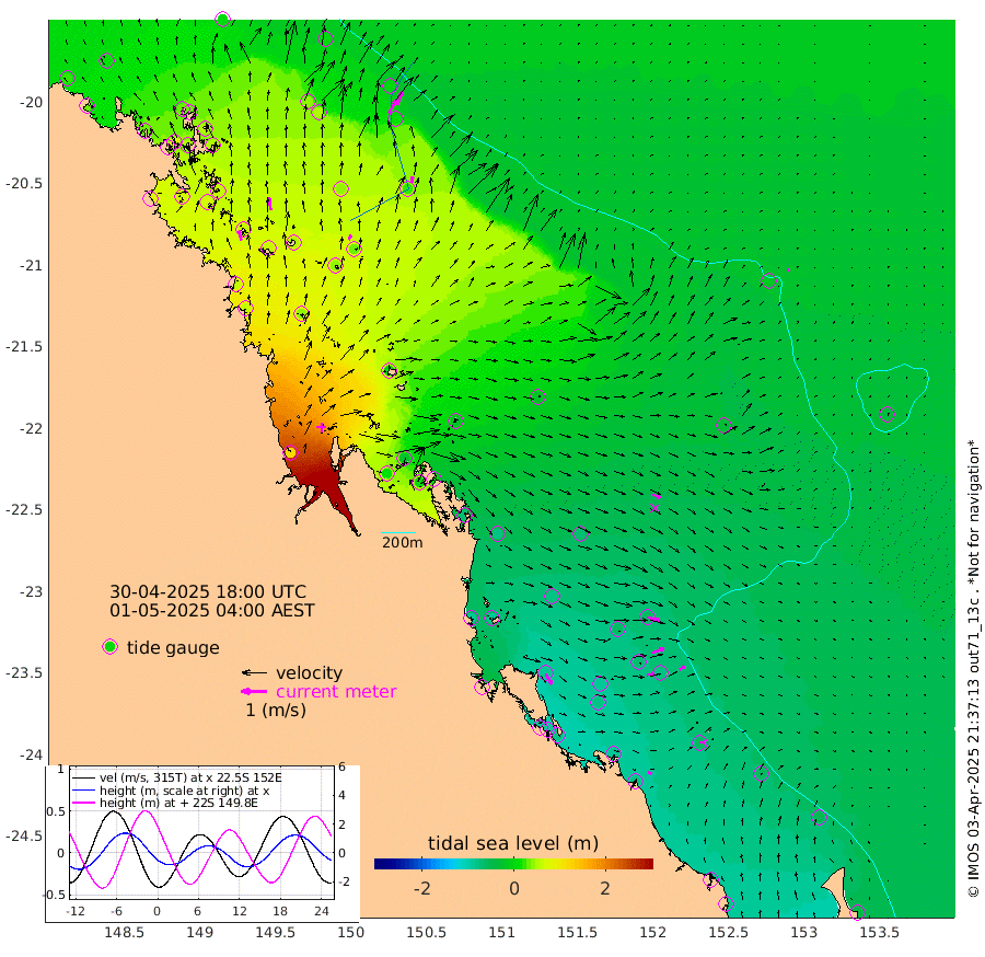 39cm/s -13T +10cm/s rms + 2cm/s 5T. Brampton I 18m 51cm/s -8T +9cm/s rms + 6cm/s 66T. Wigton I 38m 20cm/s 22T +7cm/s rms + 8cm/s 141T. Tern I 47m 61cm/s 20T +7cm/s rms + 12cm/s 54T. N Bugatti Rf 64m 65cm/s 31T +3cm/s rms + 13cm/s 178T. W Bugatti Rf 70m 25cm/s 8T +3cm/s rms + 3cm/s -130T. Creal Rf 69m 52cm/s 106T +7cm/s rms + 4cm/s 2T. North Rf 62m 47cm/s 148T +9cm/s rms + 2cm/s -56T. Cape Capricorn 26m 22cm/s 86T +5cm/s rms + 3cm/s 166T. L Musgrave I 42m 16cm/s 112T +9cm/s rms + 1cm/s -142T. Round Hill Hd 26m 5cm/s 51T +41cm/s rms + 48cm/s 116T. GBRELR 305m 34cm/s 116T +7cm/s rms + 6cm/s 123T. GBRCCH 92m 52cm/s 70T +8cm/s rms + 3cm/s -33T. GBRHIN 45m 28cm/s 85T +4cm/s rms + 2cm/s 41T. GBRHIS 46m 25cm/s 52T +16cm/s rms + 4cm/s -22T. GBROTE 59m -23cm Bell Cay 19cm Holbourne I 32cm Tern I 17cm Bugatti Rf 22cm Creal Rf 9cm White Tip I -66cm North Rf -90cm Rundle I -58cm L Musgrave I -39cm Saumarez Reef 9cm Kennedy Reef 0cm Unnamed Reef No. 2 26cm Abbot Point 33cm Bowen 45cm Tideway Reef 31cm Hayman Island 49cm Square Reef 29cm Double Bay 67cm Molle Island 49cm Cid Harbour 35cm Hook Island 54cm Border Island 53cm Haslewood Island 48cm Shute Harbour 57cm Thomas Island 46cm Credlin Reef 72cm East Repulse Island 66cm Blacksmith Island 79cm Laguna Quays 62cm Carlisle Island (Off) 56cm St. Bees Island 53cm Scawfell Island 47cm Penrith Island 64cm Mackay Outer Harbour 59cm Hay Point 40cm Prudhoe Island -8cm Middle Island (Percy Isles) -28cm Gannet Cay -17cm Elusive Reef 115cm Mcewin Islet -21cm Mumford Island 11cm Osborn Island 6cm Marquis Island 7cm Reef Point -19cm High Peak Island -68cm Port Clinton -83cm Peaked Island -72cm Karamea Bank -83cm Johnson Patch - NW -87cm Rosslyn Bay -91cm Middle Island (Keppel Isles) -90cm Port Alma -70cm Heron Island -82cm One Tree Islet -85cm Polmaise Reef -63cm Tryon Island -77cm Rock Cod Shoal -80cm Gatcombe Head -86cm Gladstone -90cm South Trees (Storm Surge) -85cm Clews Point -75cm Round Hill Head -58cm Lady Elliot Island -53cm Breaksea Spit -77cm Bundaberg (Burnett Heads) -81cm Elliot Heads -43cm Waddy Point (Fraser Island)