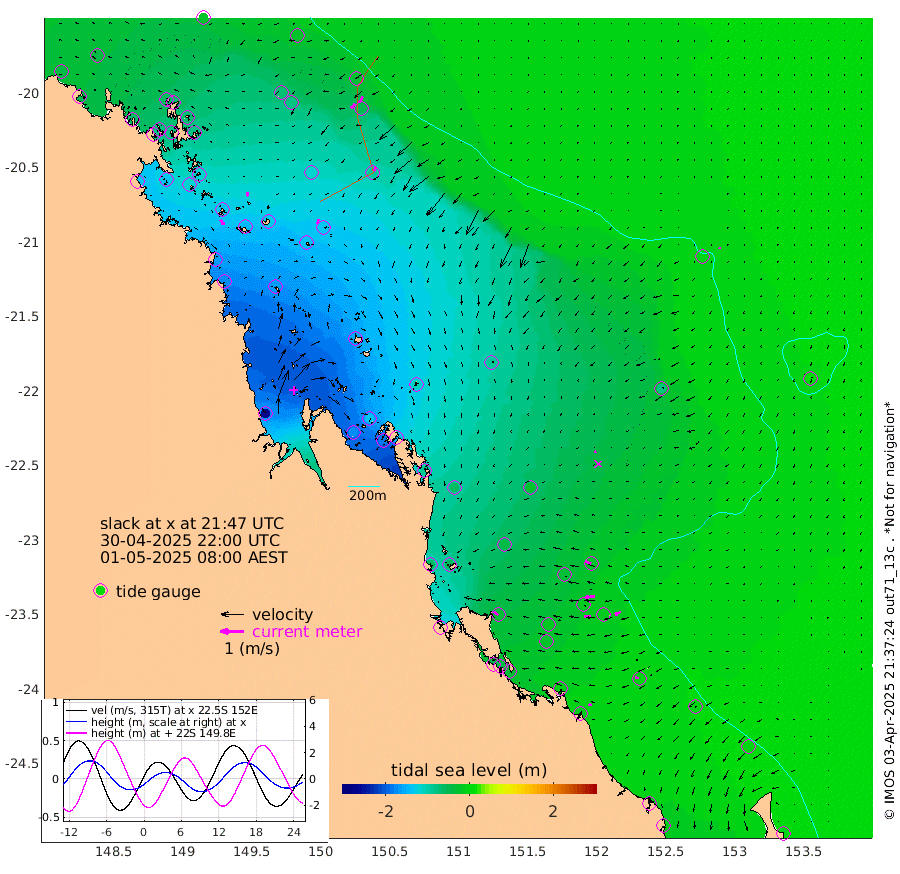 26cm/s 146T +10cm/s rms + 2cm/s 5T. Brampton I 18m 18cm/s 171T +9cm/s rms + 6cm/s 66T. Wigton I 38m 21cm/s -163T +7cm/s rms + 8cm/s 141T. Tern I 47m 28cm/s -151T +7cm/s rms + 12cm/s 54T. N Bugatti Rf 64m 26cm/s -141T +3cm/s rms + 13cm/s 178T. W Bugatti Rf 70m 18cm/s -156T +3cm/s rms + 3cm/s -130T. Creal Rf 69m 28cm/s -70T +7cm/s rms + 4cm/s 2T. North Rf 62m 23cm/s -51T +9cm/s rms + 2cm/s -56T. Cape Capricorn 26m 15cm/s -83T +5cm/s rms + 3cm/s 166T. L Musgrave I 42m 14cm/s -76T +9cm/s rms + 1cm/s -142T. Round Hill Hd 26m 5cm/s -171T +41cm/s rms + 48cm/s 116T. GBRELR 305m 8cm/s -111T +7cm/s rms + 6cm/s 123T. GBRCCH 92m 41cm/s -94T +8cm/s rms + 3cm/s -33T. GBRHIN 45m 28cm/s -93T +4cm/s rms + 2cm/s 41T. GBRHIS 46m 27cm/s -115T +16cm/s rms + 4cm/s -22T. GBROTE 59m -85cm Bell Cay -42cm Holbourne I -132cm Tern I -55cm Bugatti Rf -86cm Creal Rf -34cm White Tip I -24cm North Rf -31cm Rundle I -5cm L Musgrave I 13cm Saumarez Reef -23cm Kennedy Reef -23cm Unnamed Reef No. 2 -38cm Abbot Point -48cm Bowen -68cm Tideway Reef -63cm Hayman Island -84cm Square Reef -74cm Double Bay -82cm Molle Island -79cm Cid Harbour -70cm Hook Island -74cm Border Island -84cm Haslewood Island -84cm Shute Harbour -113cm Thomas Island -114cm Credlin Reef -134cm East Repulse Island -117cm Blacksmith Island -137cm Laguna Quays -133cm Carlisle Island (Off) -143cm St. Bees Island -129cm Scawfell Island -136cm Penrith Island -163cm Mackay Outer Harbour -174cm Hay Point -164cm Prudhoe Island -150cm Middle Island (Percy Isles) -81cm Gannet Cay -5cm Elusive Reef -270cm Mcewin Islet -137cm Mumford Island -172cm Osborn Island -186cm Marquis Island -158cm Reef Point -112cm High Peak Island -91cm Port Clinton -62cm Peaked Island -19cm Karamea Bank -43cm Johnson Patch - NW -60cm Rosslyn Bay -56cm Middle Island (Keppel Isles) -75cm Port Alma -17cm Heron Island -11cm One Tree Islet -17cm Polmaise Reef -30cm Tryon Island -24cm Rock Cod Shoal -35cm Gatcombe Head -49cm Gladstone -38cm South Trees (Storm Surge) -5cm Clews Point -10cm Round Hill Head -1cm Lady Elliot Island -3cm Breaksea Spit -5cm Bundaberg (Burnett Heads) -1cm Elliot Heads -7cm Waddy Point (Fraser Island)