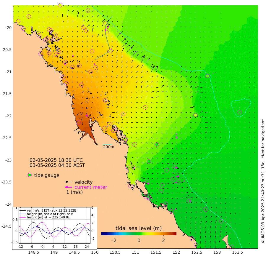 26cm/s -23T +10cm/s rms + 2cm/s 5T. Brampton I 18m 29cm/s -5T +9cm/s rms + 6cm/s 66T. Wigton I 38m 19cm/s 22T +7cm/s rms + 8cm/s 141T. Tern I 47m 39cm/s 30T +7cm/s rms + 12cm/s 54T. N Bugatti Rf 64m 30cm/s 37T +3cm/s rms + 13cm/s 178T. W Bugatti Rf 70m 14cm/s 25T +3cm/s rms + 3cm/s -130T. Creal Rf 69m 48cm/s 113T +7cm/s rms + 4cm/s 2T. North Rf 62m 37cm/s 140T +9cm/s rms + 2cm/s -56T. Cape Capricorn 26m 23cm/s 94T +5cm/s rms + 3cm/s 166T. L Musgrave I 42m 21cm/s 111T +9cm/s rms + 1cm/s -142T. Round Hill Hd 26m 4cm/s 57T +41cm/s rms + 48cm/s 116T. GBRELR 305m 15cm/s 121T +7cm/s rms + 6cm/s 123T. GBRCCH 92m 47cm/s 76T +8cm/s rms + 3cm/s -33T. GBRHIN 45m 29cm/s 90T +4cm/s rms + 2cm/s 41T. GBRHIS 46m 21cm/s 72T +16cm/s rms + 4cm/s -22T. GBROTE 59m 73cm Bell Cay 89cm Holbourne I 133cm Tern I 83cm Bugatti Rf 99cm Creal Rf 69cm White Tip I 12cm North Rf 11cm Rundle I -3cm L Musgrave I 7cm Saumarez Reef 68cm Kennedy Reef 63cm Unnamed Reef No. 2 94cm Abbot Point 101cm Bowen 114cm Tideway Reef 104cm Hayman Island 130cm Square Reef 113cm Double Bay 139cm Molle Island 118cm Cid Harbour 109cm Hook Island 117cm Border Island 122cm Haslewood Island 122cm Shute Harbour 134cm Thomas Island 138cm Credlin Reef 160cm East Repulse Island 139cm Blacksmith Island 158cm Laguna Quays 156cm Carlisle Island (Off) 154cm St. Bees Island 137cm Scawfell Island 146cm Penrith Island 162cm Mackay Outer Harbour 166cm Hay Point 155cm Prudhoe Island 118cm Middle Island (Percy Isles) 60cm Gannet Cay 28cm Elusive Reef 218cm Mcewin Islet 112cm Mumford Island 138cm Osborn Island 142cm Marquis Island 129cm Reef Point 92cm High Peak Island 59cm Port Clinton 42cm Peaked Island 9cm Karamea Bank 17cm Johnson Patch - NW 33cm Rosslyn Bay 32cm Middle Island (Keppel Isles) 41cm Port Alma 5cm Heron Island -2cm One Tree Islet -2cm Polmaise Reef 14cm Tryon Island 11cm Rock Cod Shoal 13cm Gatcombe Head 20cm Gladstone 12cm South Trees (Storm Surge) -11cm Clews Point -7cm Round Hill Head -6cm Lady Elliot Island -7cm Breaksea Spit -6cm Bundaberg (Burnett Heads) -10cm Elliot Heads -5cm Waddy Point (Fraser Island)