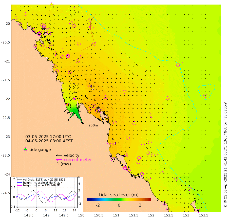 10cm/s -121T +10cm/s rms + 2cm/s 5T. Brampton I 18m 10cm/s 174T +9cm/s rms + 6cm/s 66T. Wigton I 38m 5cm/s -42T +7cm/s rms + 8cm/s 141T. Tern I 47m 11cm/s 170T +7cm/s rms + 12cm/s 54T. N Bugatti Rf 64m 22cm/s -152T +3cm/s rms + 13cm/s 178T. W Bugatti Rf 70m 4cm/s -171T +3cm/s rms + 3cm/s -130T. Creal Rf 69m 11cm/s 160T +7cm/s rms + 4cm/s 2T. North Rf 62m 7cm/s 39T +9cm/s rms + 2cm/s -56T. Cape Capricorn 26m 16cm/s 112T +5cm/s rms + 3cm/s 166T. L Musgrave I 42m 12cm/s 116T +9cm/s rms + 1cm/s -142T. Round Hill Hd 26m 2cm/s -32T +41cm/s rms + 48cm/s 116T. GBRELR 305m 16cm/s -68T +7cm/s rms + 6cm/s 123T. GBRCCH 92m 10cm/s 107T +8cm/s rms + 3cm/s -33T. GBRHIN 45m 8cm/s 100T +4cm/s rms + 2cm/s 41T. GBRHIS 46m 4cm/s 119T +16cm/s rms + 4cm/s -22T. GBROTE 59m 117cm Bell Cay 104cm Holbourne I 133cm Tern I 96cm Bugatti Rf 106cm Creal Rf 91cm White Tip I 92cm North Rf 110cm Rundle I 67cm L Musgrave I 50cm Saumarez Reef 91cm Kennedy Reef 93cm Unnamed Reef No. 2 97cm Abbot Point 100cm Bowen 103cm Tideway Reef 105cm Hayman Island 115cm Square Reef 126cm Double Bay 127cm Molle Island 99cm Cid Harbour 113cm Hook Island 98cm Border Island 100cm Haslewood Island 110cm Shute Harbour 112cm Thomas Island 124cm Credlin Reef 124cm East Repulse Island 107cm Blacksmith Island 122cm Laguna Quays 132cm Carlisle Island (Off) 128cm St. Bees Island 115cm Scawfell Island 138cm Penrith Island 140cm Mackay Outer Harbour 148cm Hay Point 151cm Prudhoe Island 165cm Middle Island (Percy Isles) 113cm Gannet Cay 70cm Elusive Reef 172cm Mcewin Islet 159cm Mumford Island 159cm Osborn Island 167cm Marquis Island 151cm Reef Point 136cm High Peak Island 149cm Port Clinton 130cm Peaked Island 91cm Karamea Bank 118cm Johnson Patch - NW 133cm Rosslyn Bay 132cm Middle Island (Keppel Isles) 145cm Port Alma 89cm Heron Island 96cm One Tree Islet 94cm Polmaise Reef 94cm Tryon Island 100cm Rock Cod Shoal 107cm Gatcombe Head 119cm Gladstone 113cm South Trees (Storm Surge) 84cm Clews Point 78cm Round Hill Head 64cm Lady Elliot Island 65cm Breaksea Spit 81cm Bundaberg (Burnett Heads) 78cm Elliot Heads 52cm Waddy Point (Fraser Island)