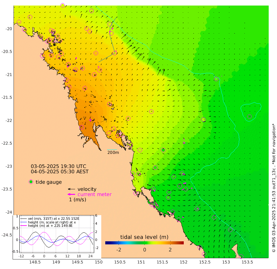 20cm/s -21T +10cm/s rms + 2cm/s 5T. Brampton I 18m 22cm/s -2T +9cm/s rms + 6cm/s 66T. Wigton I 38m 16cm/s 26T +7cm/s rms + 8cm/s 141T. Tern I 47m 31cm/s 34T +7cm/s rms + 12cm/s 54T. N Bugatti Rf 64m 20cm/s 43T +3cm/s rms + 13cm/s 178T. W Bugatti Rf 70m 11cm/s 40T +3cm/s rms + 3cm/s -130T. Creal Rf 69m 44cm/s 114T +7cm/s rms + 4cm/s 2T. North Rf 62m 34cm/s 139T +9cm/s rms + 2cm/s -56T. Cape Capricorn 26m 19cm/s 94T +5cm/s rms + 3cm/s 166T. L Musgrave I 42m 20cm/s 111T +9cm/s rms + 1cm/s -142T. Round Hill Hd 26m 4cm/s 74T +41cm/s rms + 48cm/s 116T. GBRELR 305m 12cm/s 126T +7cm/s rms + 6cm/s 123T. GBRCCH 92m 43cm/s 77T +8cm/s rms + 3cm/s -33T. GBRHIN 45m 26cm/s 90T +4cm/s rms + 2cm/s 41T. GBRHIS 46m 18cm/s 77T +16cm/s rms + 4cm/s -22T. GBROTE 59m 79cm Bell Cay 95cm Holbourne I 137cm Tern I 87cm Bugatti Rf 104cm Creal Rf 74cm White Tip I 20cm North Rf 23cm Rundle I 3cm L Musgrave I 17cm Saumarez Reef 72cm Kennedy Reef 69cm Unnamed Reef No. 2 101cm Abbot Point 107cm Bowen 117cm Tideway Reef 109cm Hayman Island 136cm Square Reef 119cm Double Bay 139cm Molle Island 121cm Cid Harbour 113cm Hook Island 119cm Border Island 124cm Haslewood Island 125cm Shute Harbour 135cm Thomas Island 142cm Credlin Reef 160cm East Repulse Island 138cm Blacksmith Island 157cm Laguna Quays 158cm Carlisle Island (Off) 158cm St. Bees Island 139cm Scawfell Island 149cm Penrith Island 162cm Mackay Outer Harbour 166cm Hay Point 160cm Prudhoe Island 121cm Middle Island (Percy Isles) 64cm Gannet Cay 31cm Elusive Reef 201cm Mcewin Islet 121cm Mumford Island 140cm Osborn Island 145cm Marquis Island 131cm Reef Point 98cm High Peak Island 70cm Port Clinton 60cm Peaked Island 18cm Karamea Bank 27cm Johnson Patch - NW 45cm Rosslyn Bay 47cm Middle Island (Keppel Isles) 53cm Port Alma 13cm Heron Island 7cm One Tree Islet 8cm Polmaise Reef 20cm Tryon Island 21cm Rock Cod Shoal 22cm Gatcombe Head 30cm Gladstone 22cm South Trees (Storm Surge) -2cm Clews Point 0cm Round Hill Head 0cm Lady Elliot Island -5cm Breaksea Spit 2cm Bundaberg (Burnett Heads) -1cm Elliot Heads -3cm Waddy Point (Fraser Island)