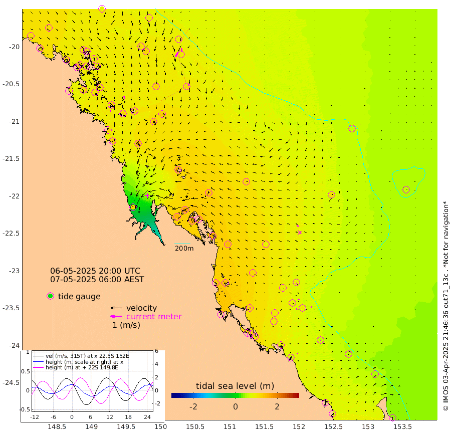 16cm/s -179T +10cm/s rms + 2cm/s 5T. Brampton I 18m 22cm/s 165T +9cm/s rms + 6cm/s 66T. Wigton I 38m 2cm/s -169T +7cm/s rms + 8cm/s 141T. Tern I 47m 28cm/s -174T +7cm/s rms + 12cm/s 54T. N Bugatti Rf 64m 44cm/s -153T +3cm/s rms + 13cm/s 178T. W Bugatti Rf 70m 14cm/s 168T +3cm/s rms + 3cm/s -130T. Creal Rf 69m 9cm/s -175T +7cm/s rms + 4cm/s 2T. North Rf 62m 9cm/s 18T +9cm/s rms + 2cm/s -56T. Cape Capricorn 26m 5cm/s 122T +5cm/s rms + 3cm/s 166T. L Musgrave I 42m 10cm/s 113T +9cm/s rms + 1cm/s -142T. Round Hill Hd 26m 1cm/s -172T +41cm/s rms + 48cm/s 116T. GBRELR 305m 16cm/s -75T +7cm/s rms + 6cm/s 123T. GBRCCH 92m 8cm/s 138T +8cm/s rms + 3cm/s -33T. GBRHIN 45m 7cm/s 103T +4cm/s rms + 2cm/s 41T. GBRHIS 46m 7cm/s 147T +16cm/s rms + 4cm/s -22T. GBROTE 59m 118cm Bell Cay 110cm Holbourne I 133cm Tern I 96cm Bugatti Rf 106cm Creal Rf 90cm White Tip I 90cm North Rf 116cm Rundle I 62cm L Musgrave I 58cm Saumarez Reef 93cm Kennedy Reef 94cm Unnamed Reef No. 2 106cm Abbot Point 107cm Bowen 105cm Tideway Reef 111cm Hayman Island 123cm Square Reef 129cm Double Bay 122cm Molle Island 102cm Cid Harbour 110cm Hook Island 97cm Border Island 100cm Haslewood Island 111cm Shute Harbour 109cm Thomas Island 123cm Credlin Reef 116cm East Repulse Island 104cm Blacksmith Island 115cm Laguna Quays 125cm Carlisle Island (Off) 125cm St. Bees Island 114cm Scawfell Island 137cm Penrith Island 131cm Mackay Outer Harbour 139cm Hay Point 153cm Prudhoe Island 161cm Middle Island (Percy Isles) 108cm Gannet Cay 61cm Elusive Reef 127cm Mcewin Islet 172cm Mumford Island 154cm Osborn Island 158cm Marquis Island 146cm Reef Point 135cm High Peak Island 151cm Port Clinton 148cm Peaked Island 90cm Karamea Bank 119cm Johnson Patch - NW 138cm Rosslyn Bay 142cm Middle Island (Keppel Isles) 151cm Port Alma 86cm Heron Island 96cm One Tree Islet 97cm Polmaise Reef 87cm Tryon Island 98cm Rock Cod Shoal 108cm Gatcombe Head 120cm Gladstone 114cm South Trees (Storm Surge) 85cm Clews Point 74cm Round Hill Head 57cm Lady Elliot Island 52cm Breaksea Spit 80cm Bundaberg (Burnett Heads) 80cm Elliot Heads 41cm Waddy Point (Fraser Island)
