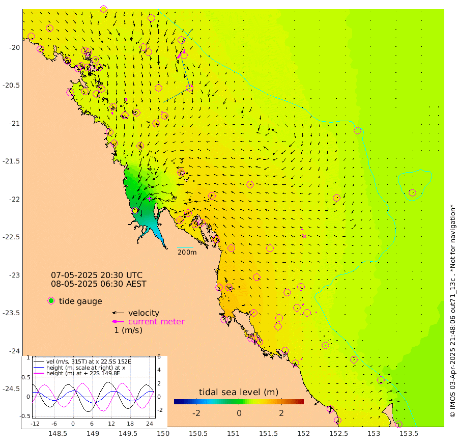 21cm/s 174T +10cm/s rms + 2cm/s 5T. Brampton I 18m 29cm/s 166T +9cm/s rms + 6cm/s 66T. Wigton I 38m 6cm/s -173T +7cm/s rms + 8cm/s 141T. Tern I 47m 36cm/s -170T +7cm/s rms + 12cm/s 54T. N Bugatti Rf 64m 51cm/s -152T +3cm/s rms + 13cm/s 178T. W Bugatti Rf 70m 17cm/s 170T +3cm/s rms + 3cm/s -130T. Creal Rf 69m 9cm/s -133T +7cm/s rms + 4cm/s 2T. North Rf 62m 12cm/s -2T +9cm/s rms + 2cm/s -56T. Cape Capricorn 26m 3cm/s 151T +5cm/s rms + 3cm/s 166T. L Musgrave I 42m 7cm/s 111T +9cm/s rms + 1cm/s -142T. Round Hill Hd 26m 2cm/s -171T +41cm/s rms + 48cm/s 116T. GBRELR 305m 18cm/s -75T +7cm/s rms + 6cm/s 123T. GBRCCH 92m 8cm/s 174T +8cm/s rms + 3cm/s -33T. GBRHIN 45m 4cm/s 111T +4cm/s rms + 2cm/s 41T. GBRHIS 46m 8cm/s 161T +16cm/s rms + 4cm/s -22T. GBROTE 59m 113cm Bell Cay 100cm Holbourne I 121cm Tern I 87cm Bugatti Rf 96cm Creal Rf 83cm White Tip I 91cm North Rf 119cm Rundle I 63cm L Musgrave I 59cm Saumarez Reef 87cm Kennedy Reef 86cm Unnamed Reef No. 2 96cm Abbot Point 96cm Bowen 92cm Tideway Reef 100cm Hayman Island 111cm Square Reef 113cm Double Bay 105cm Molle Island 91cm Cid Harbour 96cm Hook Island 85cm Border Island 87cm Haslewood Island 97cm Shute Harbour 95cm Thomas Island 108cm Credlin Reef 97cm East Repulse Island 91cm Blacksmith Island 97cm Laguna Quays 107cm Carlisle Island (Off) 107cm St. Bees Island 100cm Scawfell Island 124cm Penrith Island 114cm Mackay Outer Harbour 122cm Hay Point 138cm Prudhoe Island 152cm Middle Island (Percy Isles) 104cm Gannet Cay 56cm Elusive Reef 101cm Mcewin Islet 168cm Mumford Island 146cm Osborn Island 148cm Marquis Island 138cm Reef Point 129cm High Peak Island 148cm Port Clinton 149cm Peaked Island 91cm Karamea Bank 121cm Johnson Patch - NW 140cm Rosslyn Bay 143cm Middle Island (Keppel Isles) 153cm Port Alma 87cm Heron Island 99cm One Tree Islet 101cm Polmaise Reef 88cm Tryon Island 98cm Rock Cod Shoal 111cm Gatcombe Head 122cm Gladstone 117cm South Trees (Storm Surge) 90cm Clews Point 77cm Round Hill Head 58cm Lady Elliot Island 52cm Breaksea Spit 83cm Bundaberg (Burnett Heads) 85cm Elliot Heads 40cm Waddy Point (Fraser Island)