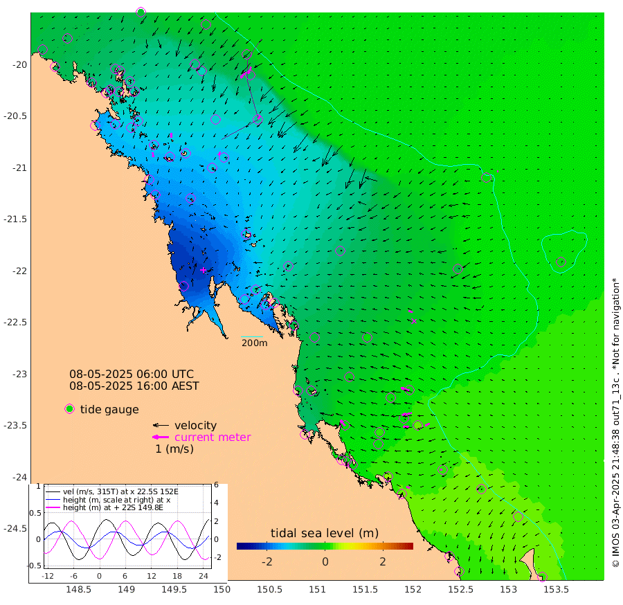 30cm/s 171T +10cm/s rms + 2cm/s 5T. Brampton I 18m 31cm/s 178T +9cm/s rms + 6cm/s 66T. Wigton I 38m 24cm/s -147T +7cm/s rms + 8cm/s 141T. Tern I 47m 47cm/s -158T +7cm/s rms + 12cm/s 54T. N Bugatti Rf 64m 51cm/s -140T +3cm/s rms + 13cm/s 178T. W Bugatti Rf 70m 25cm/s -147T +3cm/s rms + 3cm/s -130T. Creal Rf 69m 52cm/s -75T +7cm/s rms + 4cm/s 2T. North Rf 62m 46cm/s -38T +9cm/s rms + 2cm/s -56T. Cape Capricorn 26m 13cm/s -92T +5cm/s rms + 3cm/s 166T. L Musgrave I 42m 20cm/s -70T +9cm/s rms + 1cm/s -142T. Round Hill Hd 26m 6cm/s -110T +41cm/s rms + 48cm/s 116T. GBRELR 305m 26cm/s -67T +7cm/s rms + 6cm/s 123T. GBRCCH 92m 59cm/s -101T +8cm/s rms + 3cm/s -33T. GBRHIN 45m 36cm/s -92T +4cm/s rms + 2cm/s 41T. GBRHIS 46m 32cm/s -113T +16cm/s rms + 4cm/s -22T. GBROTE 59m -61cm Bell Cay -51cm Holbourne I -129cm Tern I -58cm Bugatti Rf -90cm Creal Rf -35cm White Tip I 13cm North Rf 16cm Rundle I 26cm L Musgrave I 7cm Saumarez Reef -22cm Kennedy Reef -20cm Unnamed Reef No. 2 -50cm Abbot Point -60cm Bowen -84cm Tideway Reef -62cm Hayman Island -108cm Square Reef -82cm Double Bay -97cm Molle Island -93cm Cid Harbour -75cm Hook Island -86cm Border Island -102cm Haslewood Island -96cm Shute Harbour -125cm Thomas Island -118cm Credlin Reef -139cm East Repulse Island -129cm Blacksmith Island -151cm Laguna Quays -137cm Carlisle Island (Off) -150cm St. Bees Island -131cm Scawfell Island -130cm Penrith Island -162cm Mackay Outer Harbour -168cm Hay Point -168cm Prudhoe Island -125cm Middle Island (Percy Isles) -47cm Gannet Cay 10cm Elusive Reef -232cm Mcewin Islet -102cm Mumford Island -126cm Osborn Island -137cm Marquis Island -120cm Reef Point -86cm High Peak Island -46cm Port Clinton -33cm Peaked Island 17cm Karamea Bank -2cm Johnson Patch - NW -11cm Rosslyn Bay -10cm Middle Island (Keppel Isles) -23cm Port Alma 18cm Heron Island 32cm One Tree Islet 24cm Polmaise Reef 11cm Tryon Island 18cm Rock Cod Shoal 8cm Gatcombe Head -1cm Gladstone 9cm South Trees (Storm Surge) 38cm Clews Point 29cm Round Hill Head 27cm Lady Elliot Island 34cm Breaksea Spit 30cm Bundaberg (Burnett Heads) 31cm Elliot Heads 24cm Waddy Point (Fraser Island)