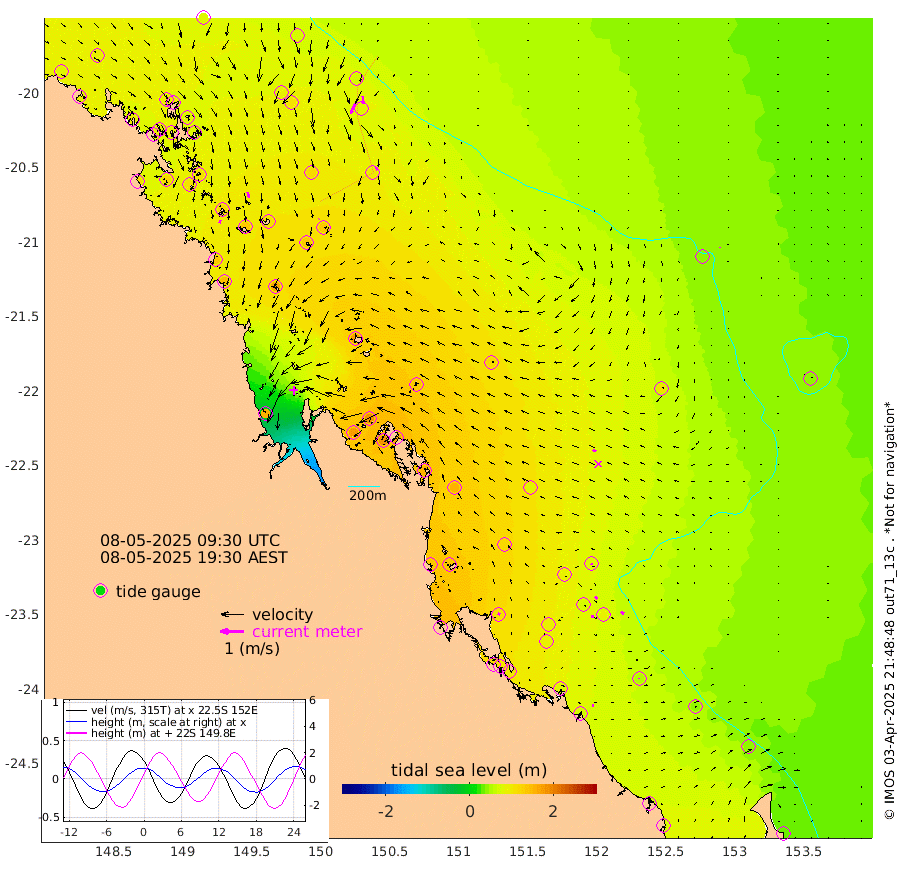 15cm/s -167T +10cm/s rms + 2cm/s 5T. Brampton I 18m 24cm/s 162T +9cm/s rms + 6cm/s 66T. Wigton I 38m 2cm/s 46T +7cm/s rms + 8cm/s 141T. Tern I 47m 31cm/s 177T +7cm/s rms + 12cm/s 54T. N Bugatti Rf 64m 45cm/s -156T +3cm/s rms + 13cm/s 178T. W Bugatti Rf 70m 13cm/s 160T +3cm/s rms + 3cm/s -130T. Creal Rf 69m 6cm/s 146T +7cm/s rms + 4cm/s 2T. North Rf 62m 10cm/s 18T +9cm/s rms + 2cm/s -56T. Cape Capricorn 26m 3cm/s 167T +5cm/s rms + 3cm/s 166T. L Musgrave I 42m 7cm/s 109T +9cm/s rms + 1cm/s -142T. Round Hill Hd 26m 1cm/s 177T +41cm/s rms + 48cm/s 116T. GBRELR 305m 15cm/s -68T +7cm/s rms + 6cm/s 123T. GBRCCH 92m 13cm/s 136T +8cm/s rms + 3cm/s -33T. GBRHIN 45m 11cm/s 96T +4cm/s rms + 2cm/s 41T. GBRHIS 46m 14cm/s 120T +16cm/s rms + 4cm/s -22T. GBROTE 59m 119cm Bell Cay 87cm Holbourne I 140cm Tern I 83cm Bugatti Rf 103cm Creal Rf 72cm White Tip I 81cm North Rf 108cm Rundle I 52cm L Musgrave I 42cm Saumarez Reef 83cm Kennedy Reef 72cm Unnamed Reef No. 2 83cm Abbot Point 86cm Bowen 91cm Tideway Reef 96cm Hayman Island 111cm Square Reef 101cm Double Bay 89cm Molle Island 93cm Cid Harbour 95cm Hook Island 84cm Border Island 84cm Haslewood Island 99cm Shute Harbour 111cm Thomas Island 121cm Credlin Reef 116cm East Repulse Island 106cm Blacksmith Island 113cm Laguna Quays 119cm Carlisle Island (Off) 135cm St. Bees Island 111cm Scawfell Island 133cm Penrith Island 139cm Mackay Outer Harbour 150cm Hay Point 164cm Prudhoe Island 171cm Middle Island (Percy Isles) 106cm Gannet Cay 43cm Elusive Reef 155cm Mcewin Islet 184cm Mumford Island 176cm Osborn Island 179cm Marquis Island 164cm Reef Point 139cm High Peak Island 153cm Port Clinton 154cm Peaked Island 83cm Karamea Bank 115cm Johnson Patch - NW 137cm Rosslyn Bay 140cm Middle Island (Keppel Isles) 153cm Port Alma 74cm Heron Island 84cm One Tree Islet 91cm Polmaise Reef 87cm Tryon Island 87cm Rock Cod Shoal 100cm Gatcombe Head 117cm Gladstone 110cm South Trees (Storm Surge) 80cm Clews Point 67cm Round Hill Head 47cm Lady Elliot Island 44cm Breaksea Spit 70cm Bundaberg (Burnett Heads) 67cm Elliot Heads 33cm Waddy Point (Fraser Island)